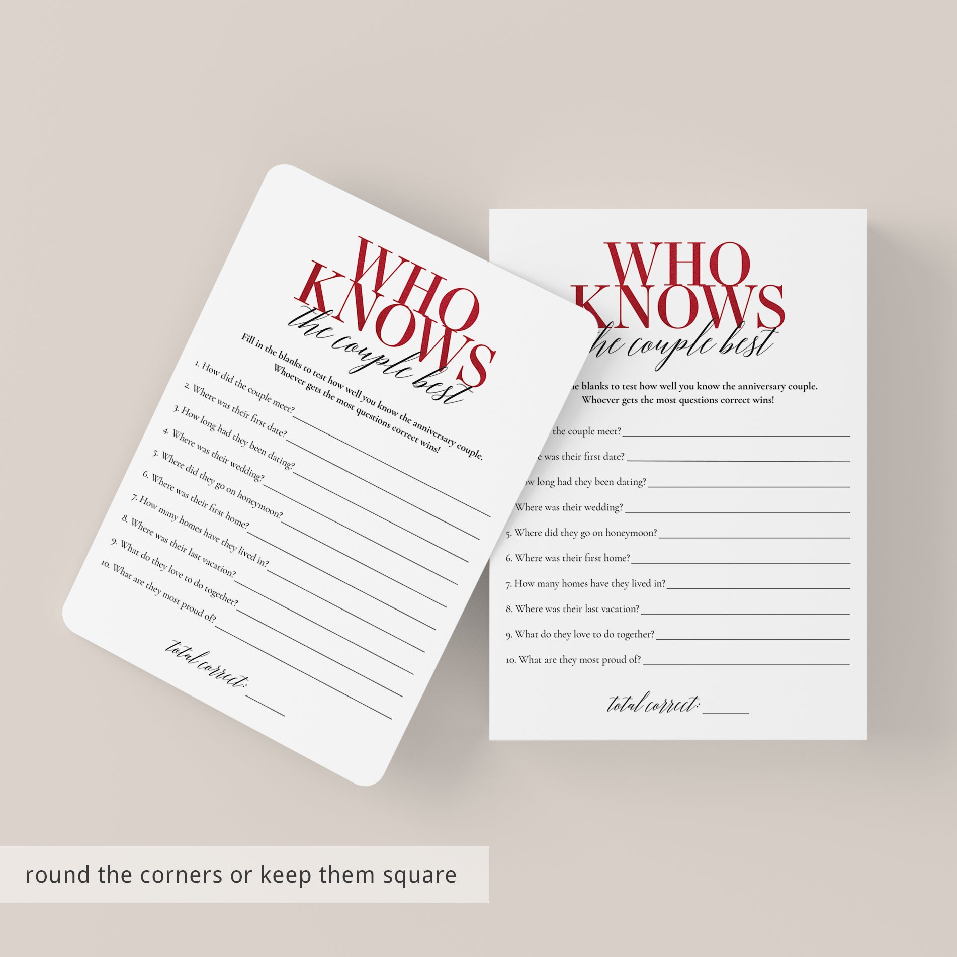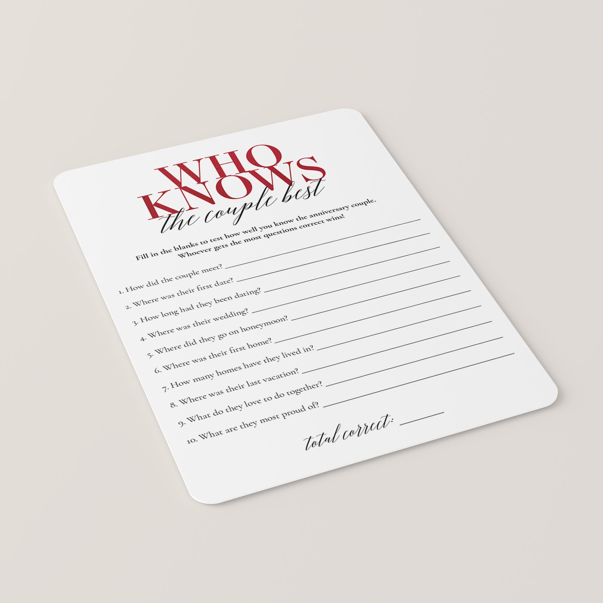 40th Anniversary Party Game Who Knows The Couple Best Printable