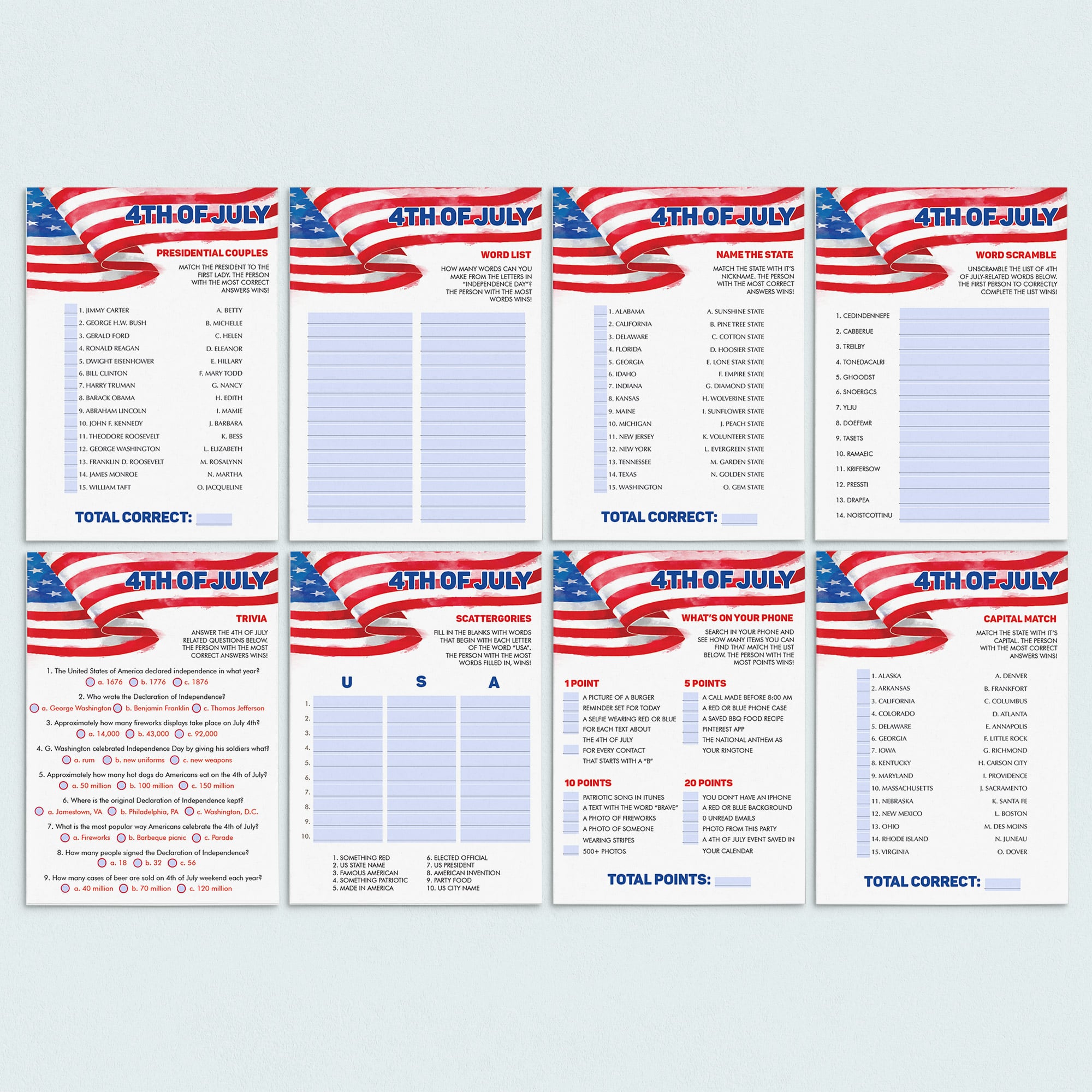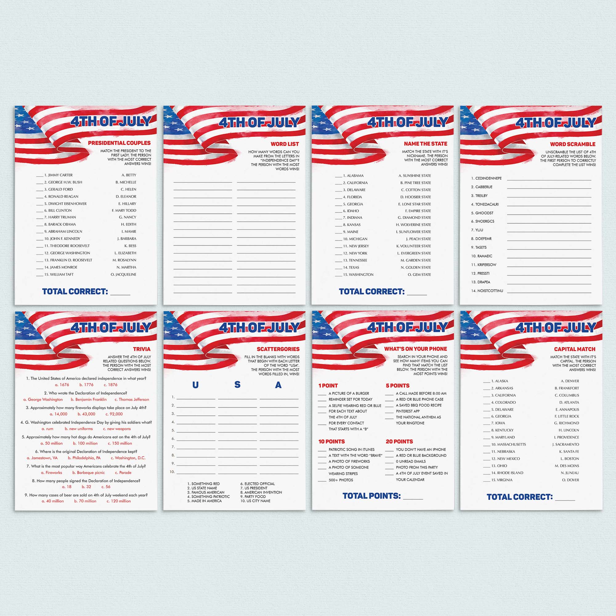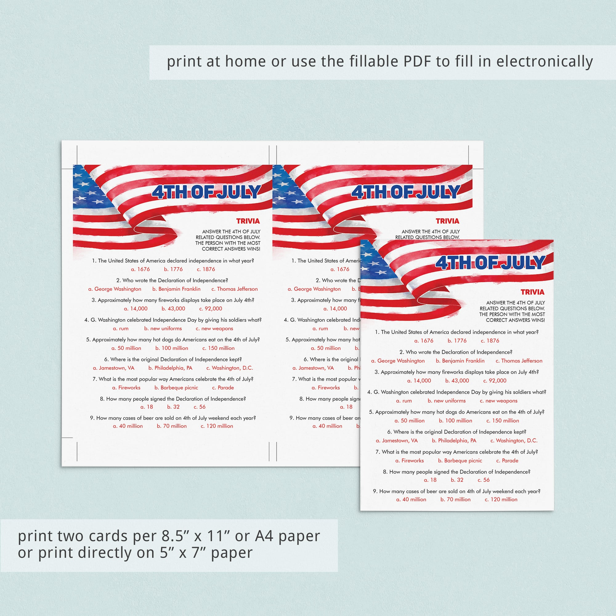 For an in-person 4th of July party, simply download and print the games as many times as you need. We recommend printing on a nice heavy card stock for highest quality feel. Print right from your computer in a matter of minutes or have the games printed at your favorite print shop.