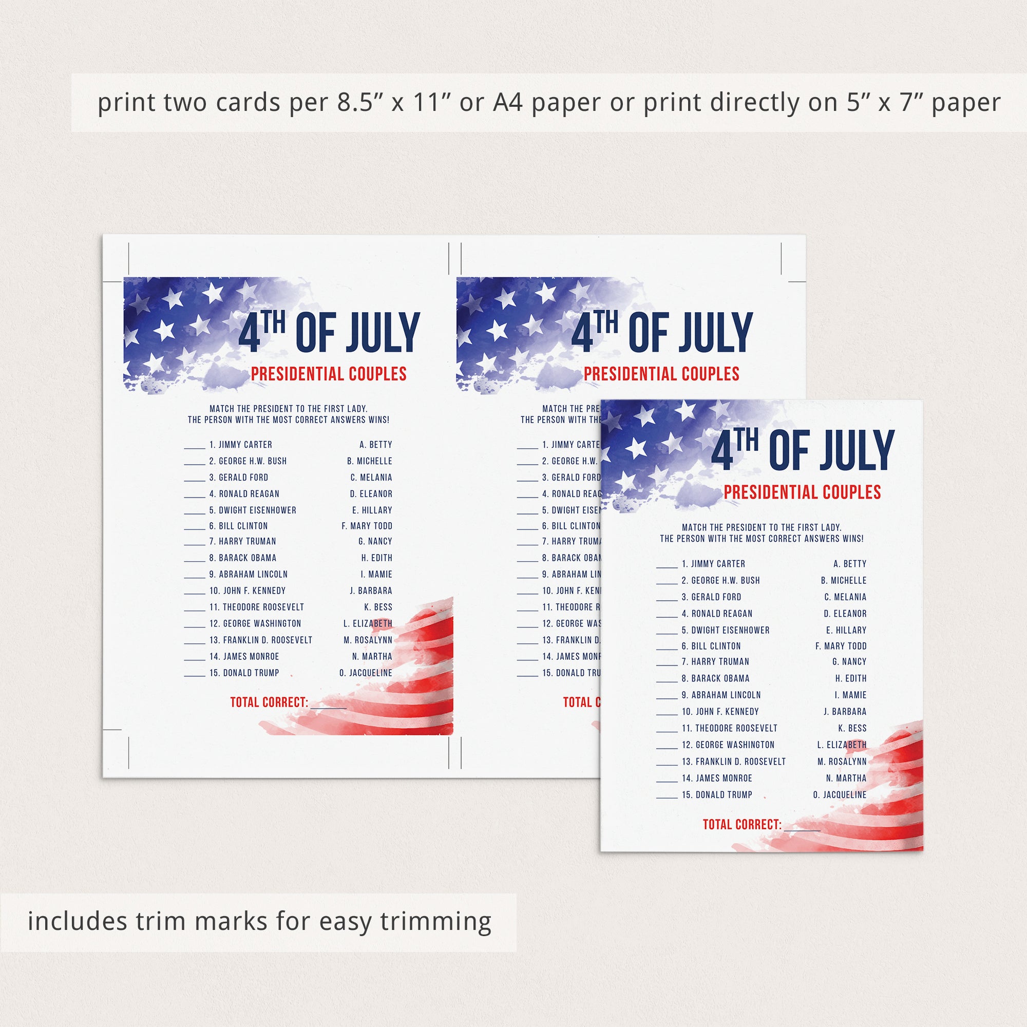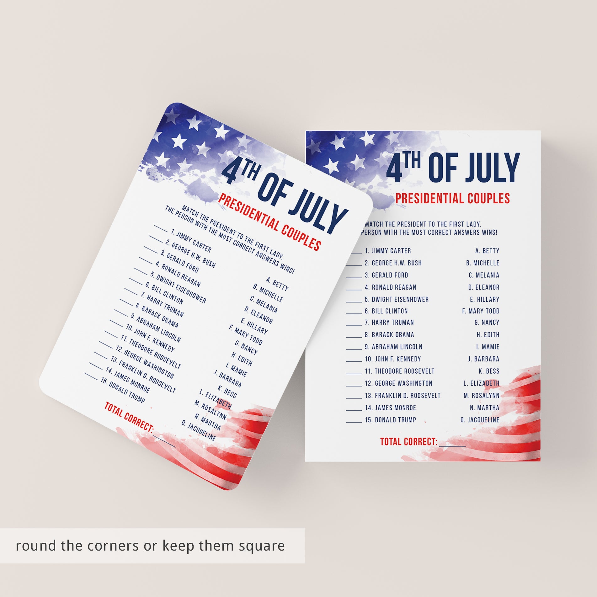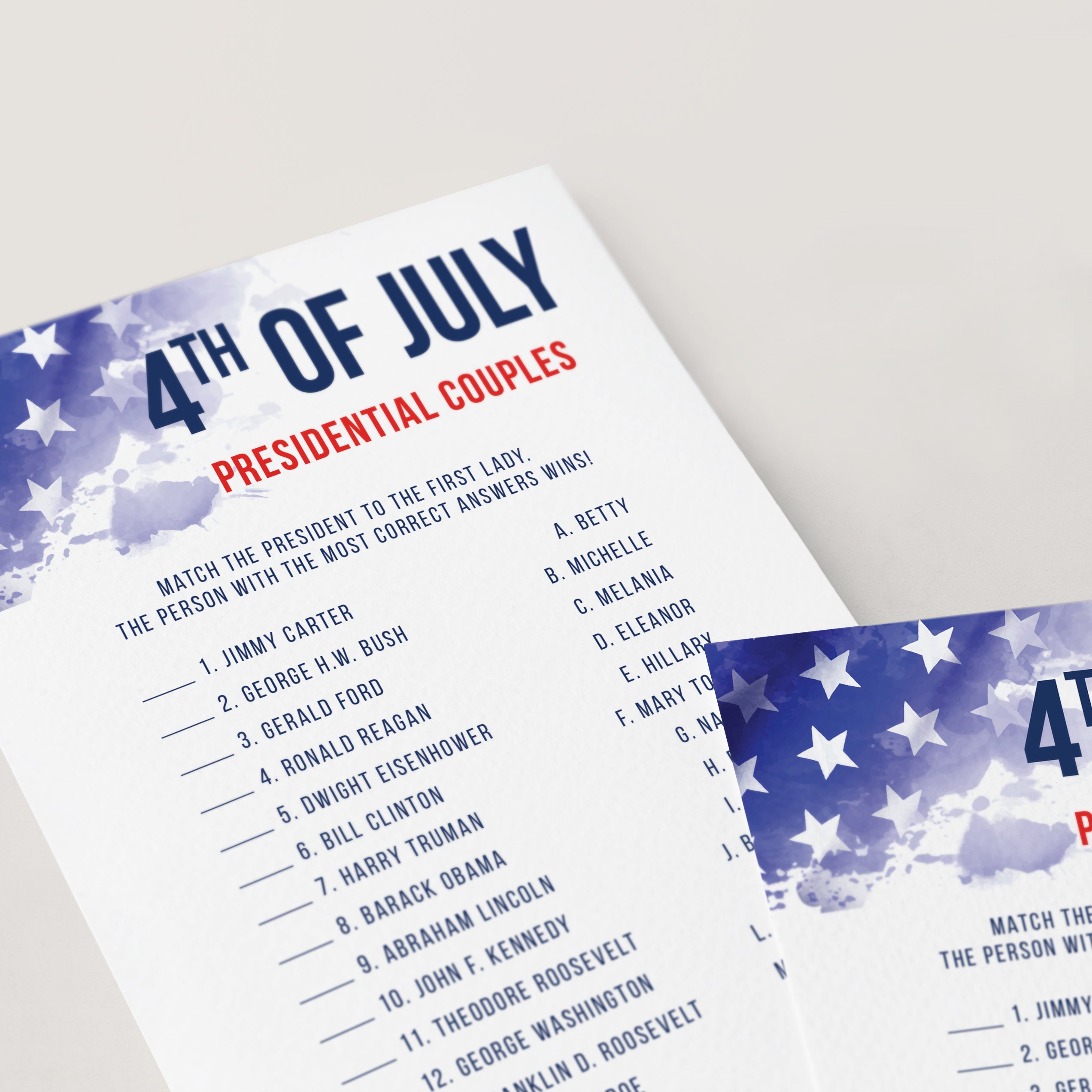 Are you hosting a 4th of July party for family and friends? Test your guests knowledge the presidential couples with this fun patriotic party quiz.
