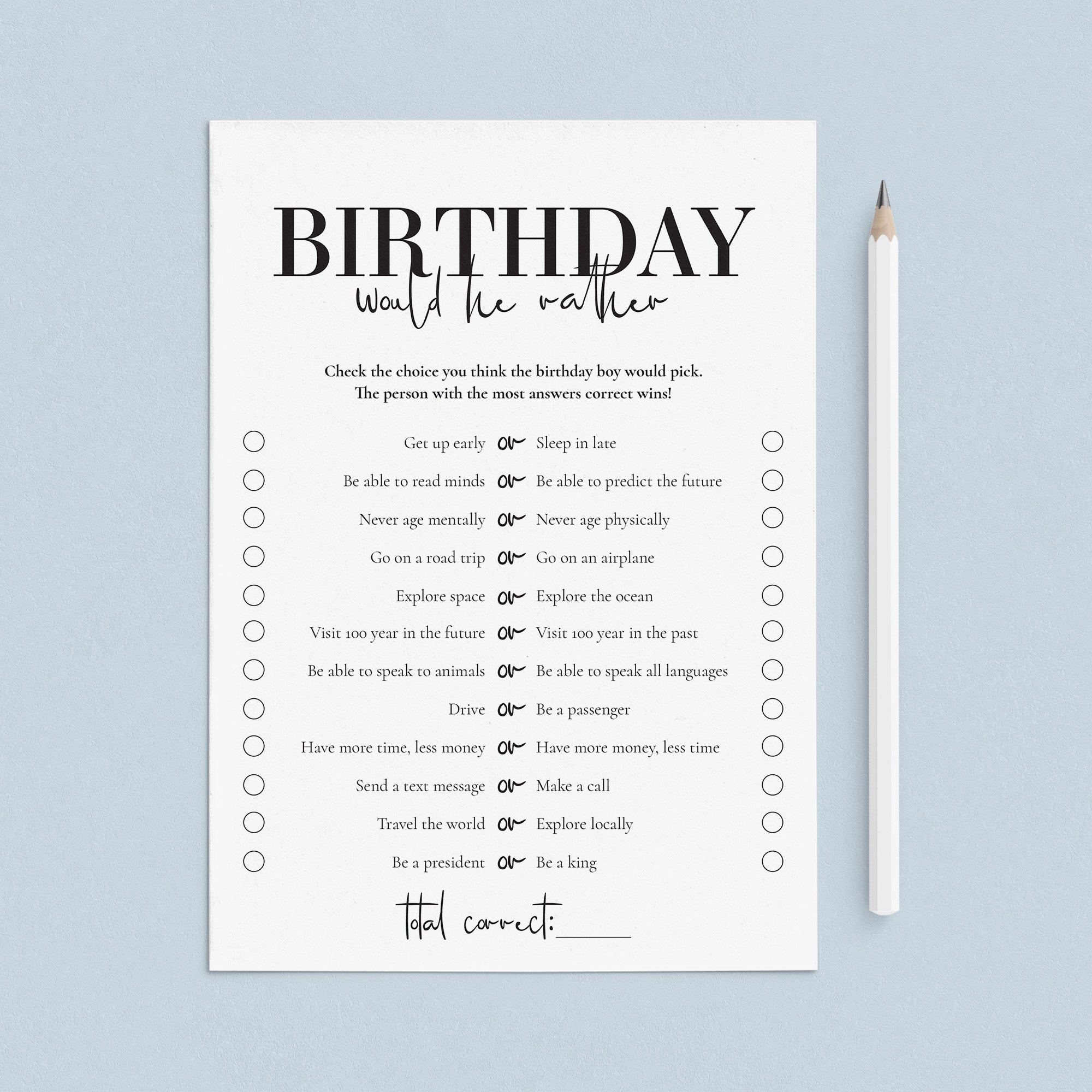 This men's 52nd Birthday Party Games Bundle includes the following games and activities: