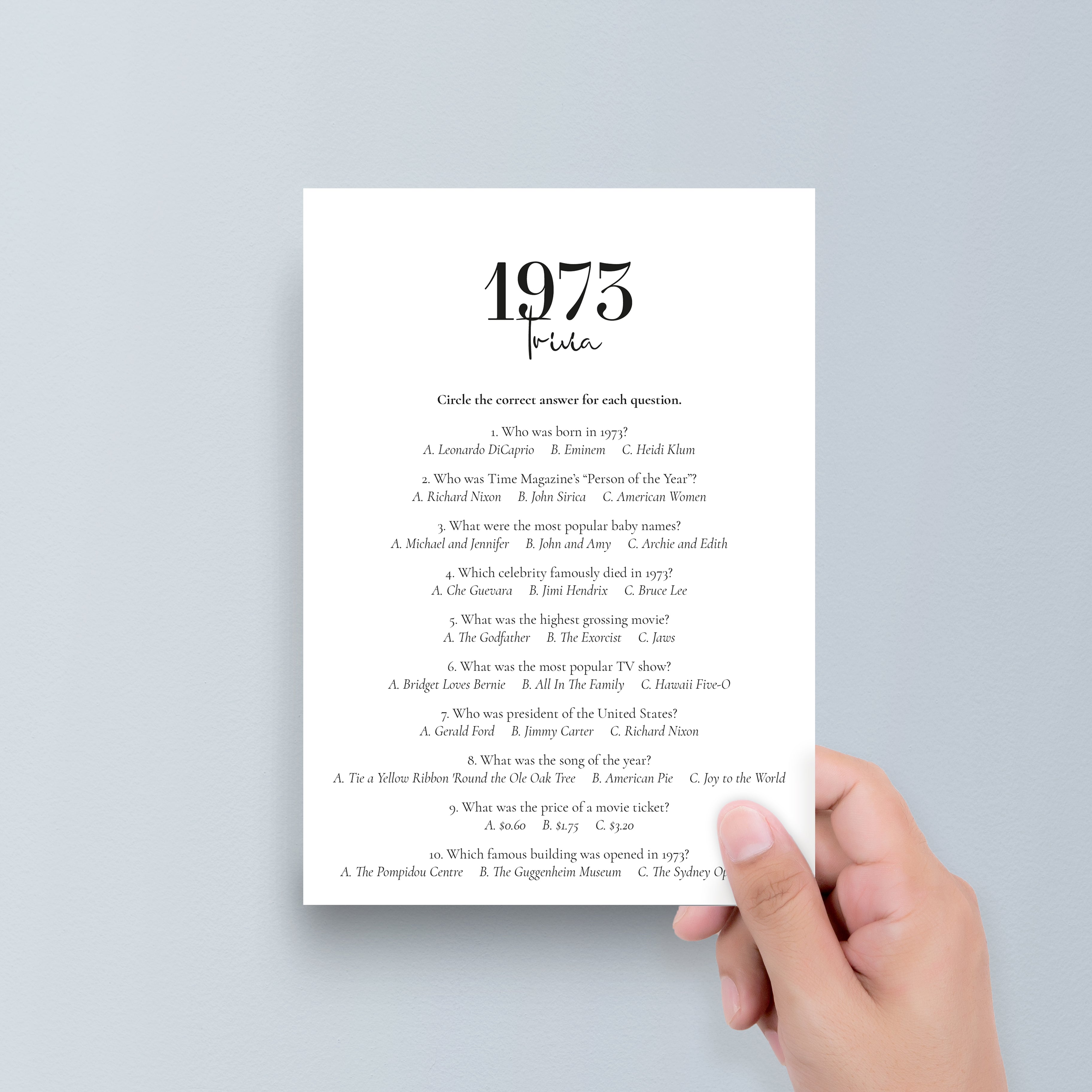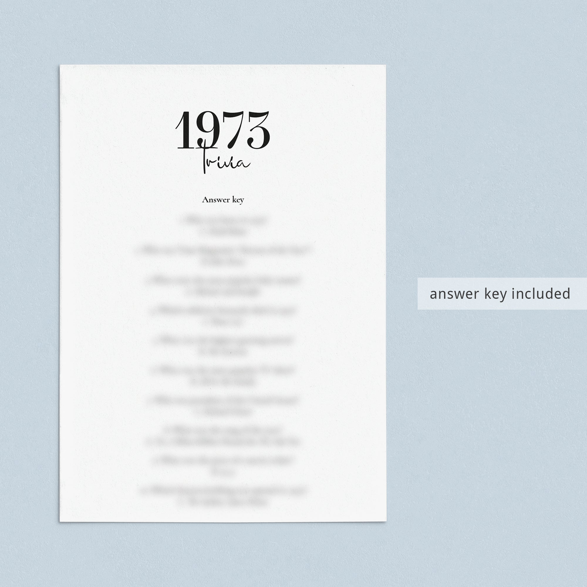 • 1973 Trivia (answer key included)