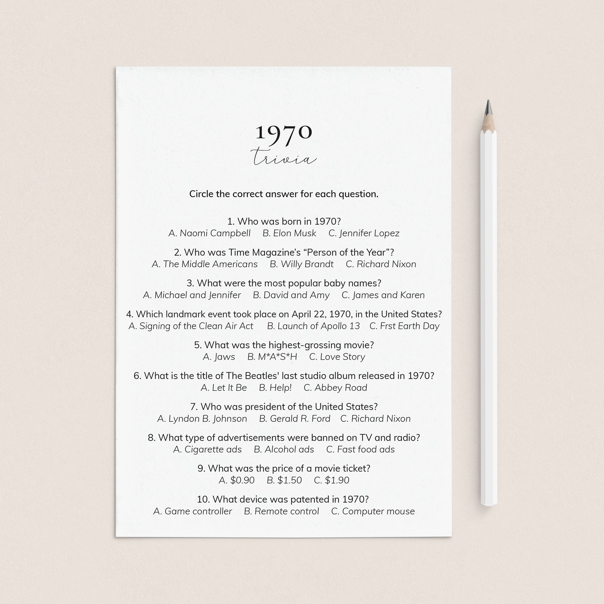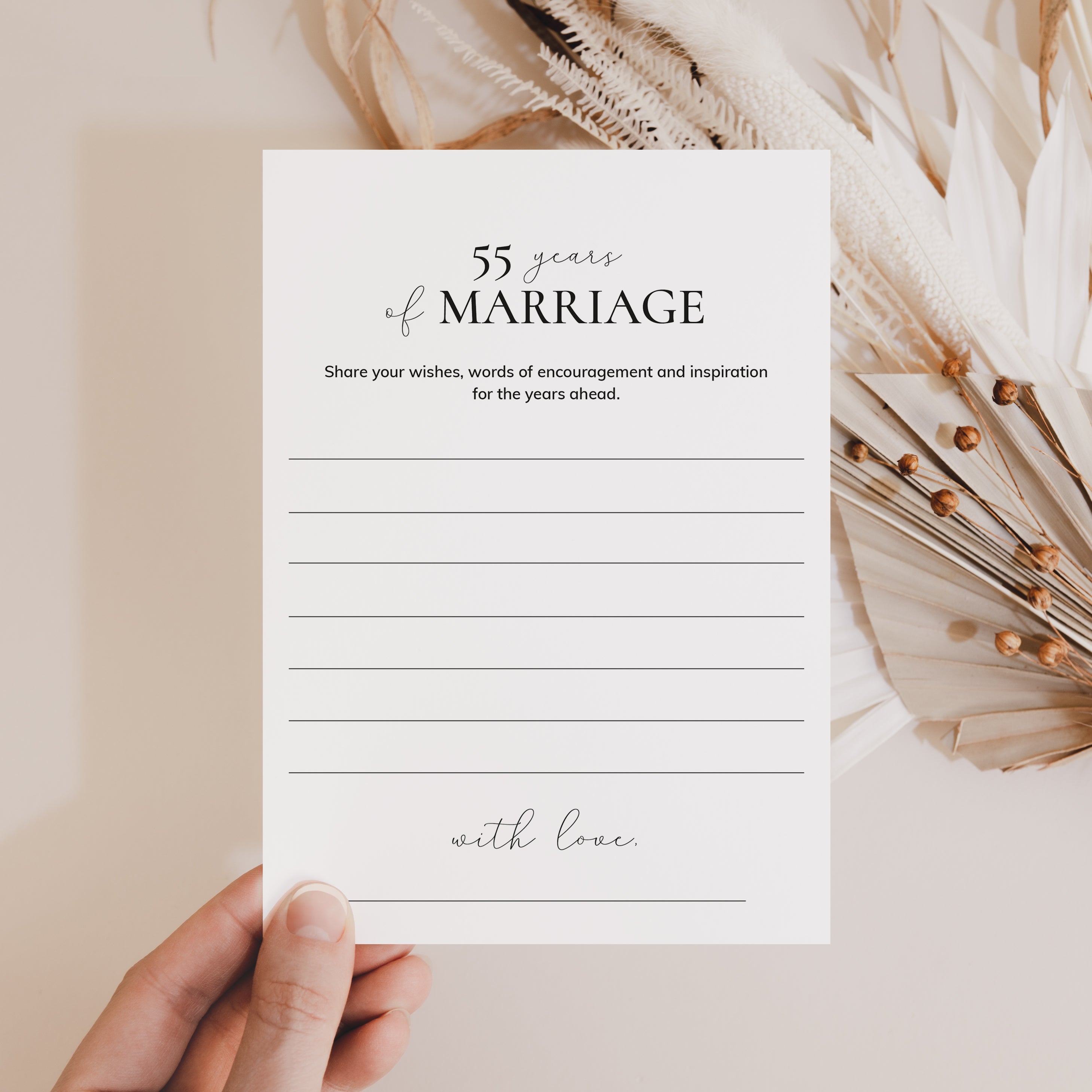Celebrate a couple married in 1970 with this 55th Wedding Anniversary Games Bundle. Designed with an elegant and minimalist style, this printable bundle includes 12 fun and meaningful games and activities, from nostalgic 1970s trivia quizzes to heartfelt wishes cards and keepsakes. Perfect for adding a special touch to this incredible milestone anniversary.