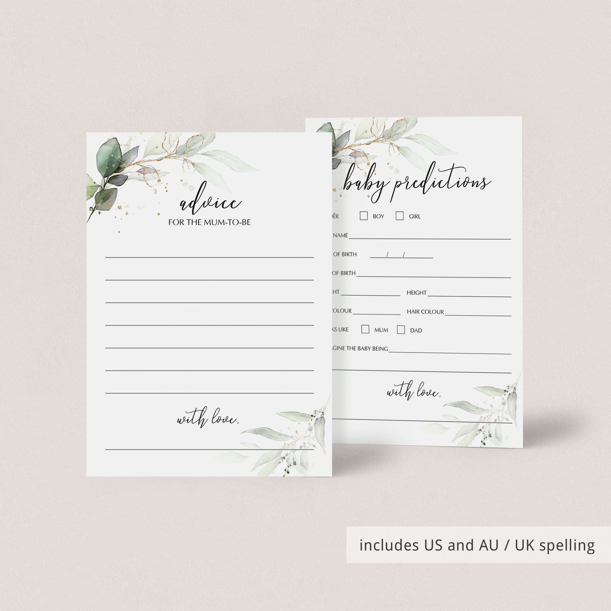 • Advice card (two versions included, advice for the mom-to-be and advice for the parents-to-be)