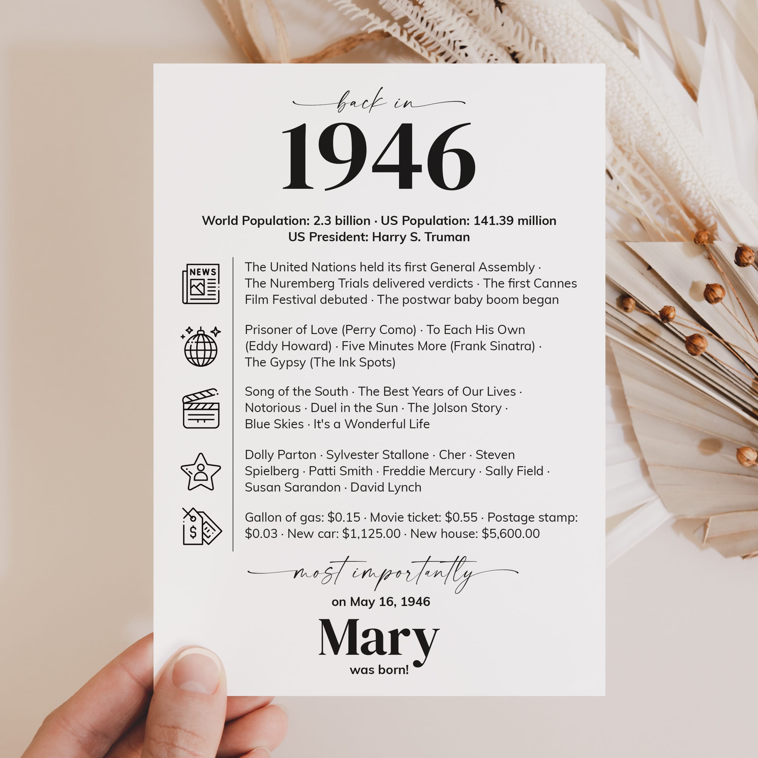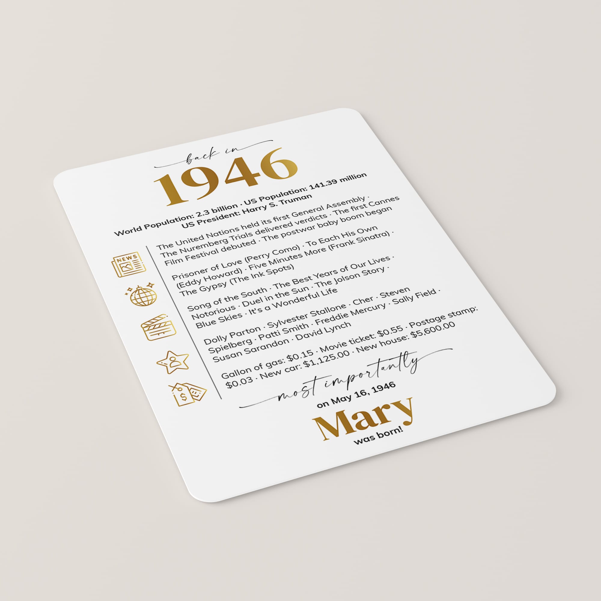 • A fun conversation starter, featuring key highlights and trivia from 1946.