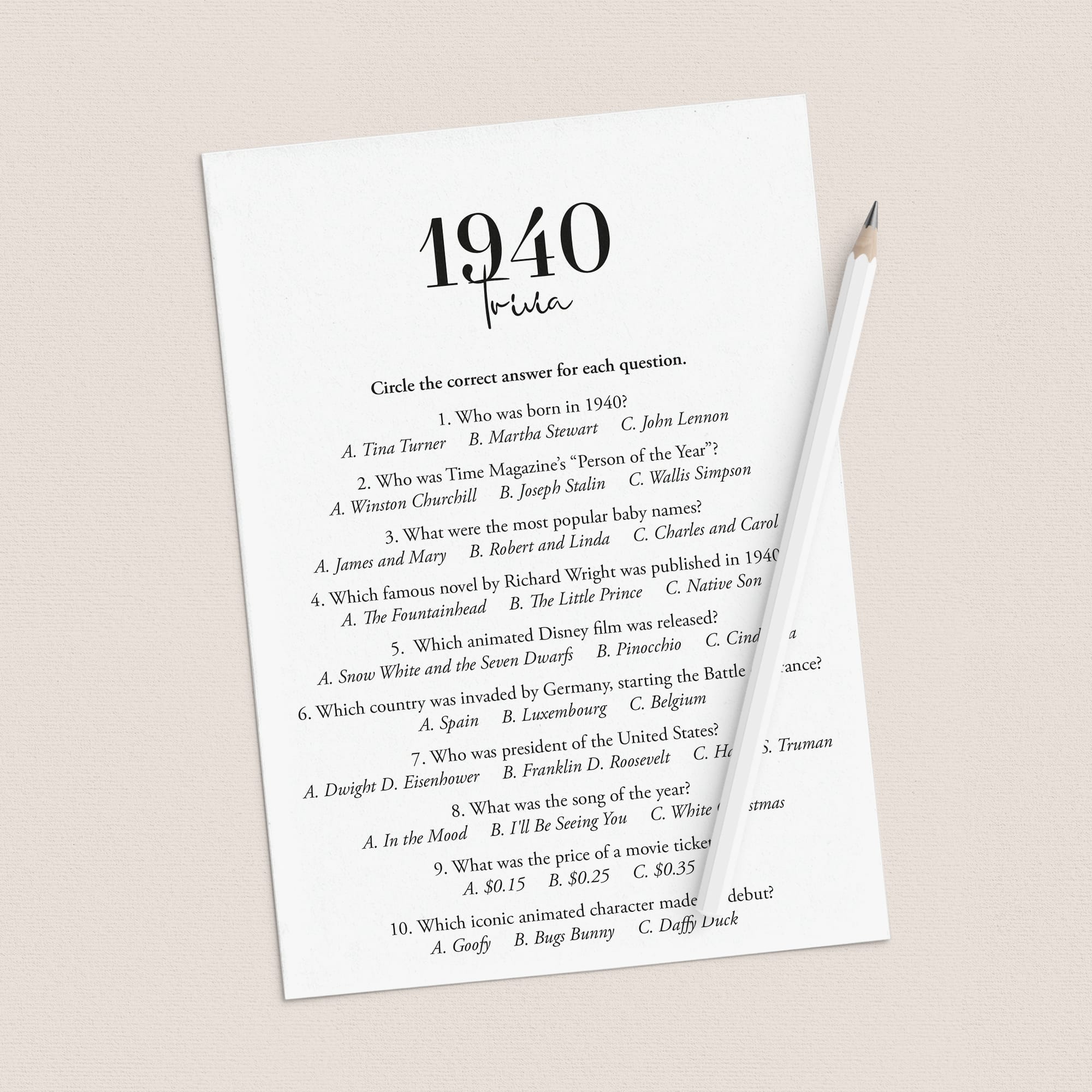 Celebrate a man’s 85th birthday in style with this 85th Birthday Games Bundle! This printable set, designed with a modern and minimalist aesthetic, includes 3 engaging and meaningful games and activities. From a nostalgic 1940s trivia game to heartfelt favorite memory cards, this bundle adds the perfect touch to his milestone celebration.