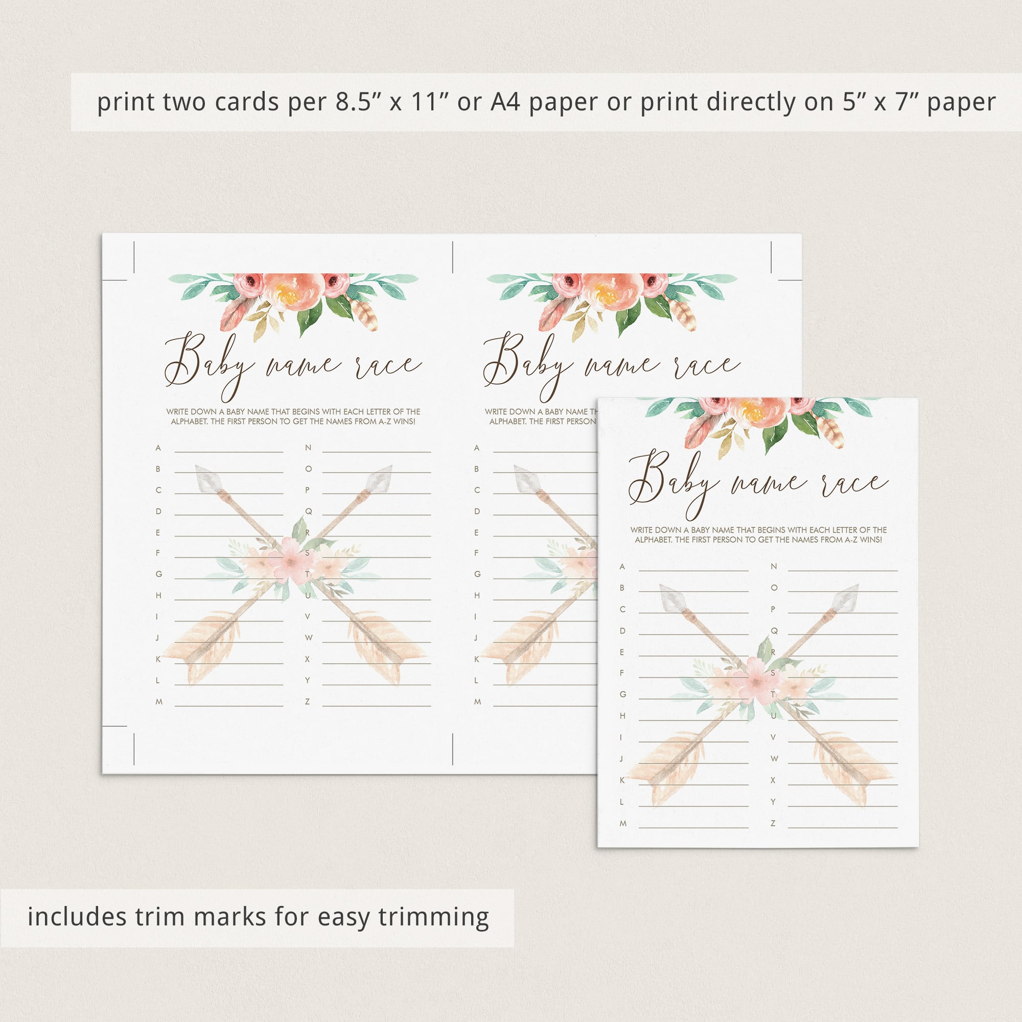 This floral baby shower game is an instant download, so simply download and print the cards as many times as you need. Print right from your computer in a matter of minutes or have the cards printed at your favorite print shop.