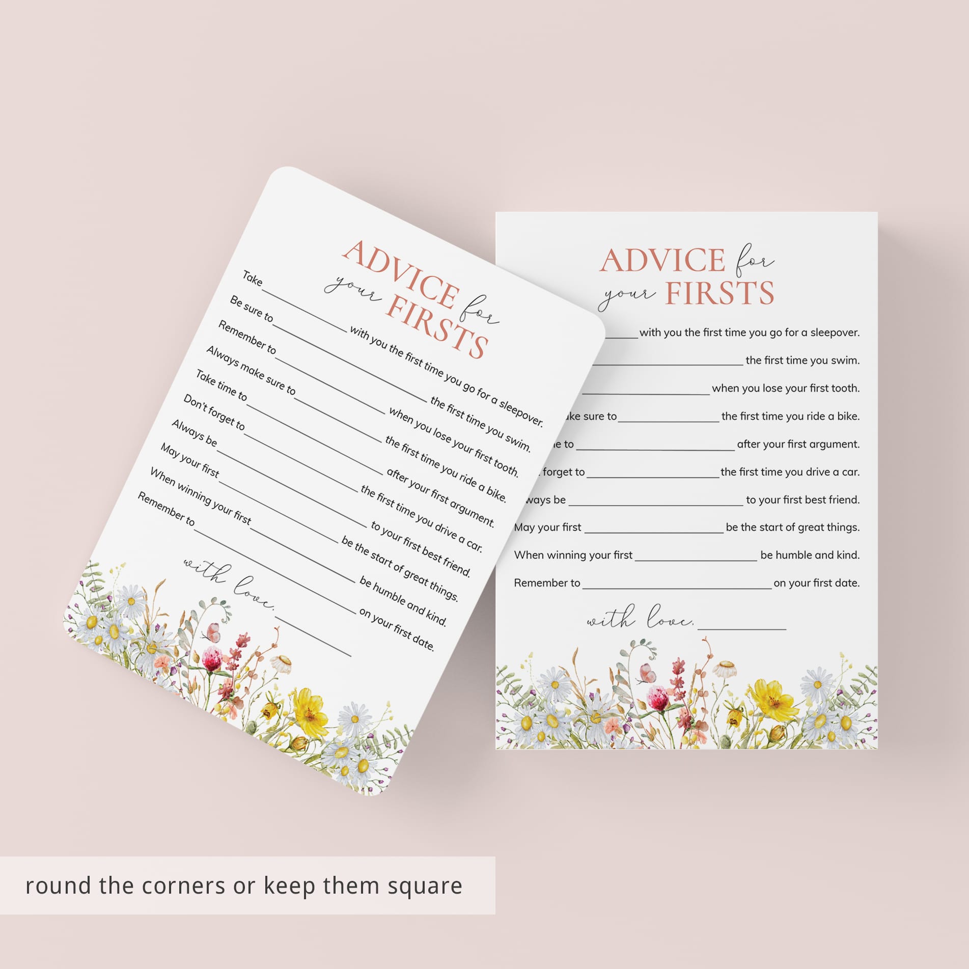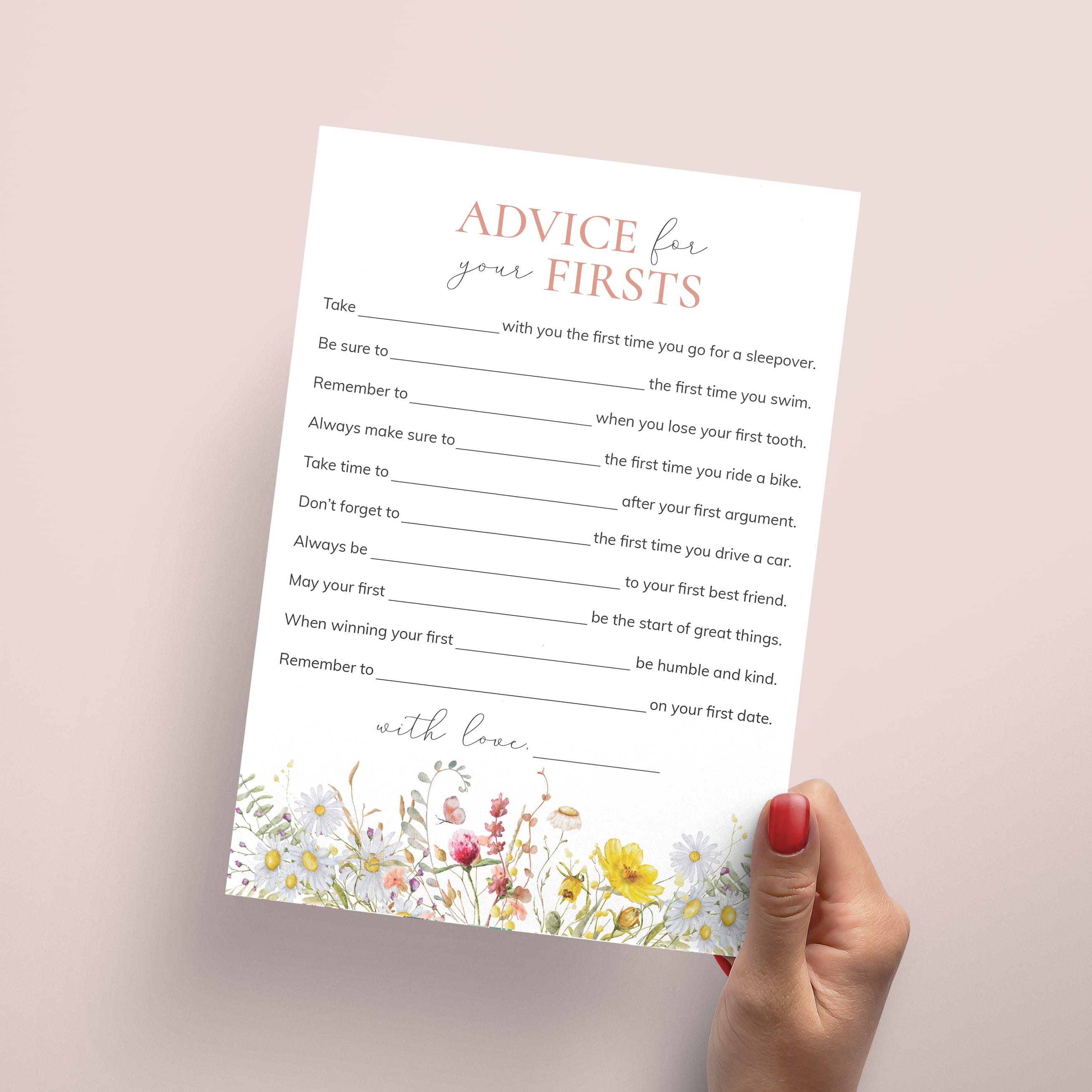 Are you looking for a meaningful keepsake for your baby girls' first birthday party? Let every guest write down their advice for your baby's firsts. This first birthday advice card with watercolor wildflowers is the perfect addition to your girl's first birthday party.