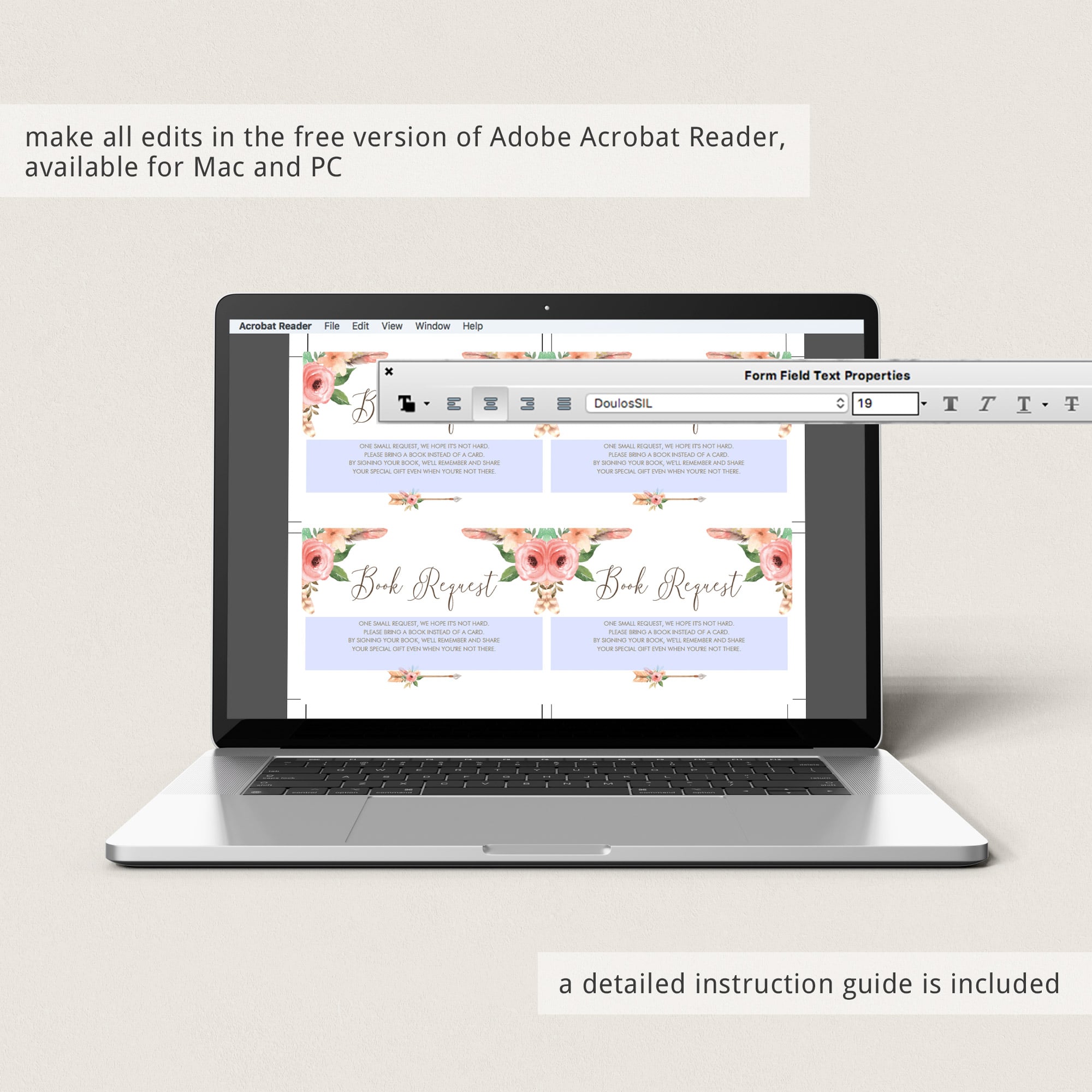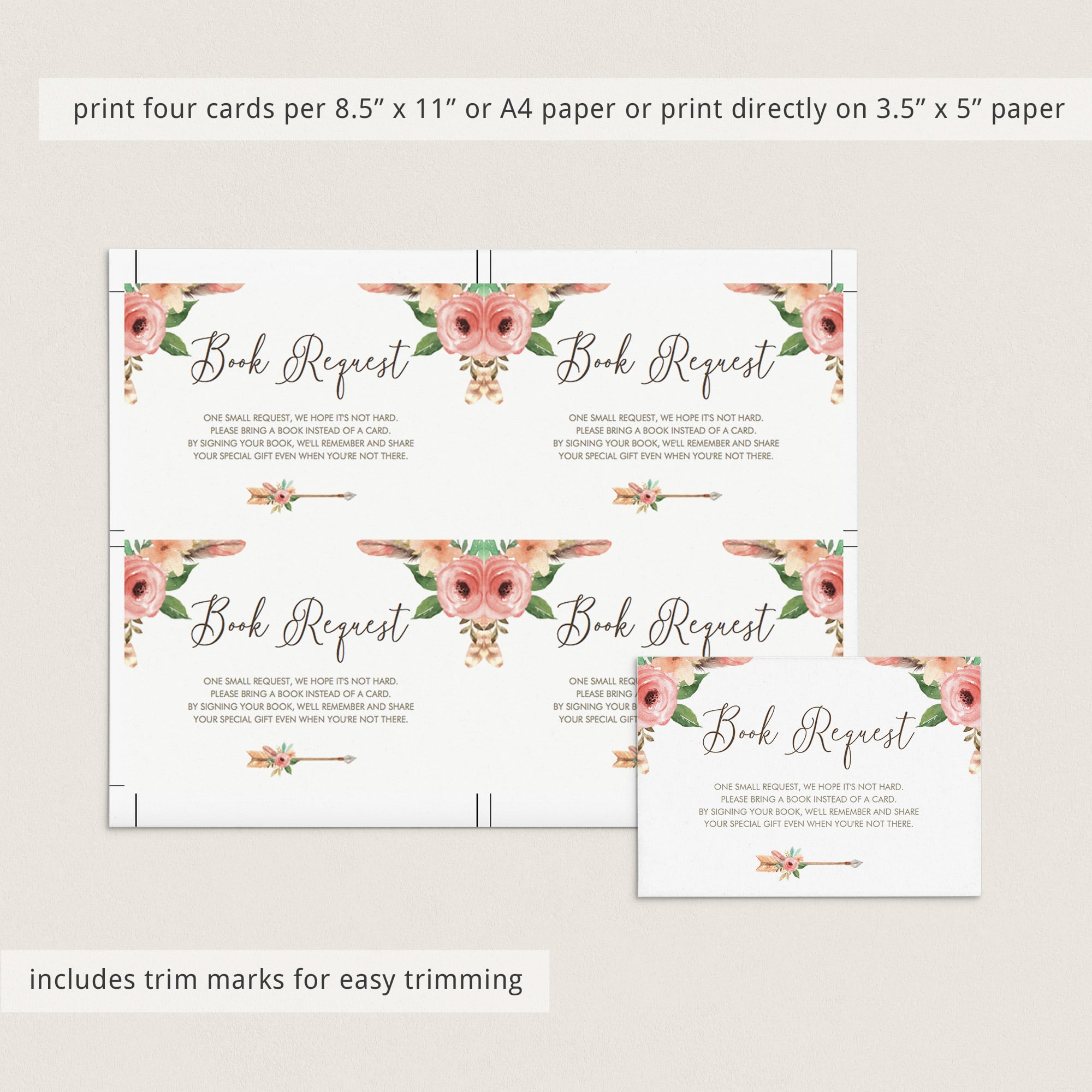 Easily personalize the book request card template with your own words and print the cards on plain white paper. We recommend a nice heavy card stock for highest quality feel. A detailed instruction guide with tips & tricks on editing, trimming, paper choices and more is included.