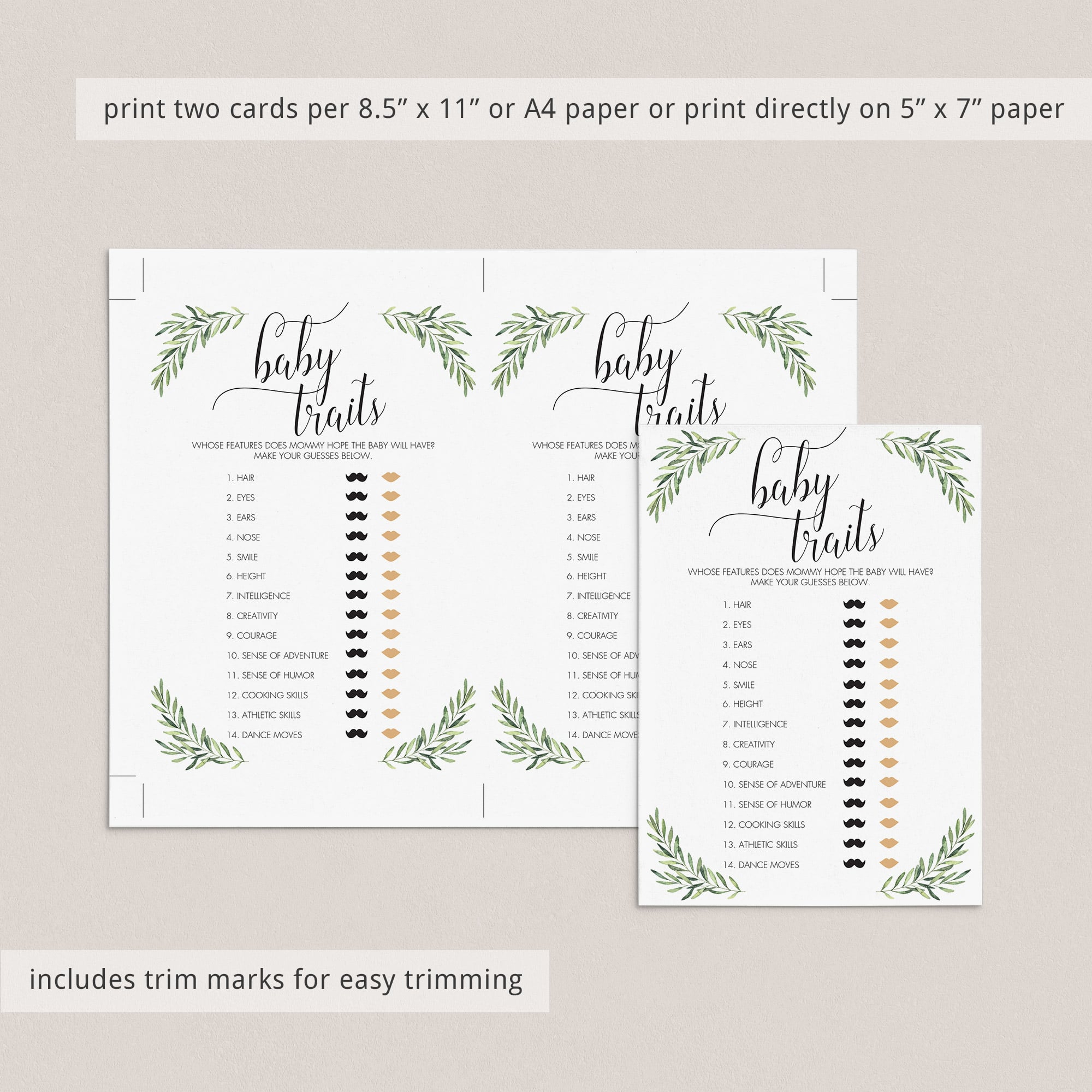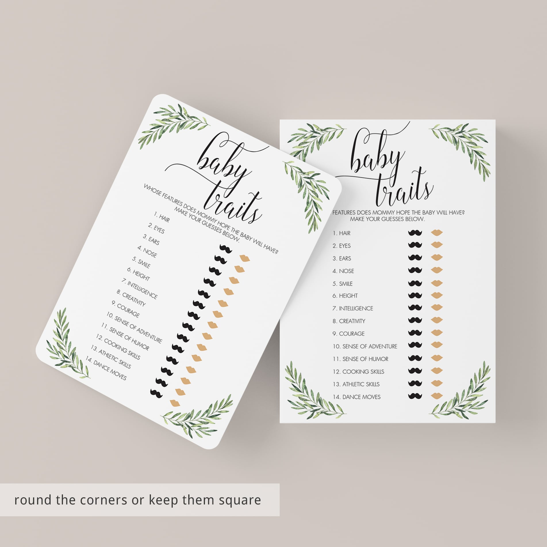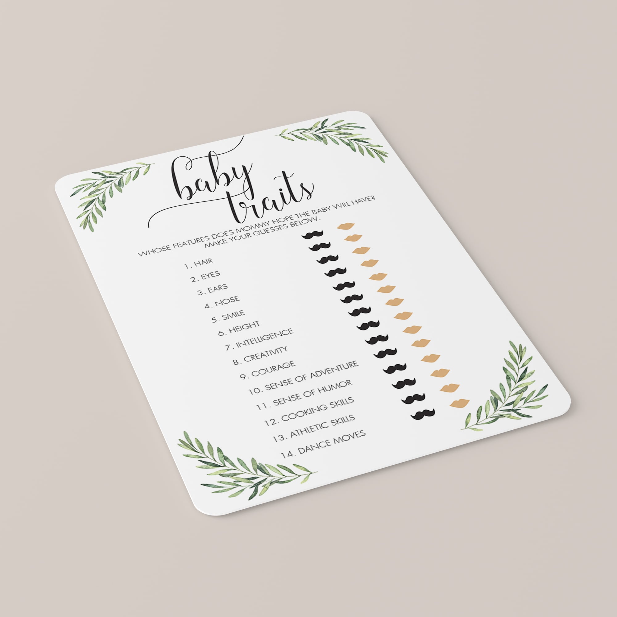 Play Baby Traits with this greenery game card and get everyone thinking about what the new baby will look like!