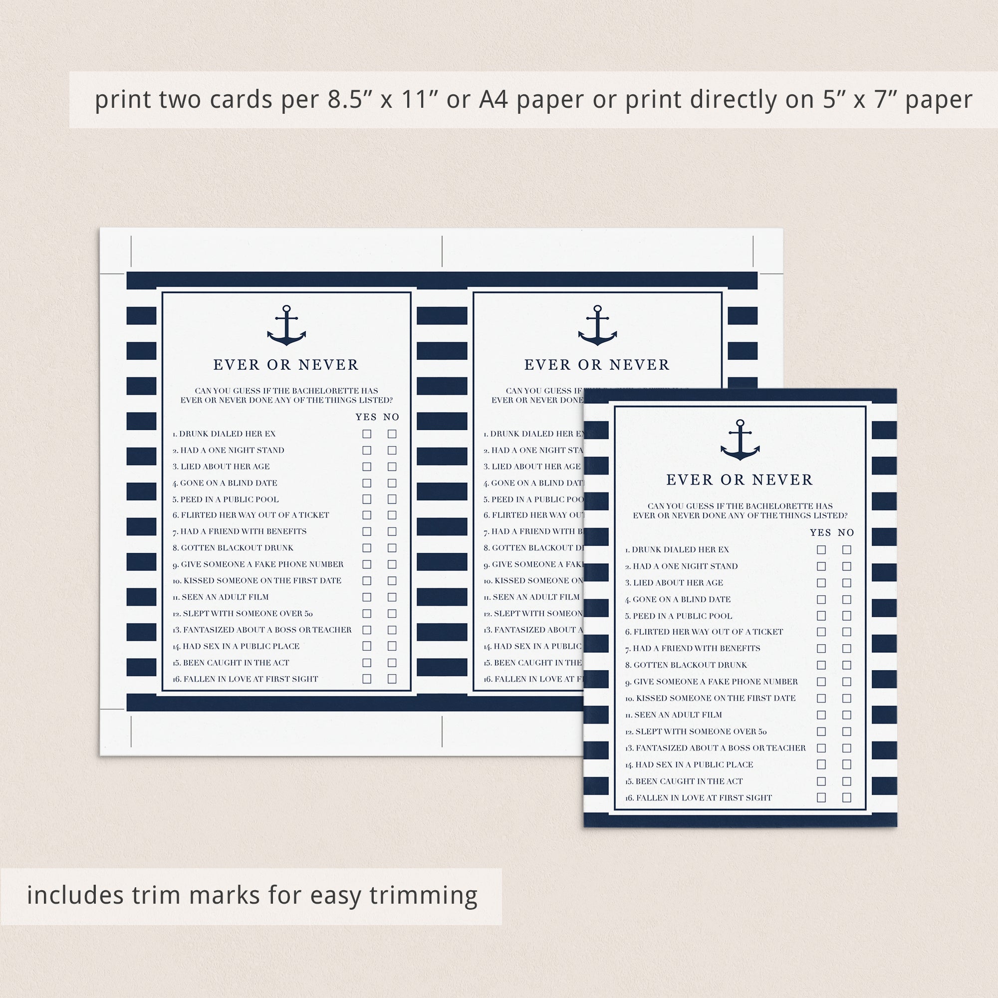 This nautical theme bachelorette game an instant download. After purchase you will receive a download link immediately on screen. Also within minutes of your order and payment, an e-mail will be sent to you with a link for your download.