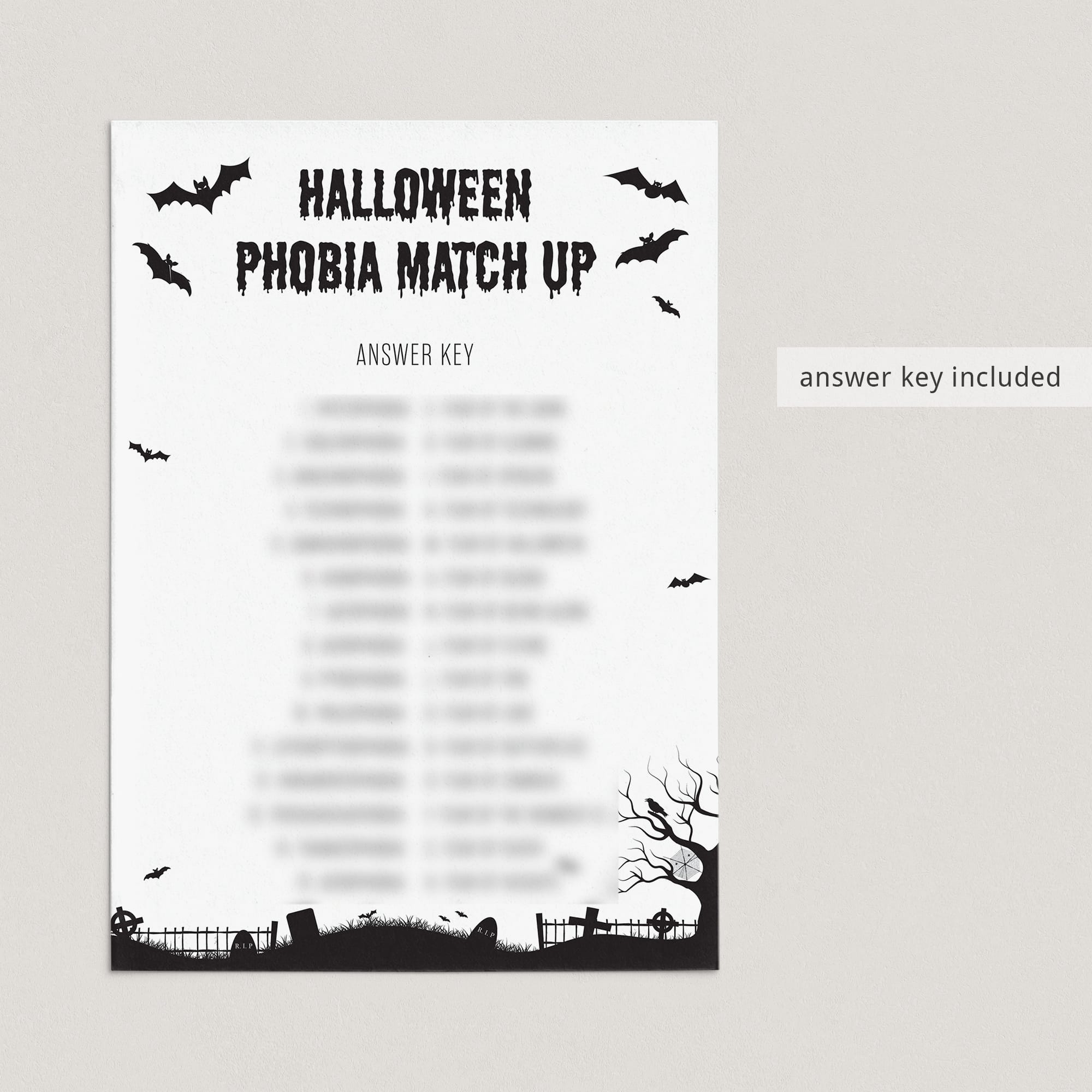 Are you looking for a fun game to play at your Halloween party? Play Phobia Match Up with this black and white Halloween game card. The game will be the perfect addition to any Halloween party.