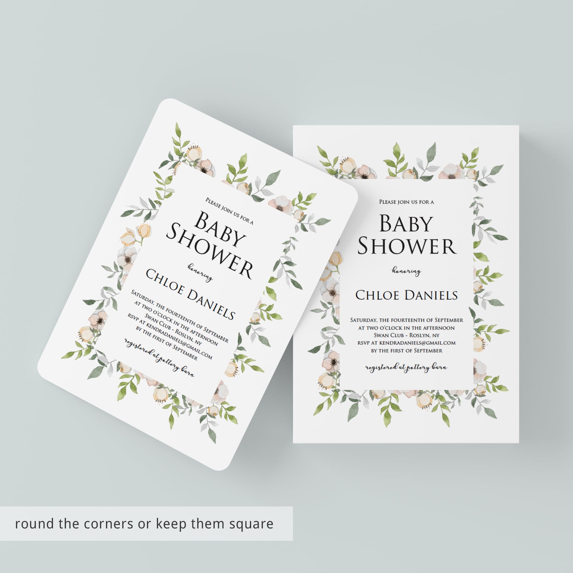 This blush baby shower invitation template is editable in Adobe Acrobat Reader (free download). After downloading the file, fill in your details and print in just minutes. We've included our detailed instruction guide to make the process super smooth.
