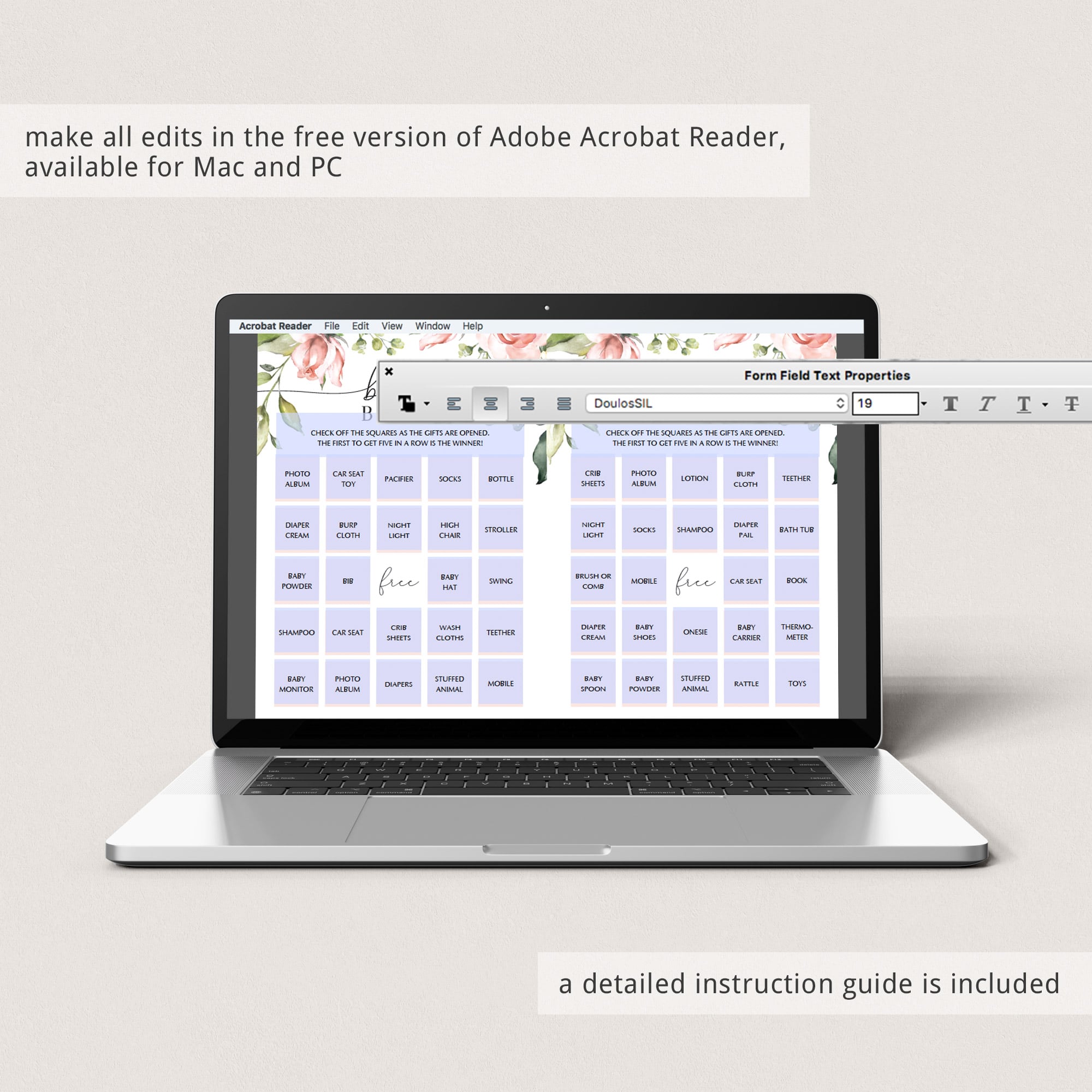 Blush Floral Baby Bingo Cards Prefilled, Blank and Game Template by LittleSizzle