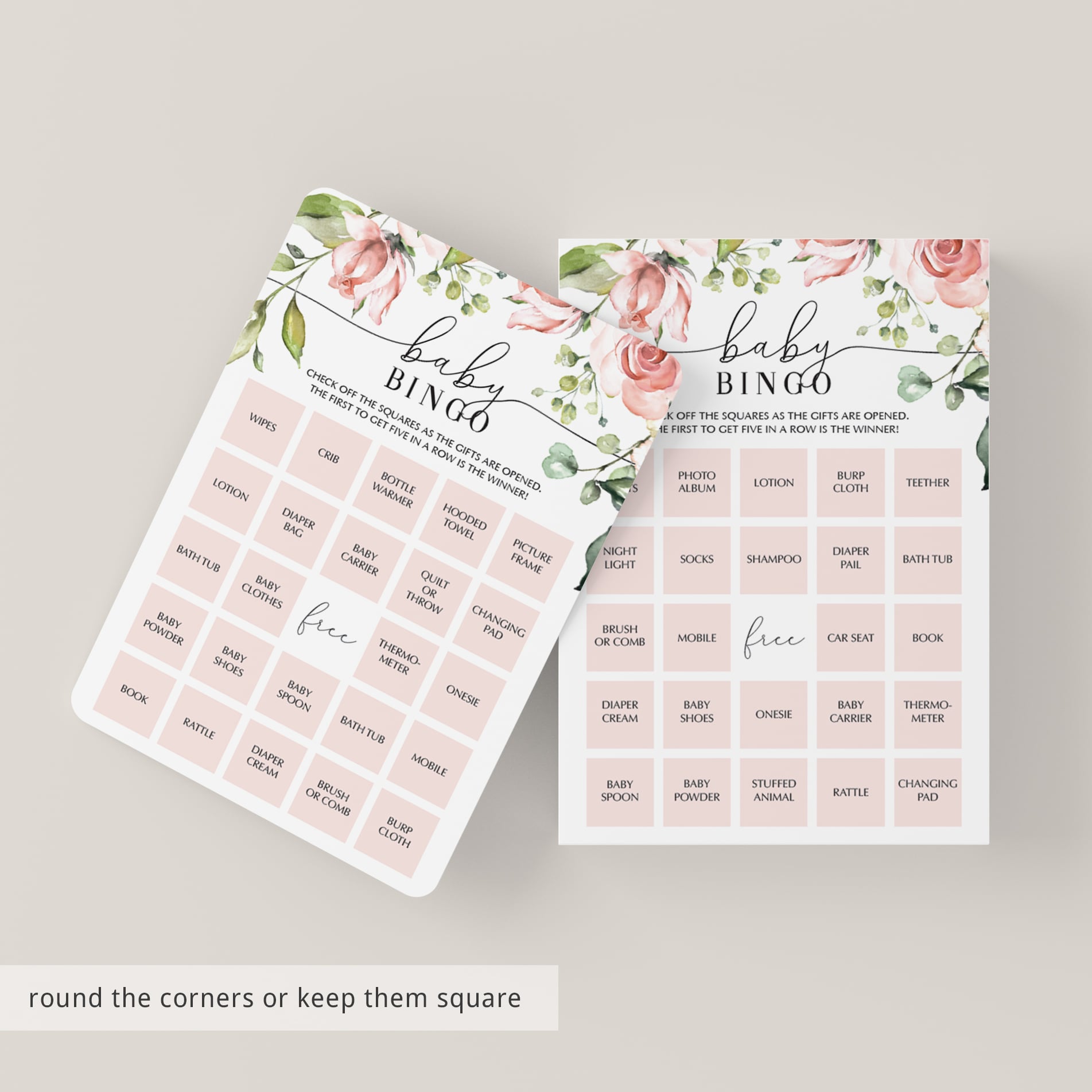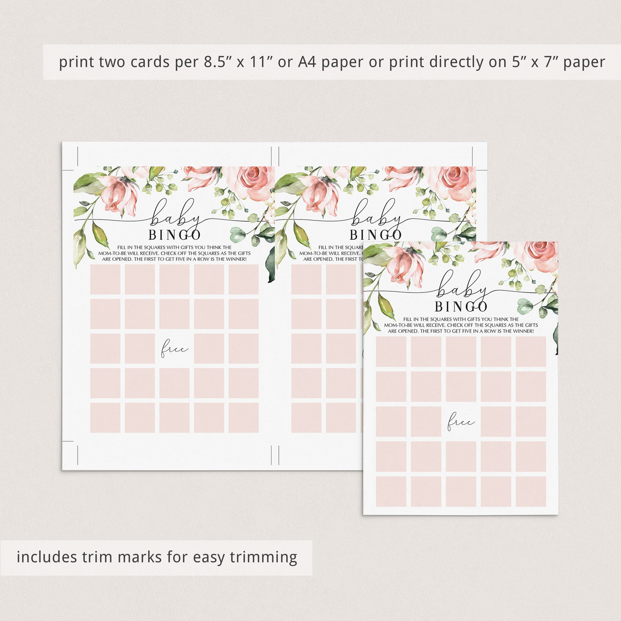 Blush Floral Baby Bingo Cards Prefilled, Blank and Game Template