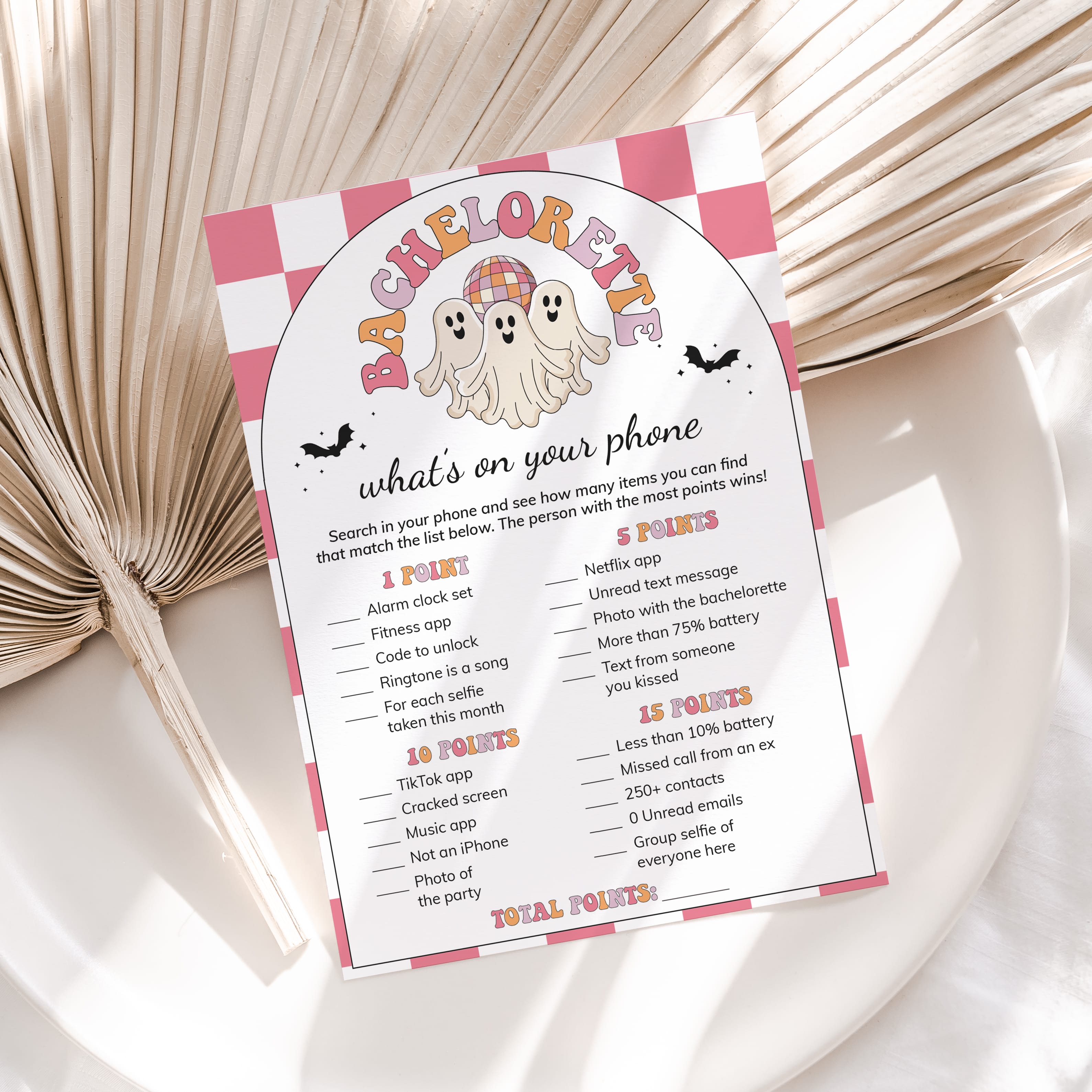 Most people come to a party with just a phone, credit card and keys. What else do you need, right? Does this sound familiar to you? Then this Boo Crew Bachelorette Party Game Whats In Your Phone is the perfect icebreaker for your Ghouls Bach Party. It’s super easy to prepare for and simple to play.