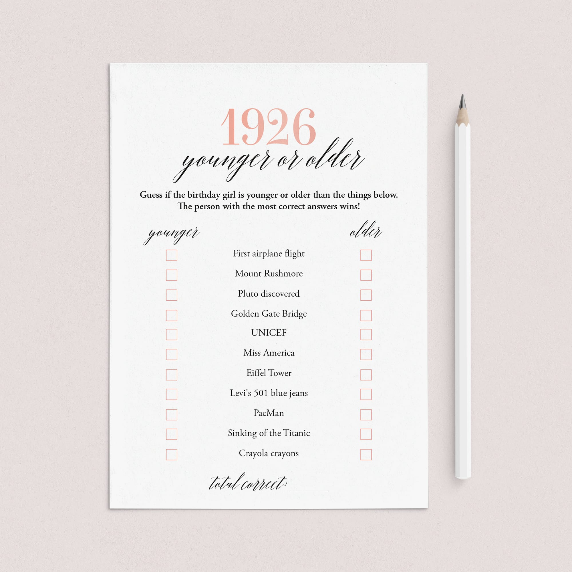 Are you looking for fun birthday games for a woman born in 1926? Look no further! This huge 100th Birthday Party Games Bundle for Women is the perfect addition to your mom's or grandma's