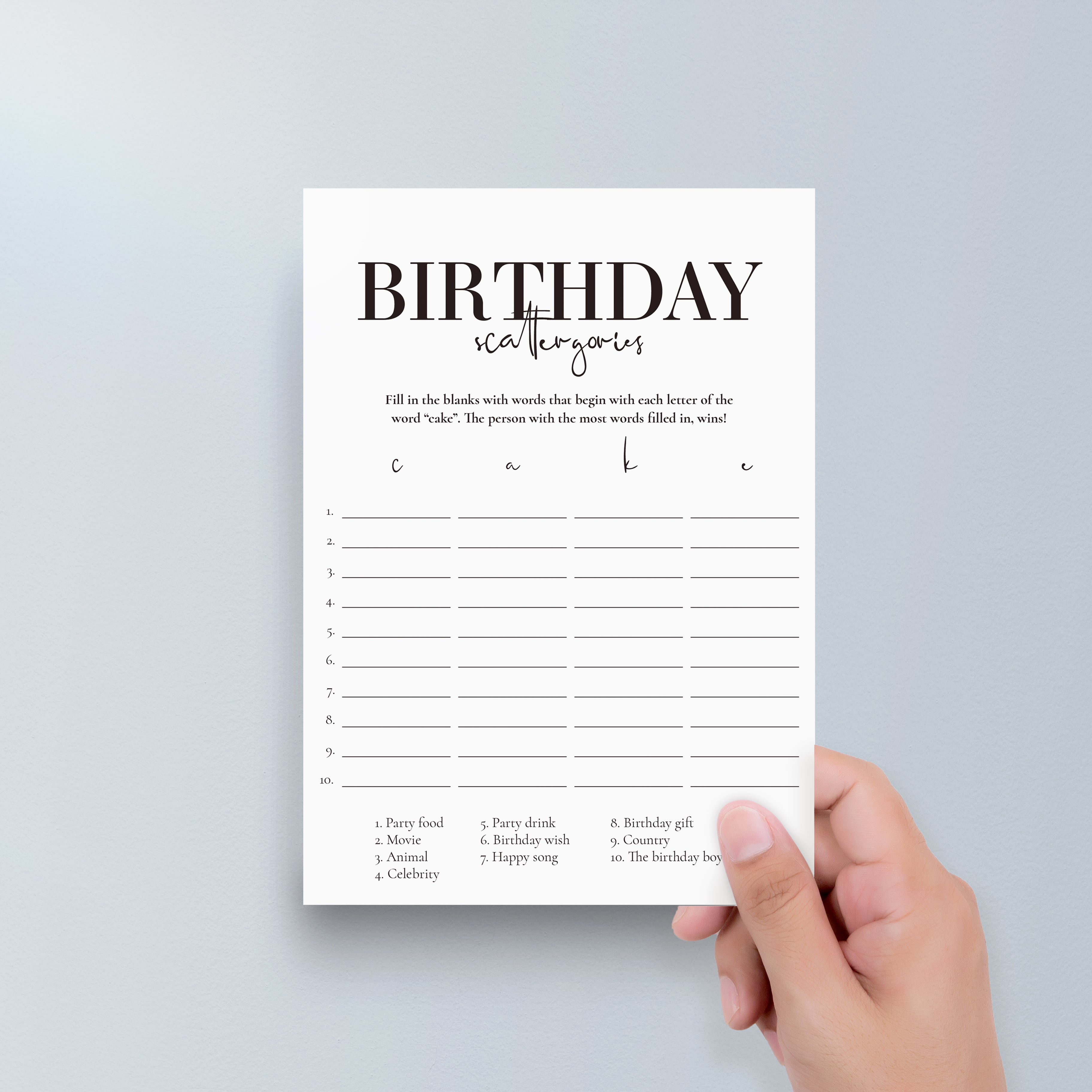 Print the games right from your computer in a matter of minutes or have the cards printed at your favorite print shop. The games have been designed in black and white. You can print on kraft paper to create a rustic look or print on colored card stock to match your party color palette. We recommend printing on a nice heavy card stock for highest quality feel.