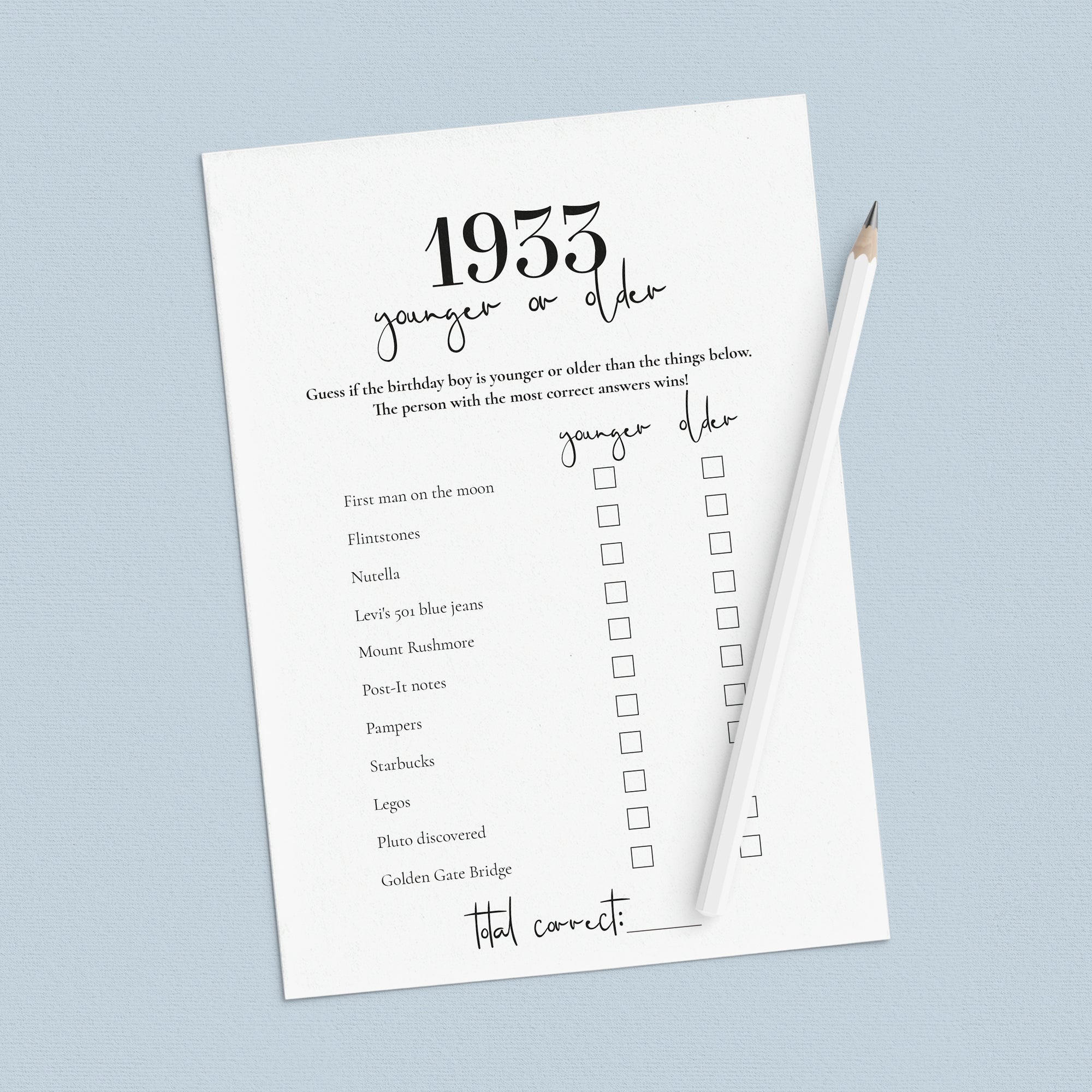 Are you looking for some fun birthday games for a man born in 1933? Look no further! This huge 92nd Birthday Party Games Bundle for Men is the perfect addition to your dad's or grandpa's 92nd birthday celebration.