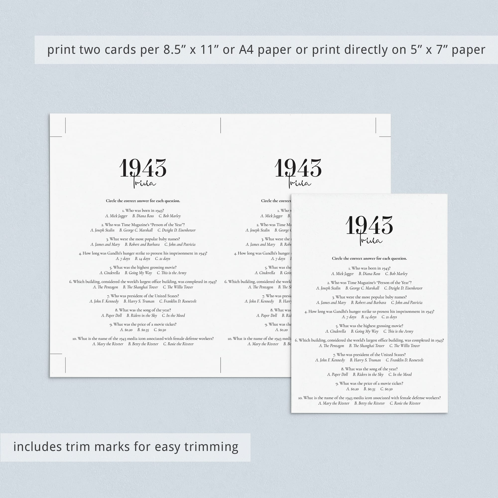The printable 1943 Birthday Games Bundle is an instant download. After purchase you will receive a download link immediately on screen. Also within minutes of your order and payment, an e-mail will be sent to you with a link for your download.