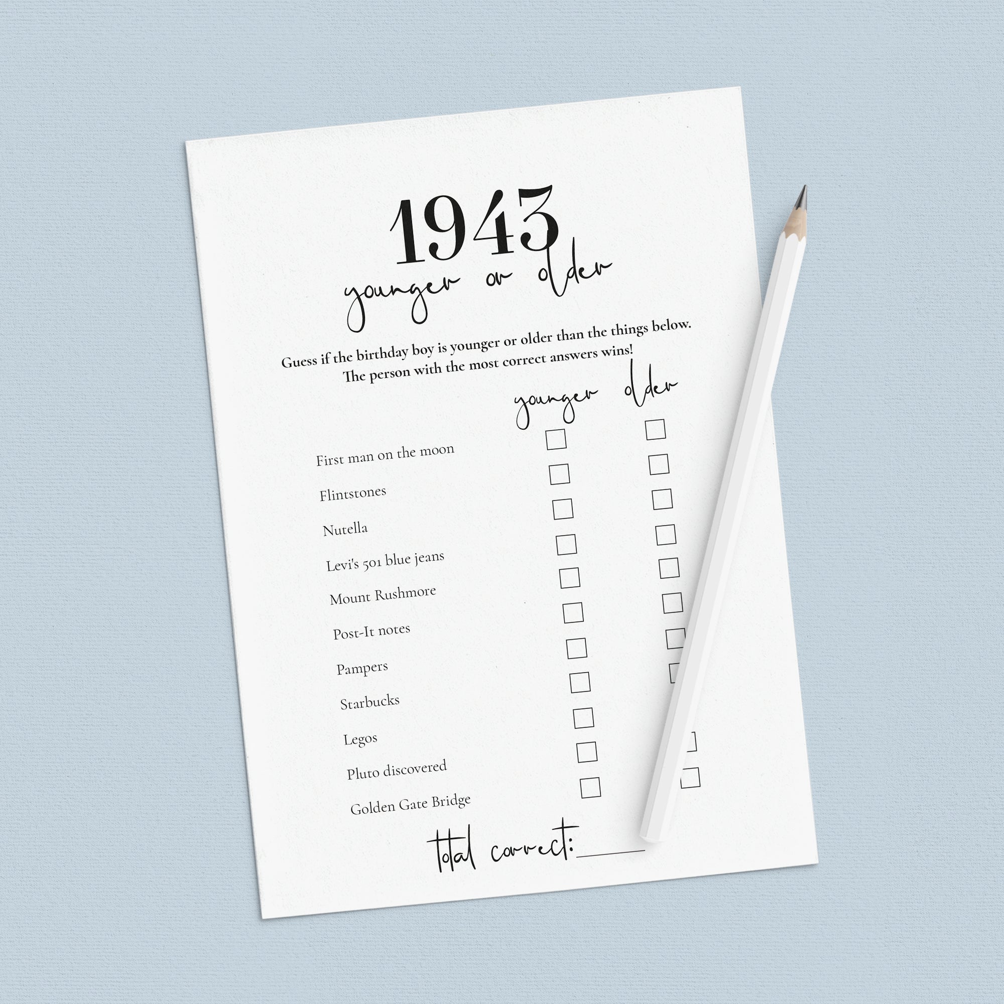 Born in 1943 82nd Birthday Party Games Bundle For Men by LittleSizzle