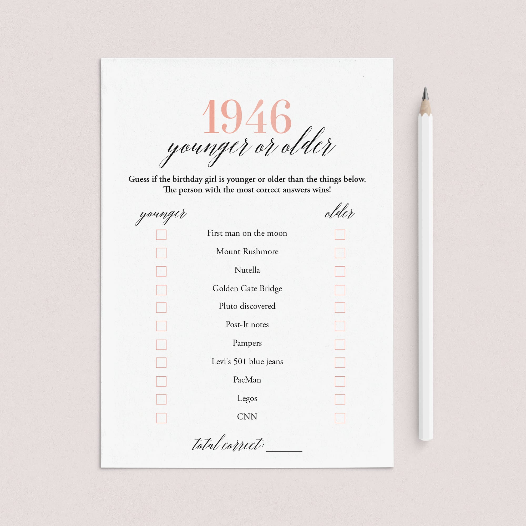 • 1946 Younger or Older (answer key included)