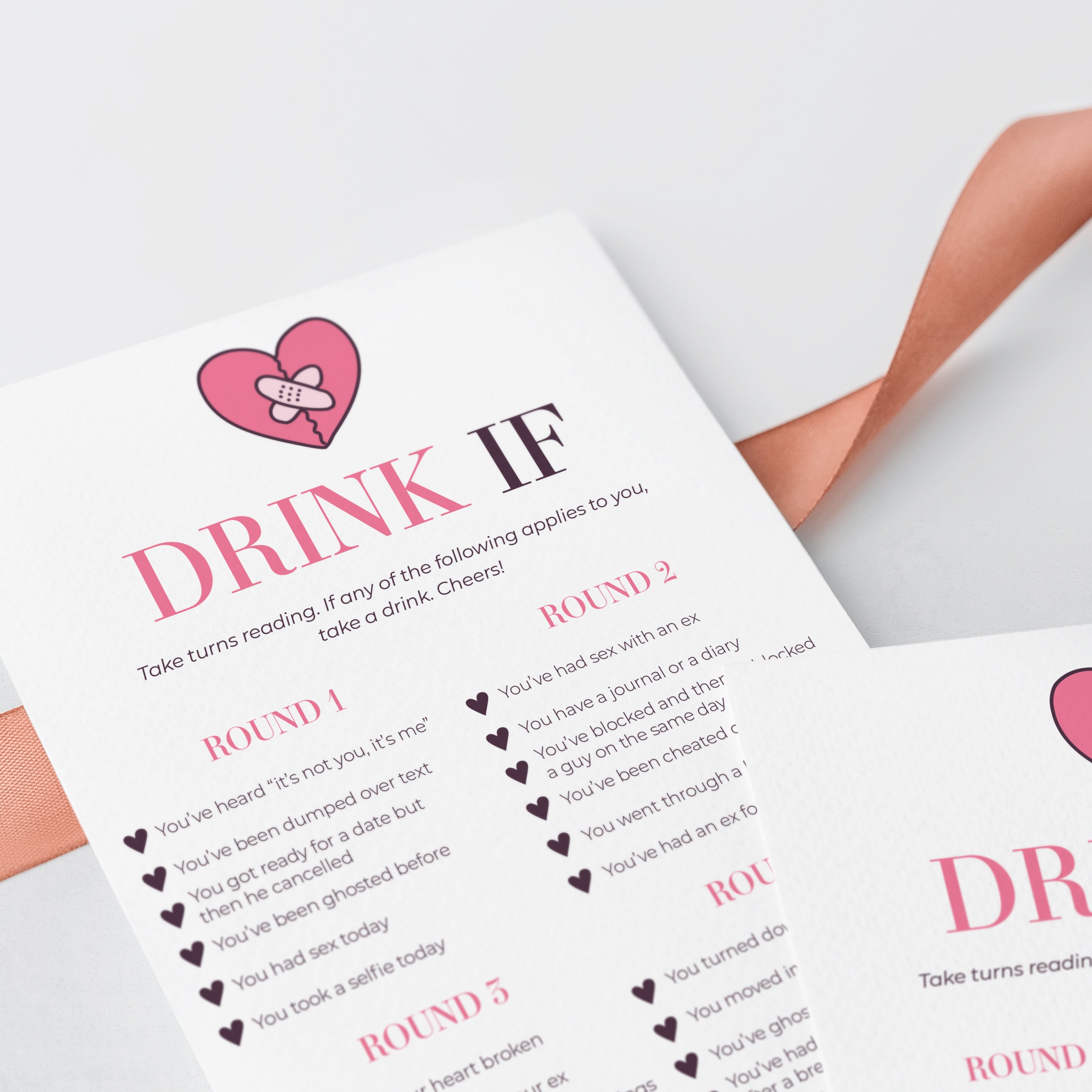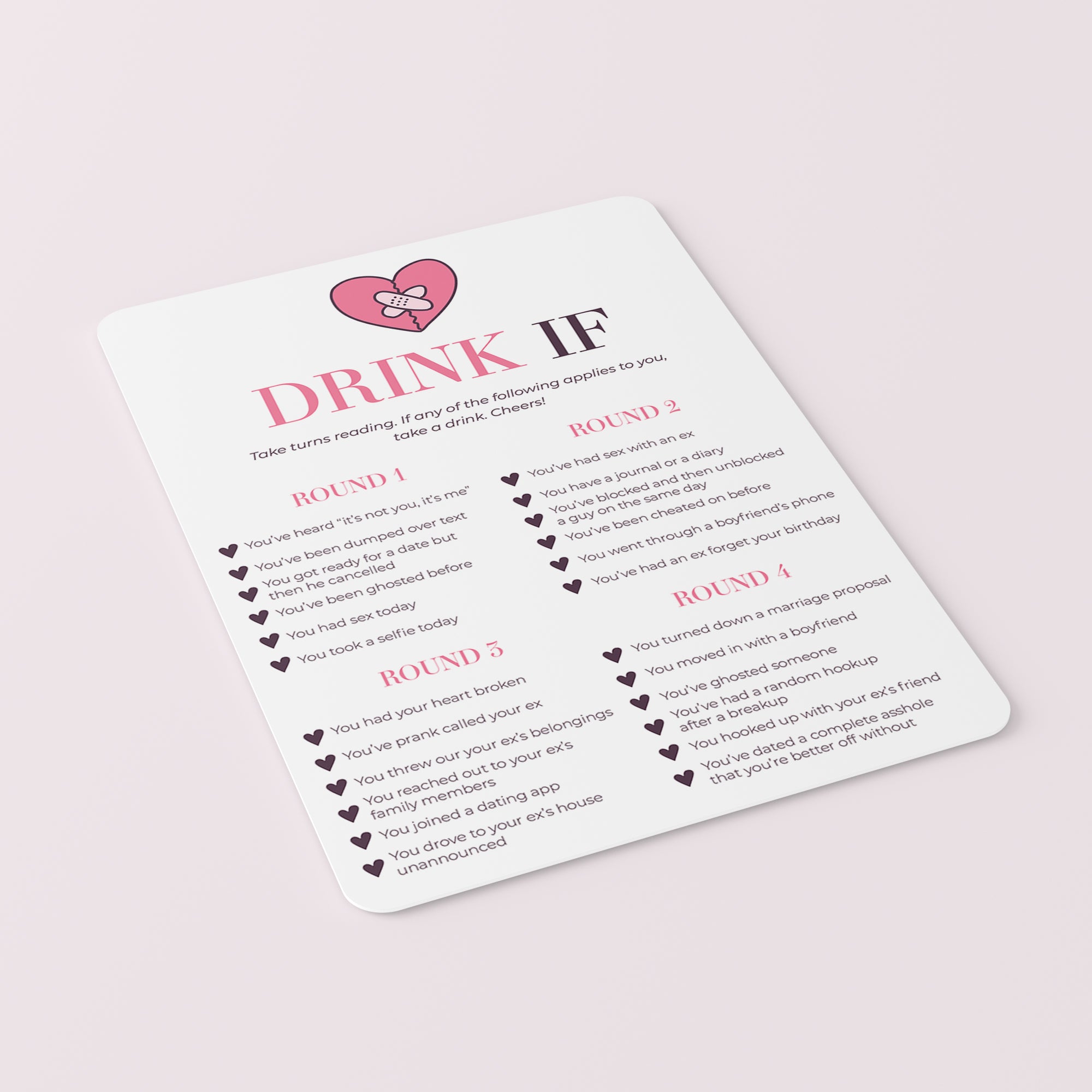 This breakup party drink if game is an instant download. After purchase you will receive a download link immediately on screen. Also within minutes of your order and payment, an e-mail will be sent to you with a link for your download.