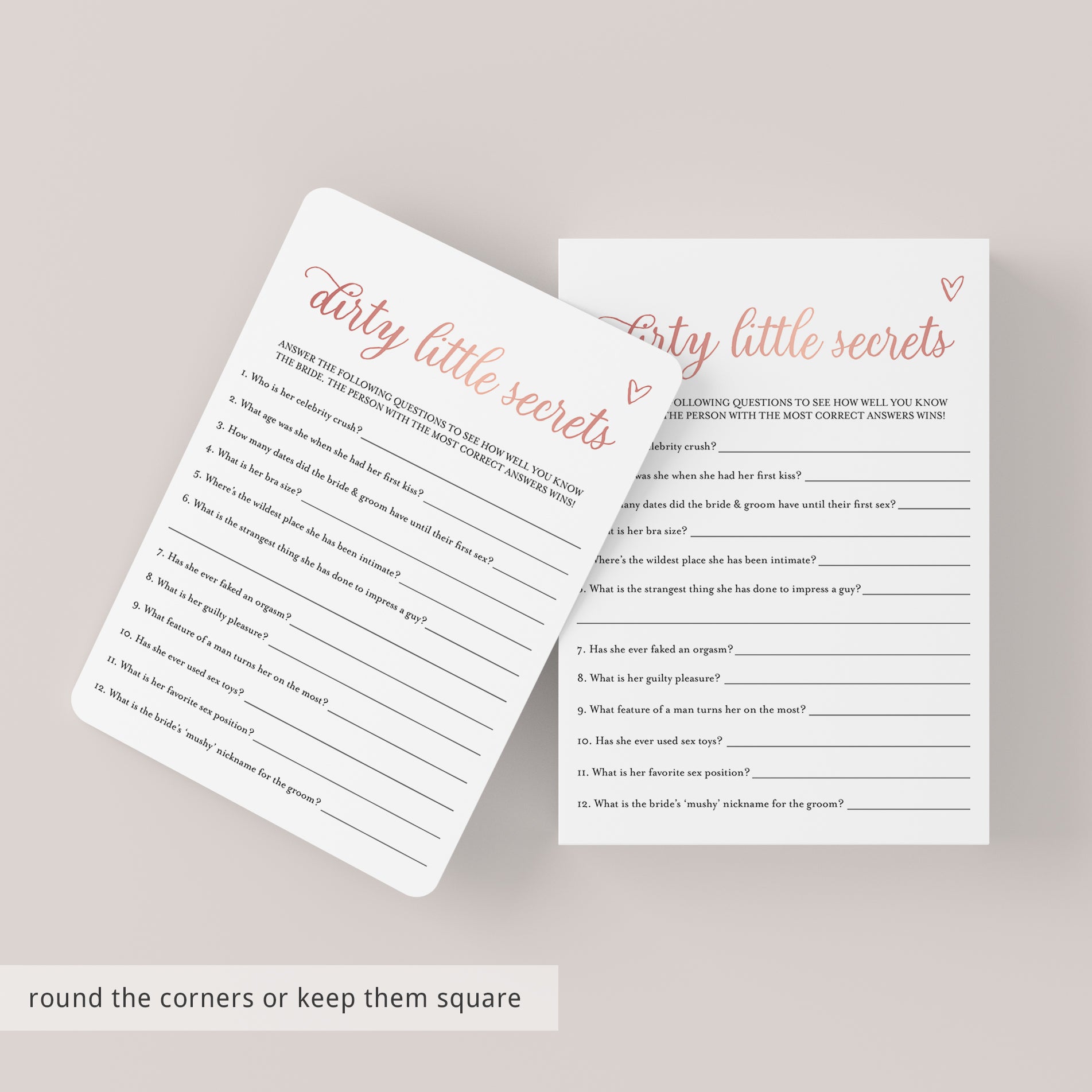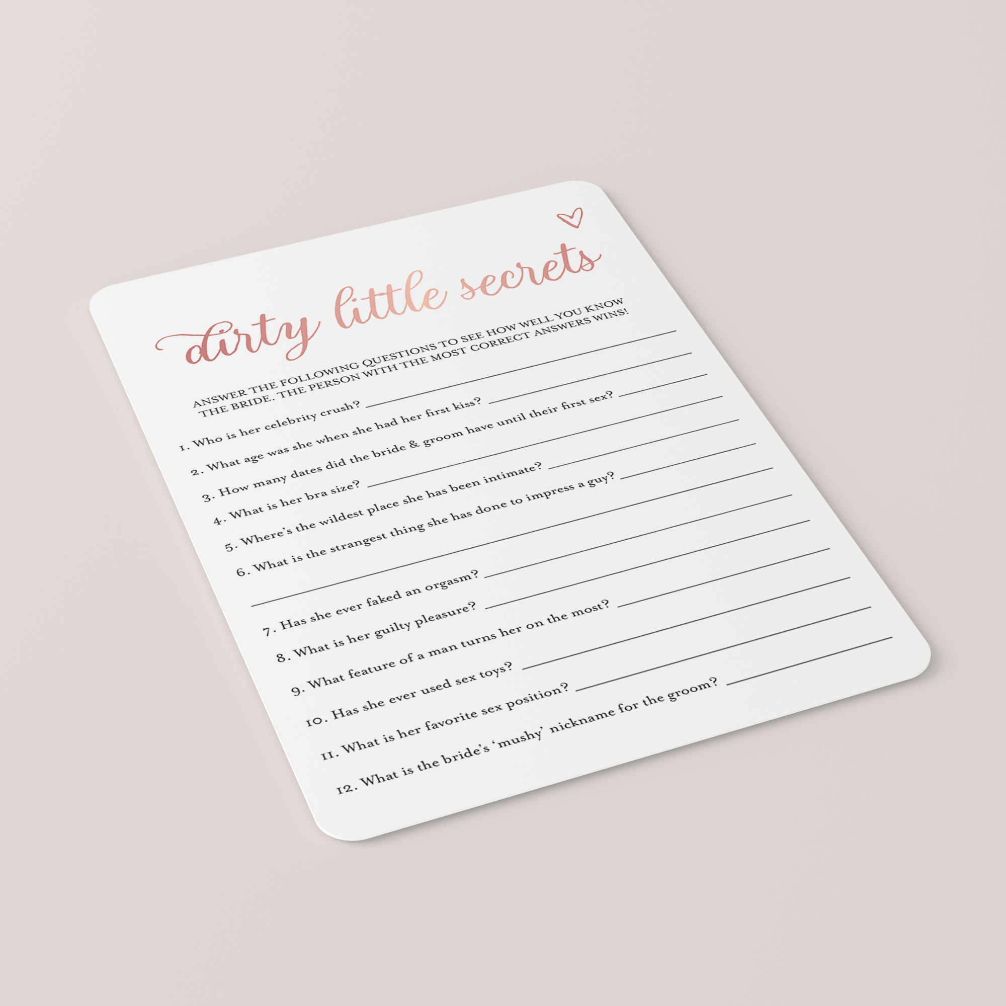 Brides Dirty Little Secrets Game Printable Rose Gold by LittleSizzle