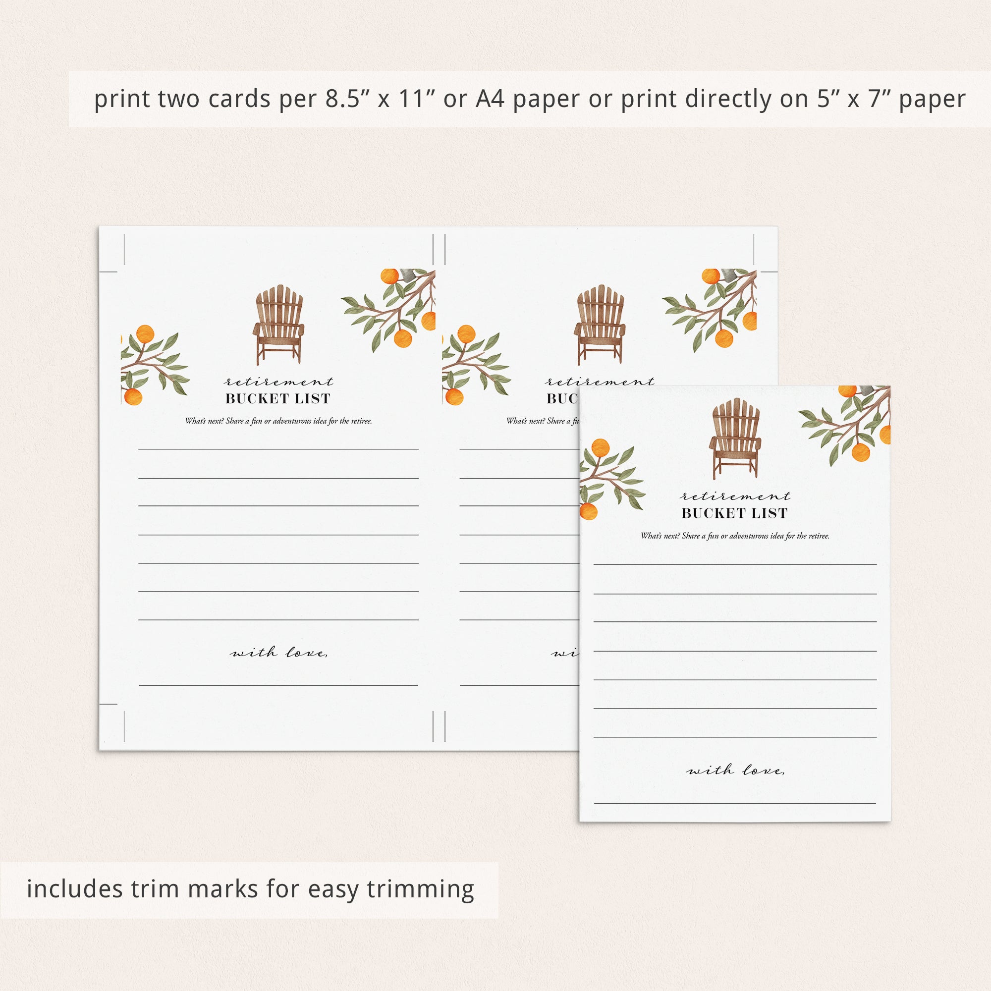 • 1 High resolution PDF sized 8.5" x 11" with trim marks for twice the 5" x 7" design