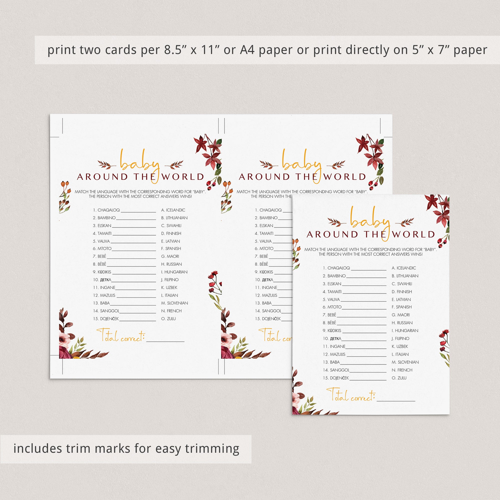 Entertain your baby shower guests and amaze the mom-to-be with these gorgeous burgundy floral baby shower games. The printable games are the perfect addition to fall theme baby shower.