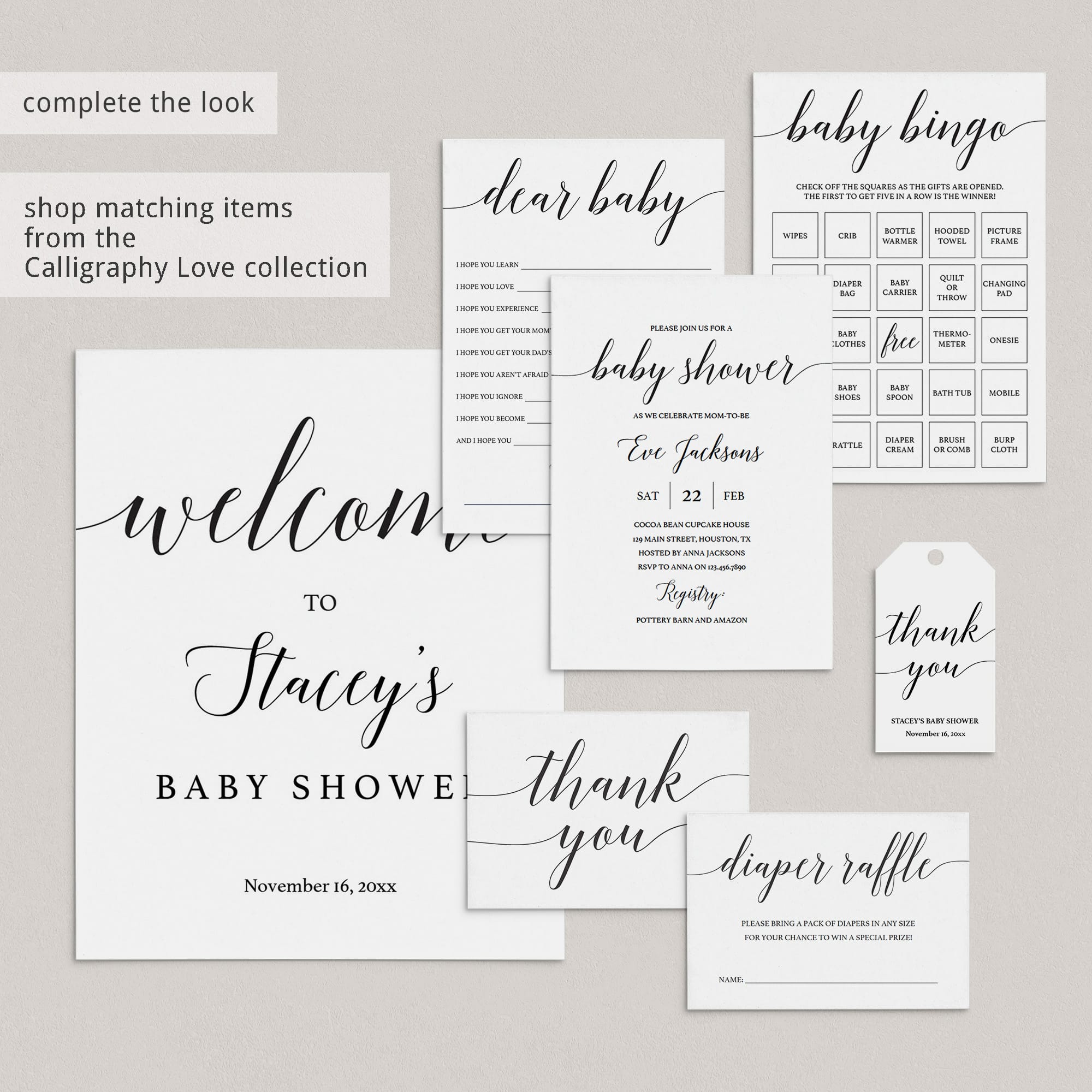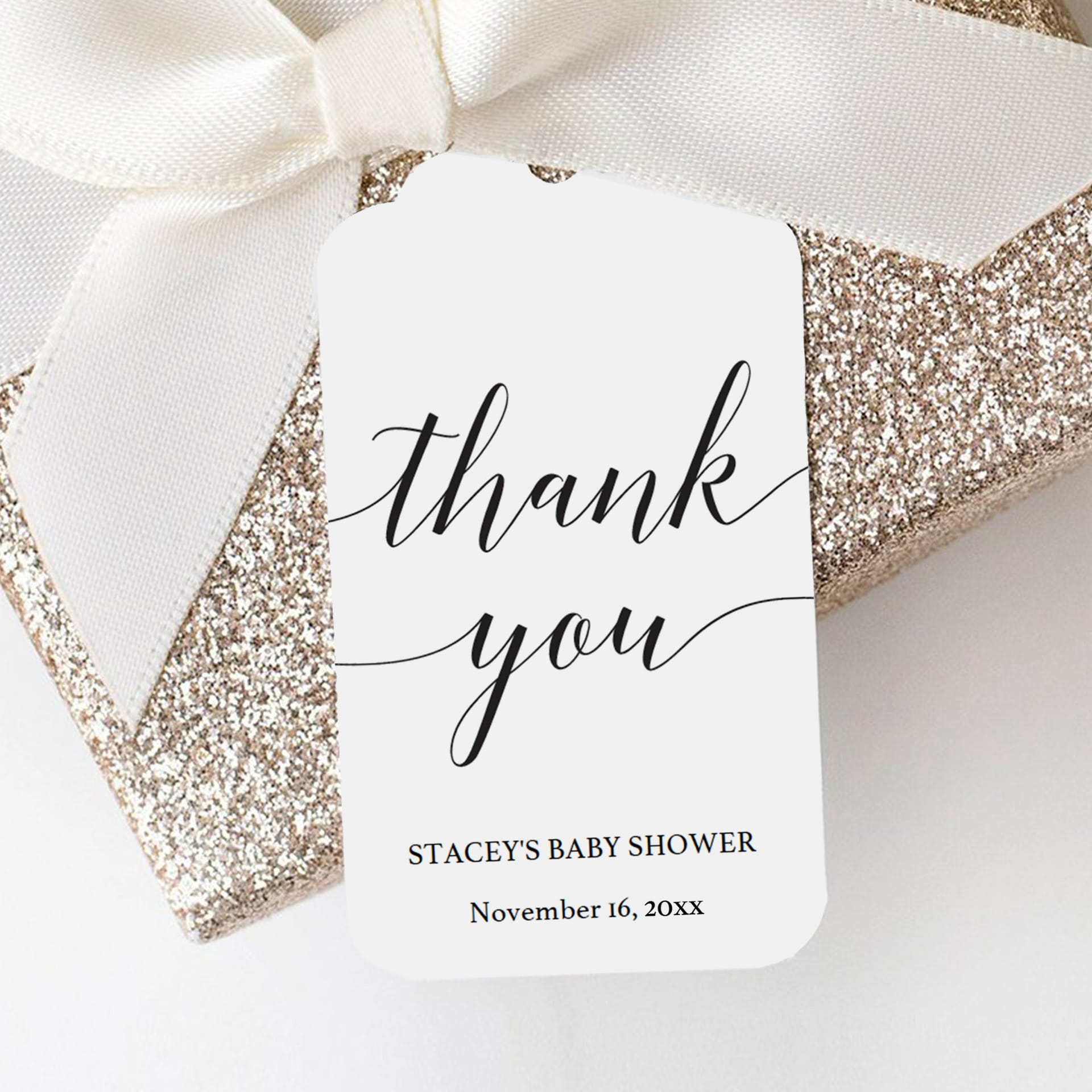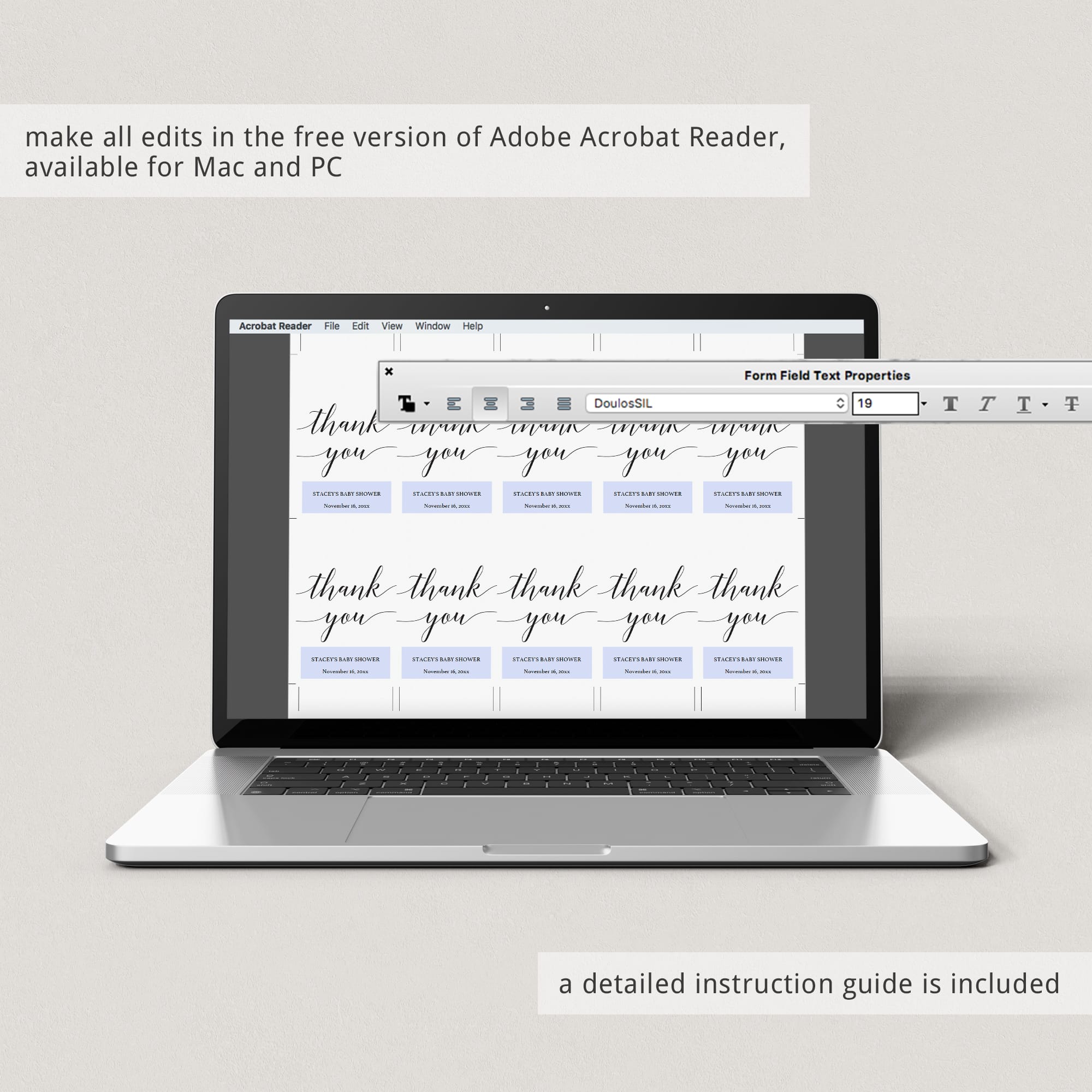 Thank your guests for coming with this calligraphy favor tag. The simple, yet elegant tag is an editable PDF-template. Easily edit the text yourself in the free version of Adobe Acrobat Reader and personalize the favor tag with your own words.