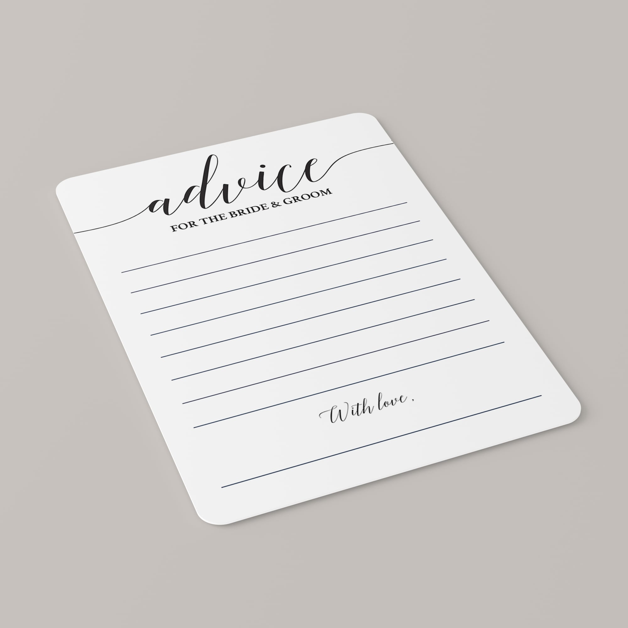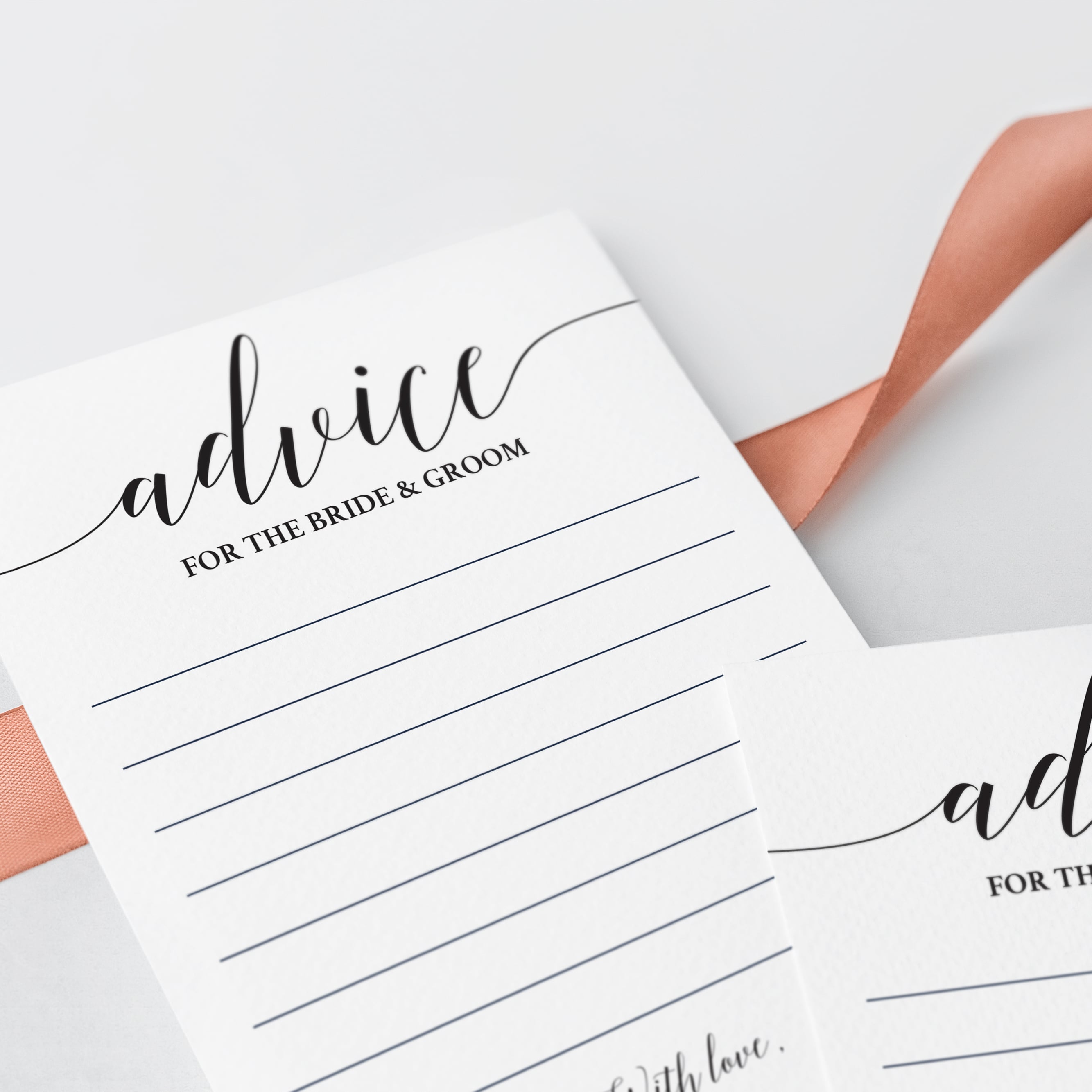 Create elegant keepsakes with these calligraphy wedding advice cards for the bride and groom. It's the perfect addition to any wedding, bridal shower or bachelorette party. Let every guest write down their advice for the newly-weds and collect the calligraphy cards to become a treasured keepsake.