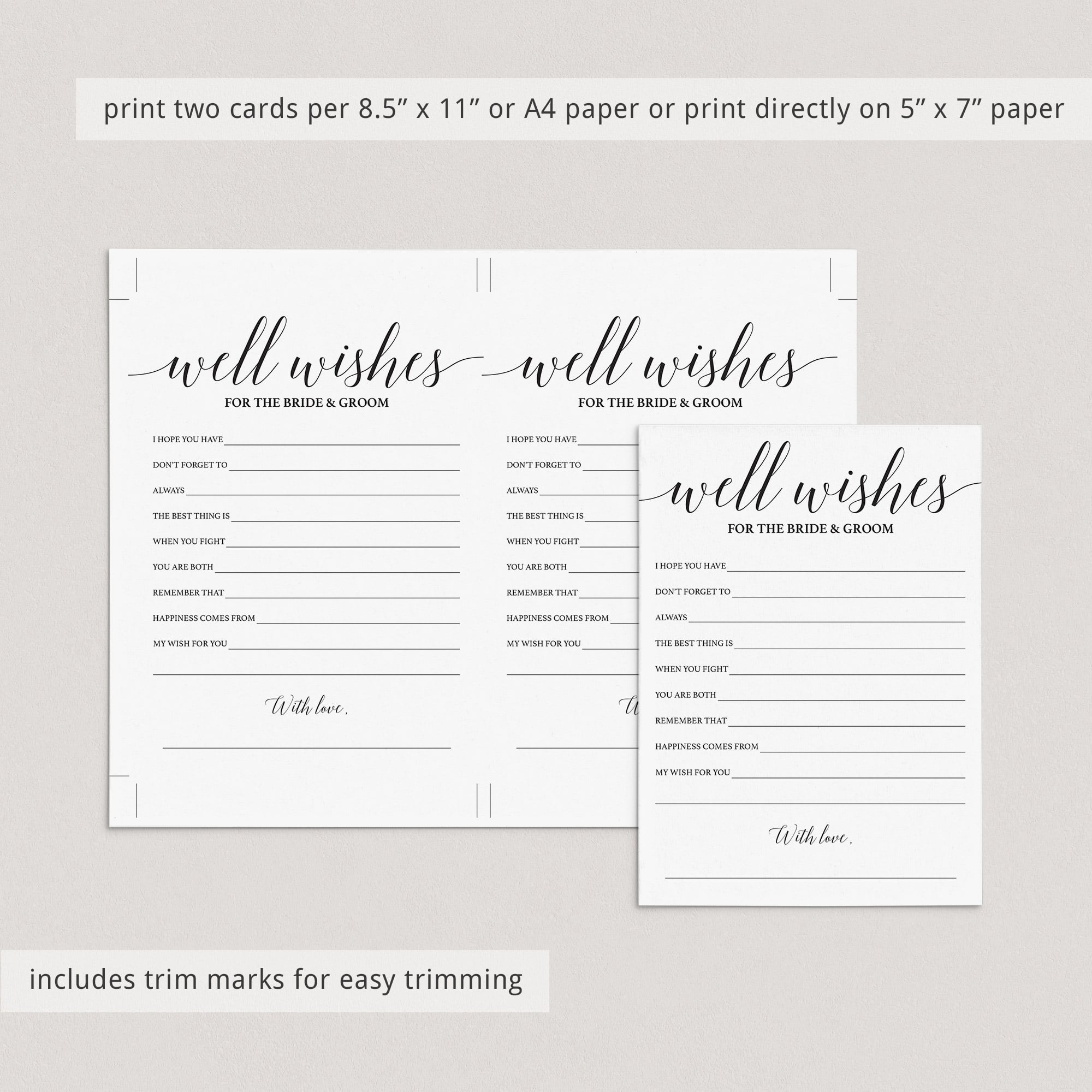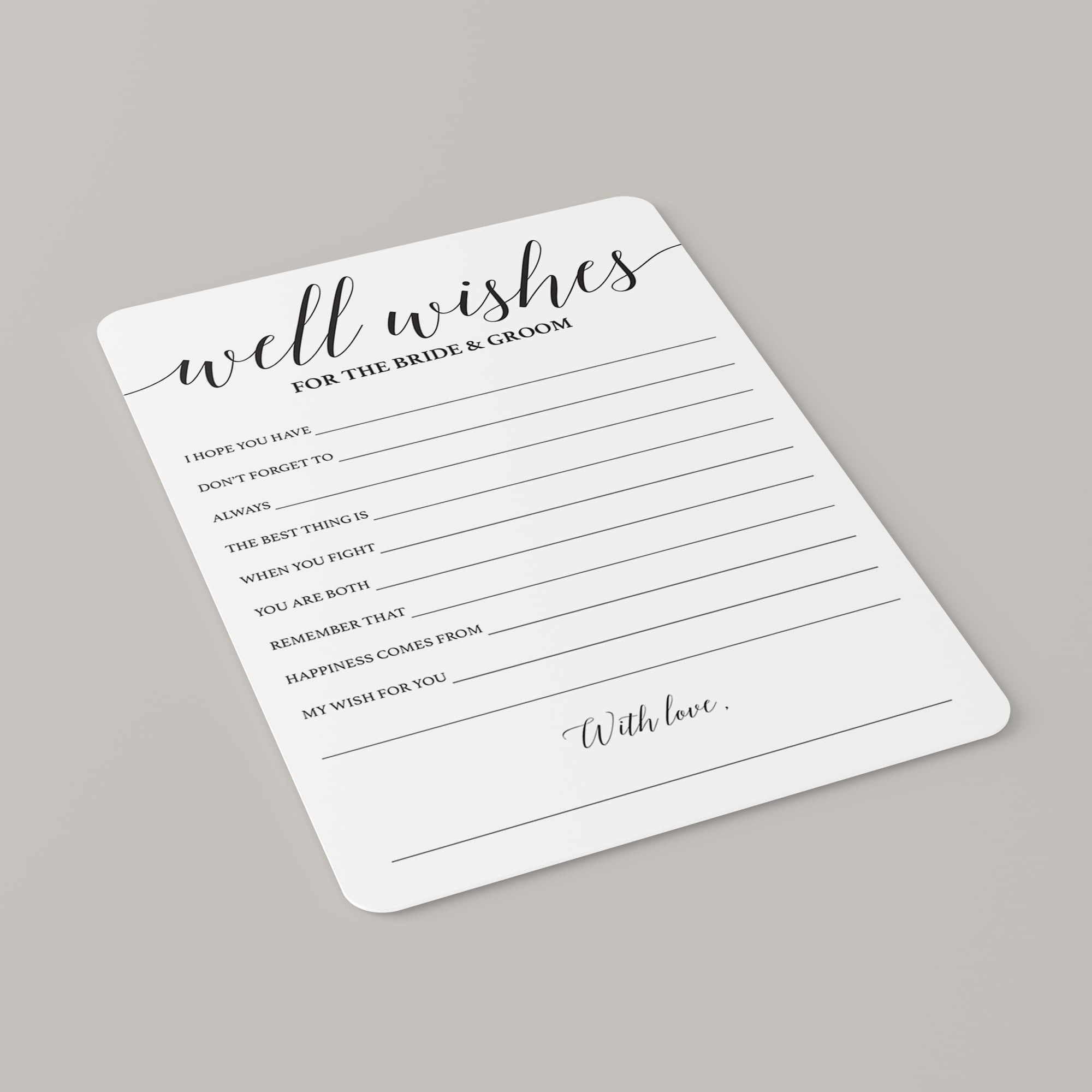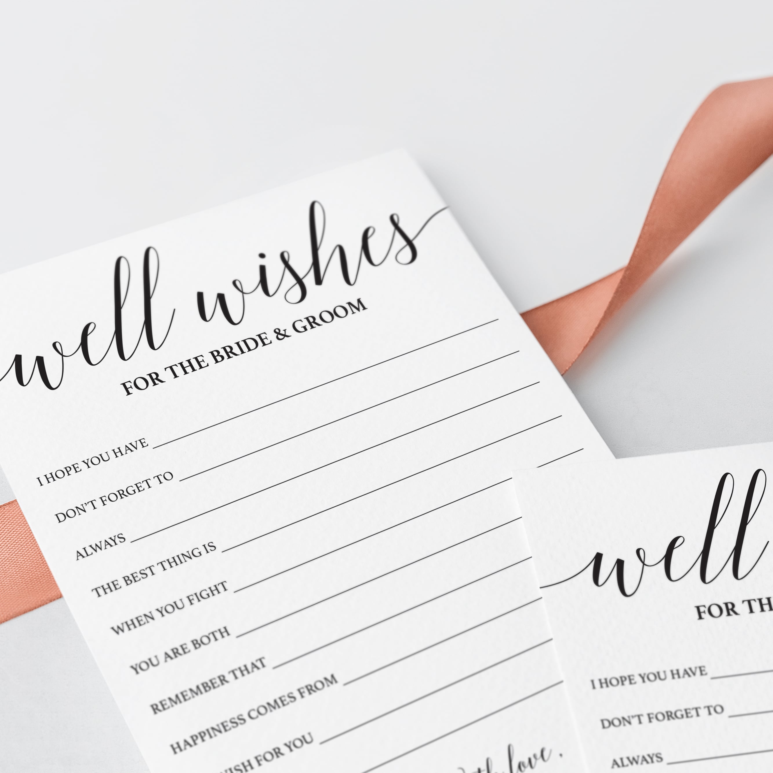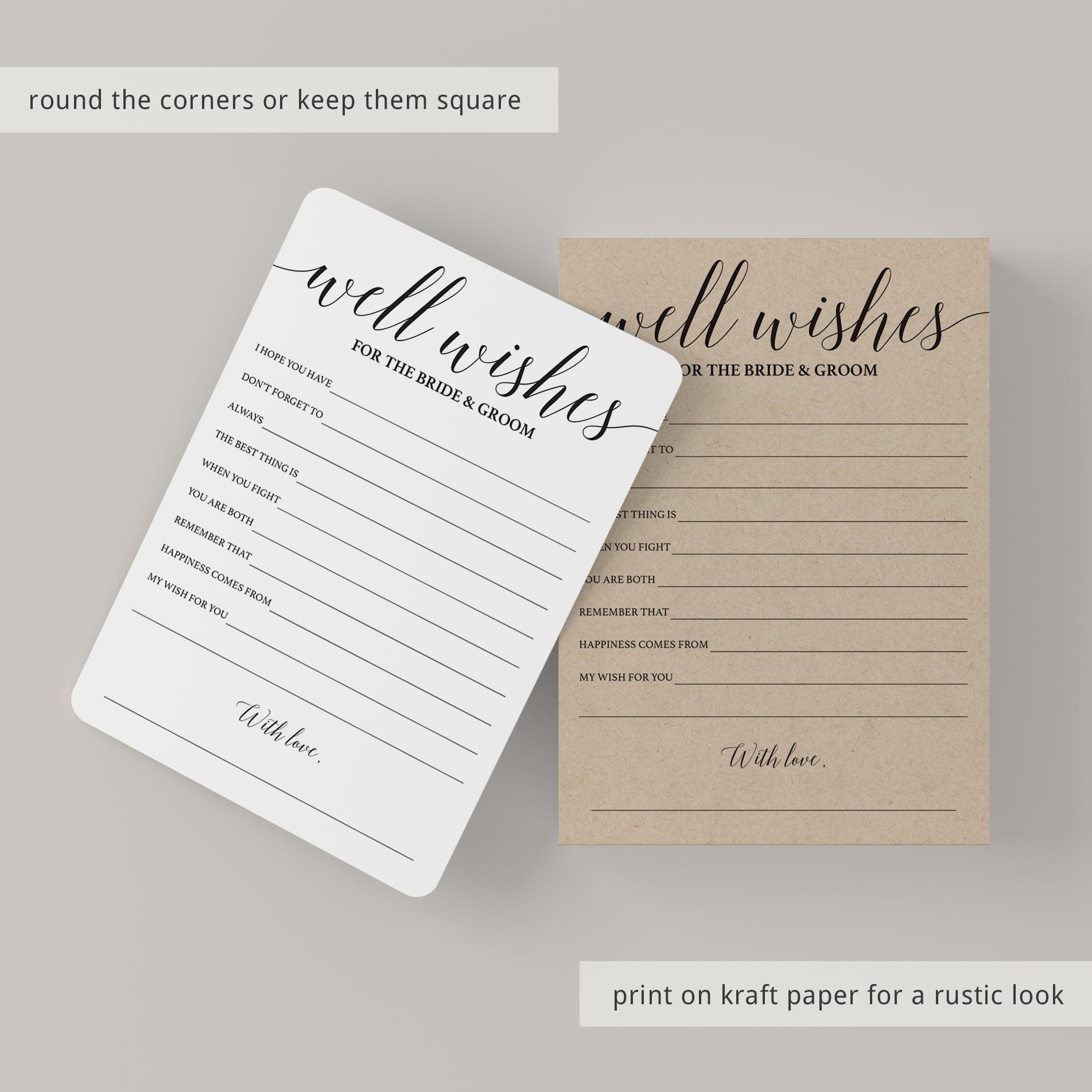 Create an amazing keepsake for the bride and groom with this modern calligraphy wedding well wishes card. It's the perfect addition to any wedding, bridal shower or bachelorette party. Let every guest write down their advice and wishes for the soon-to-be-weds and collect the cards for the happy couple.