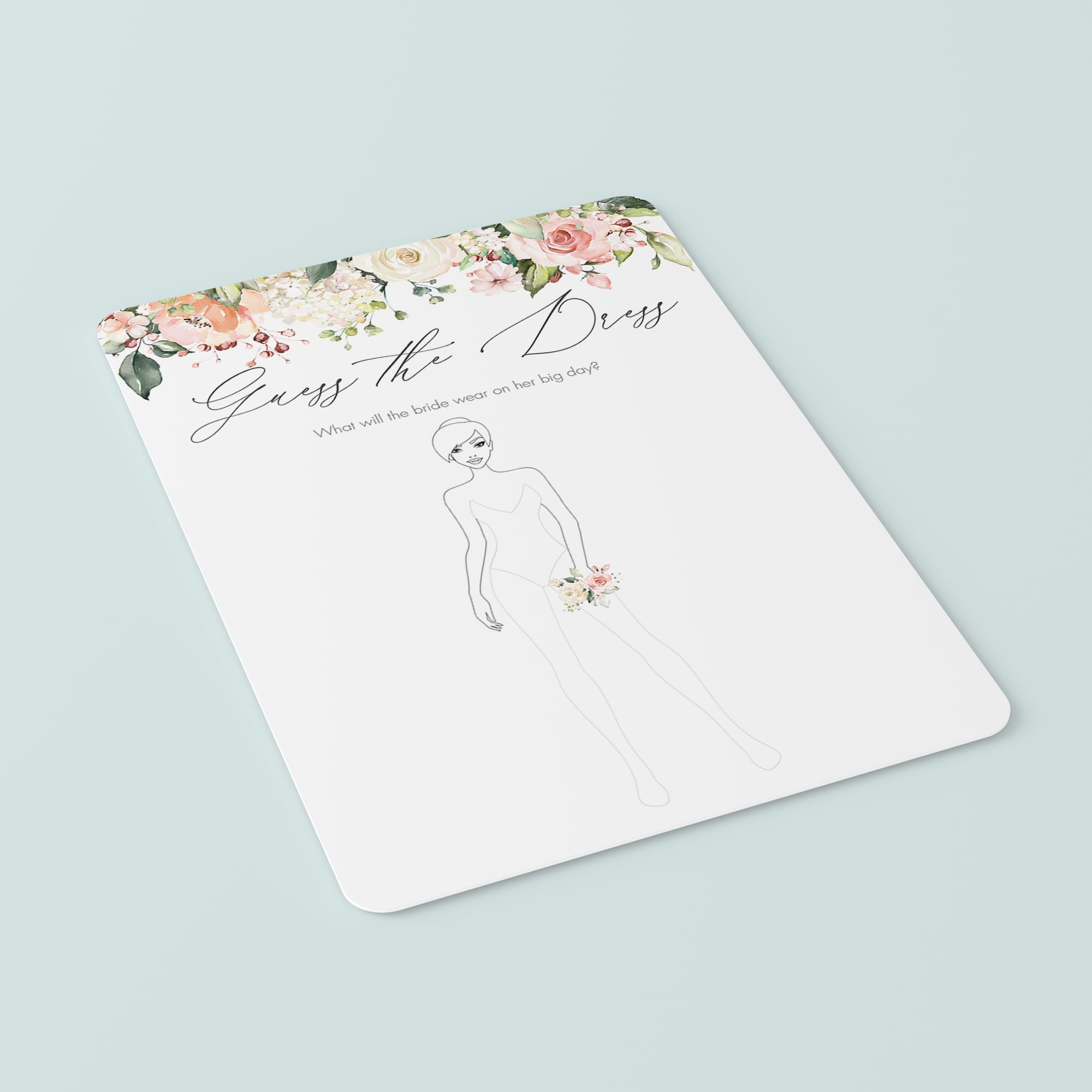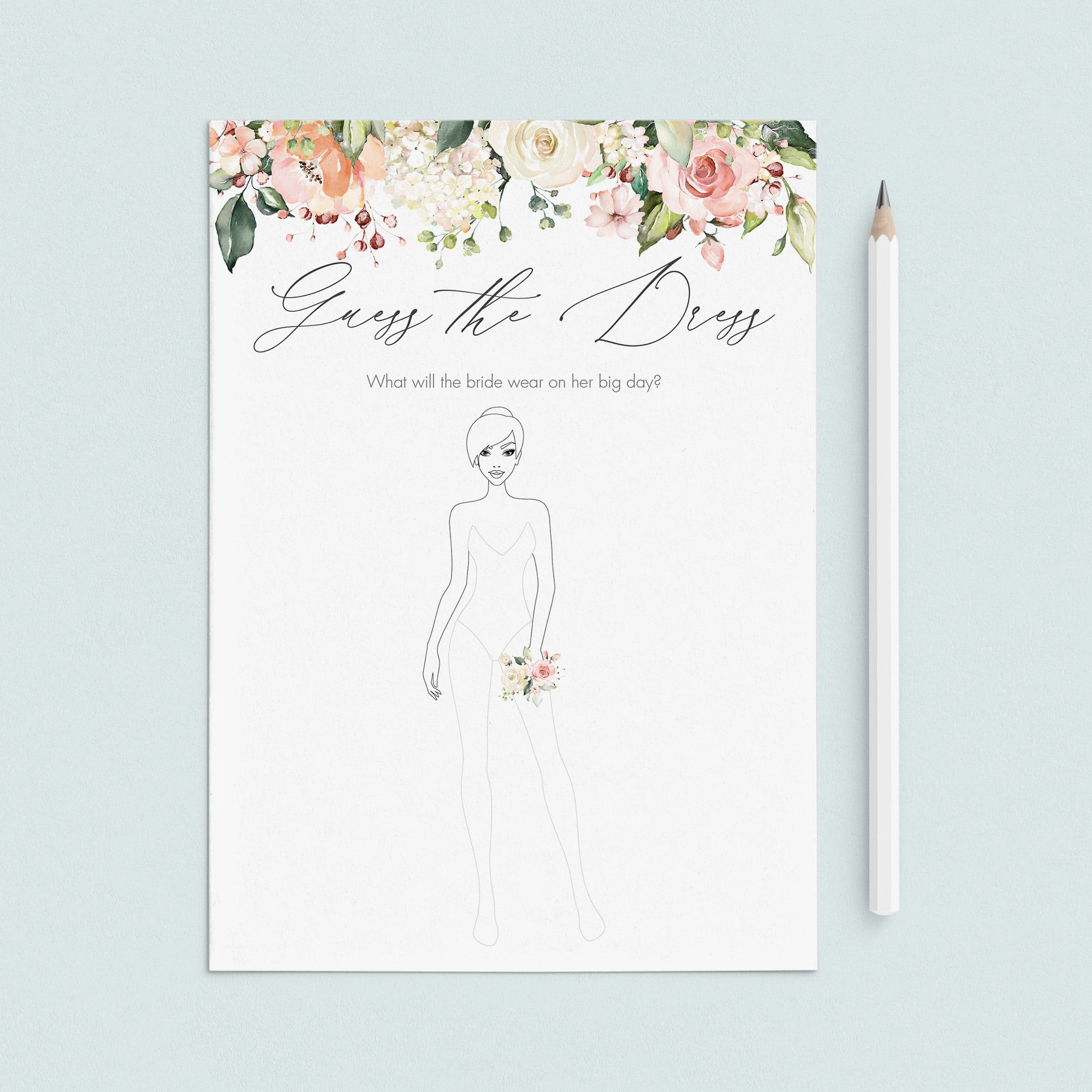 Are you looking for a unique game to play at your bridal shower? Play Guess The Dress with these beautiful floral game cards. It's the perfect addition to your floral bridal shower or bachelorette party and it's sure to be a hit at your event!