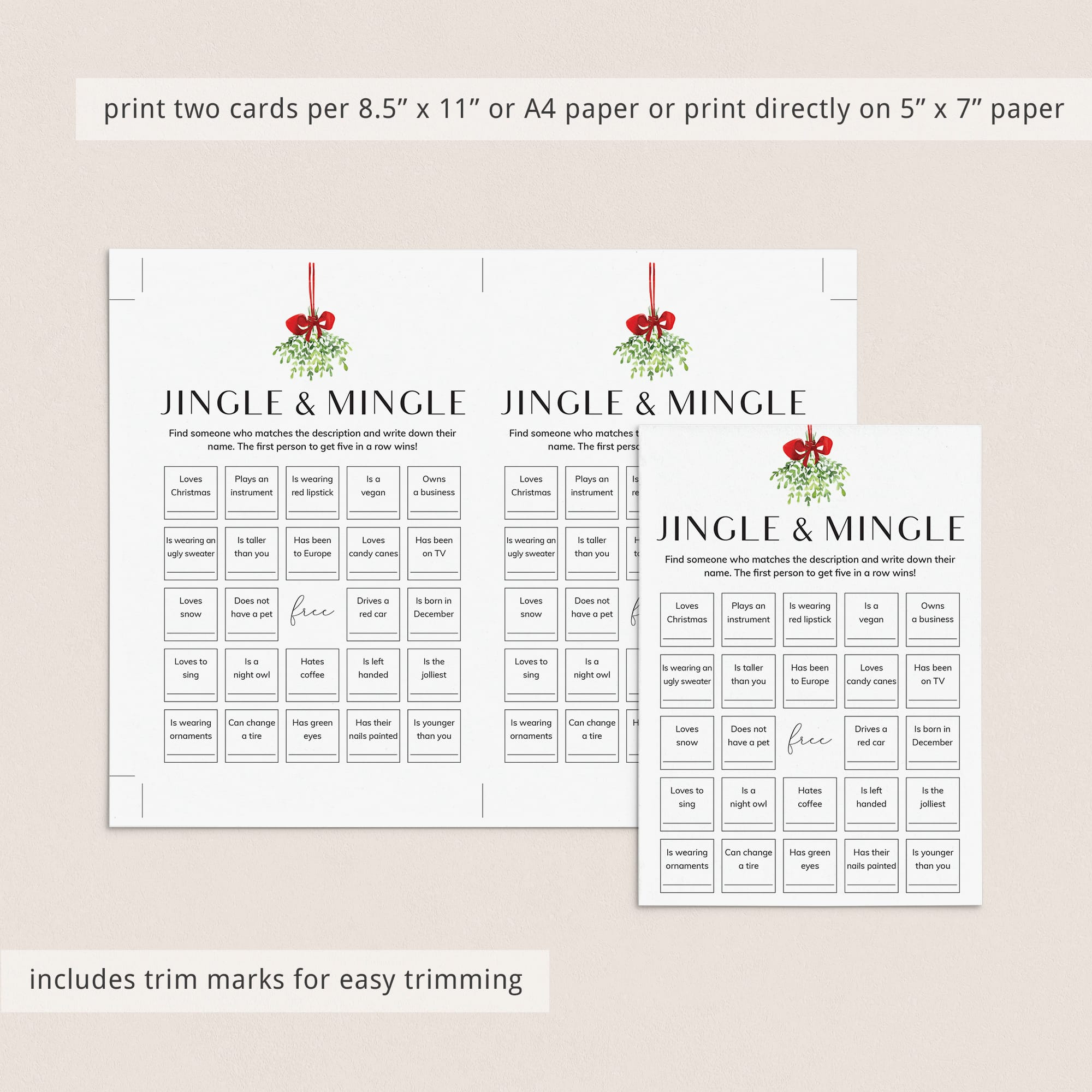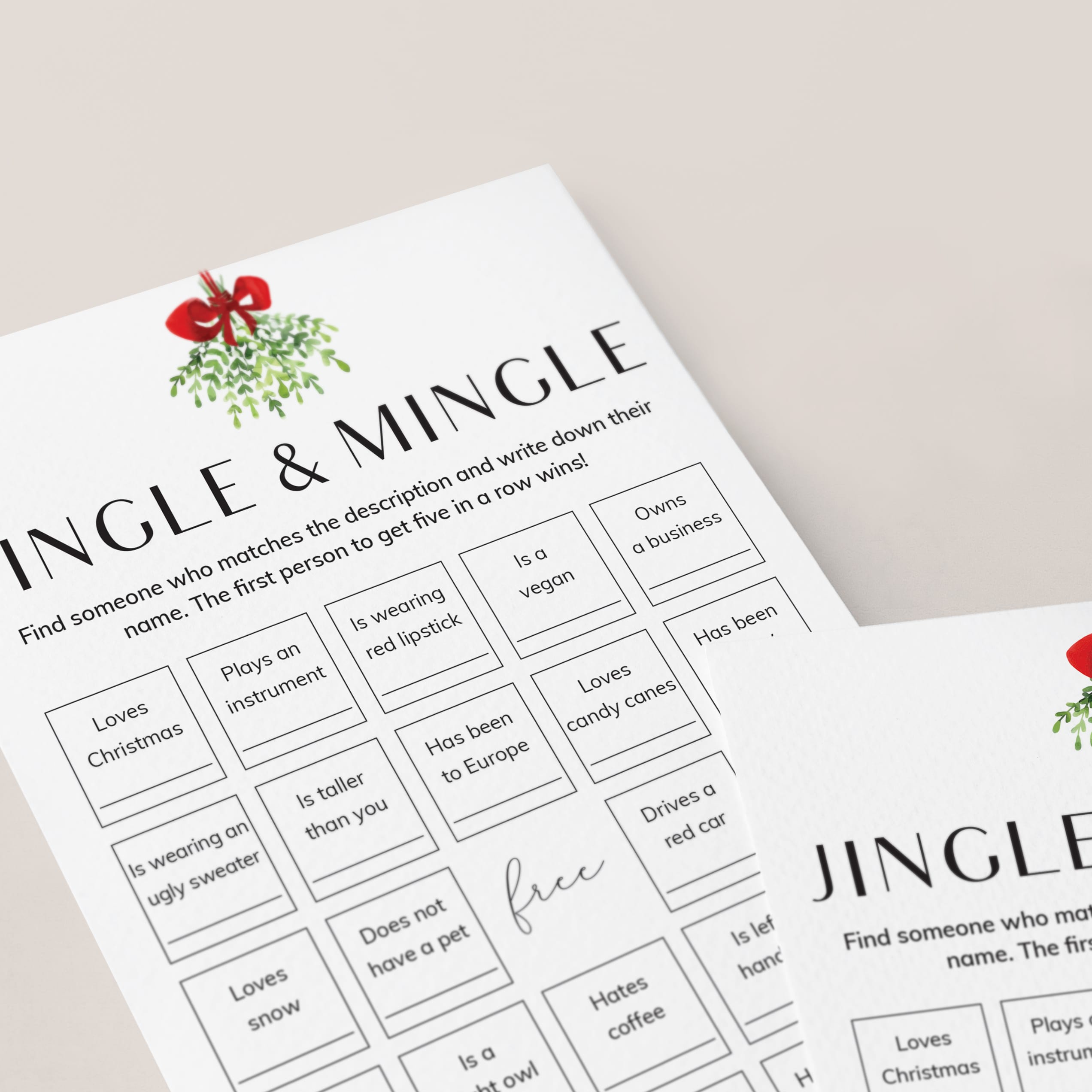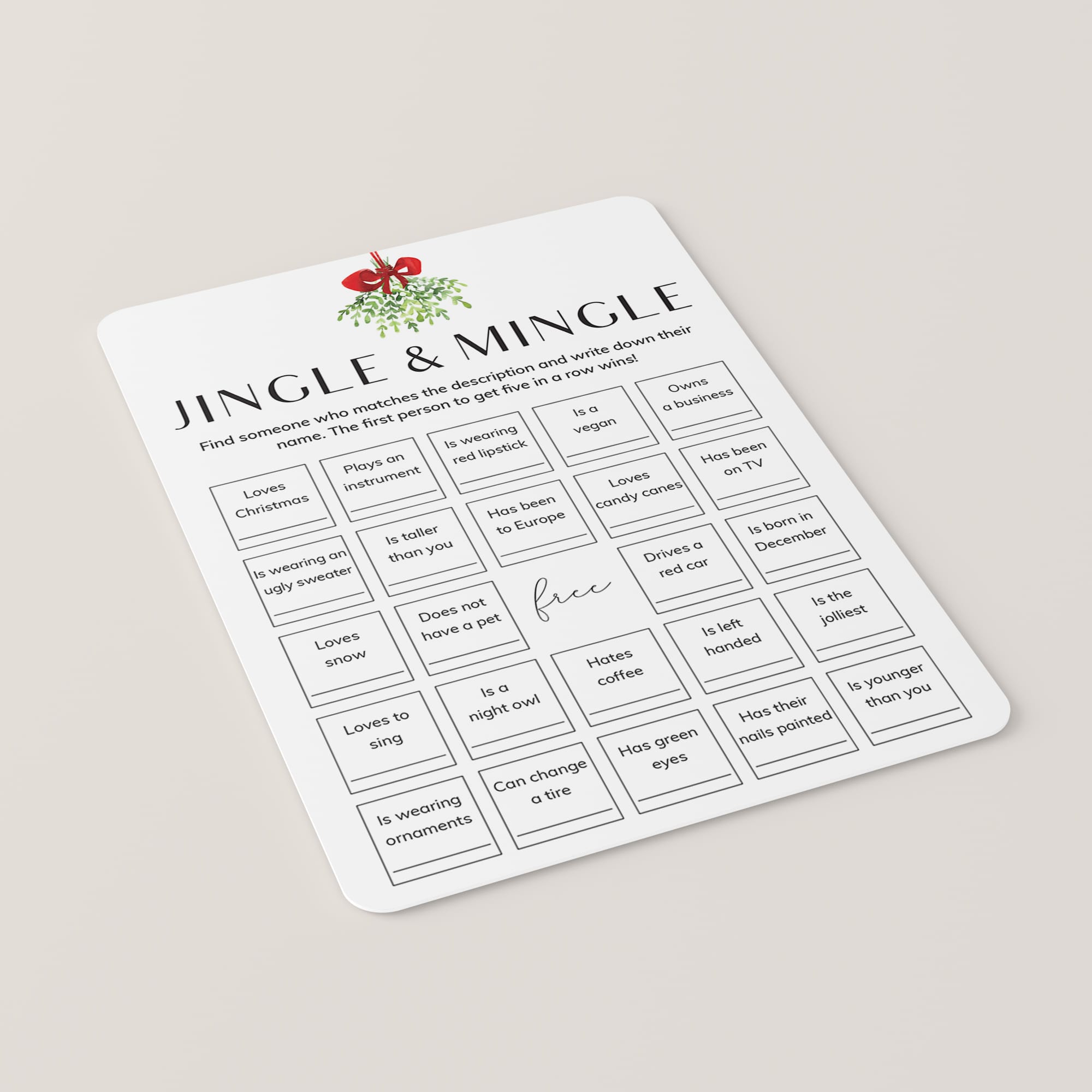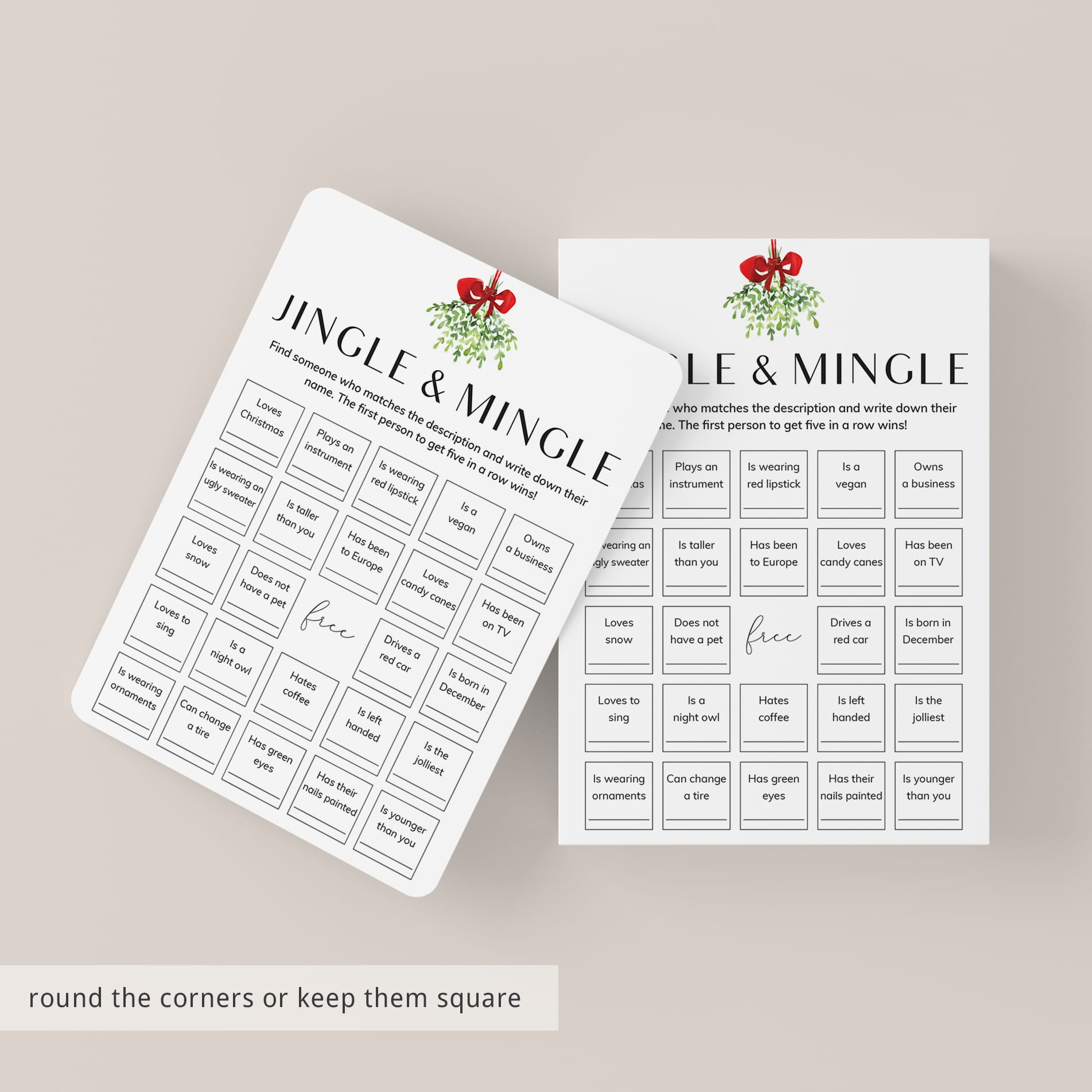Make sure everyone mingles with this Christmas Icebreaker Bingo "Jingle and Mingle" game. Let your guests find the person that matches the description and write down their name on the bingo cards. The first person to get five in a row wins!