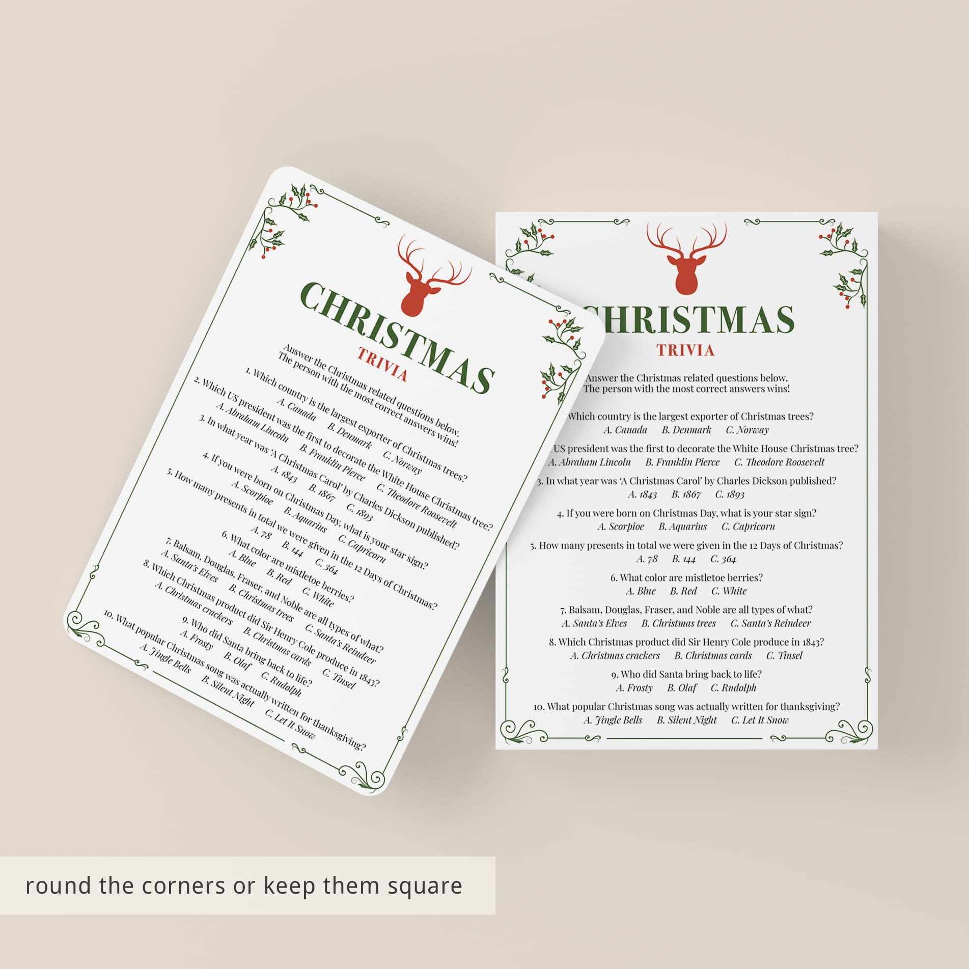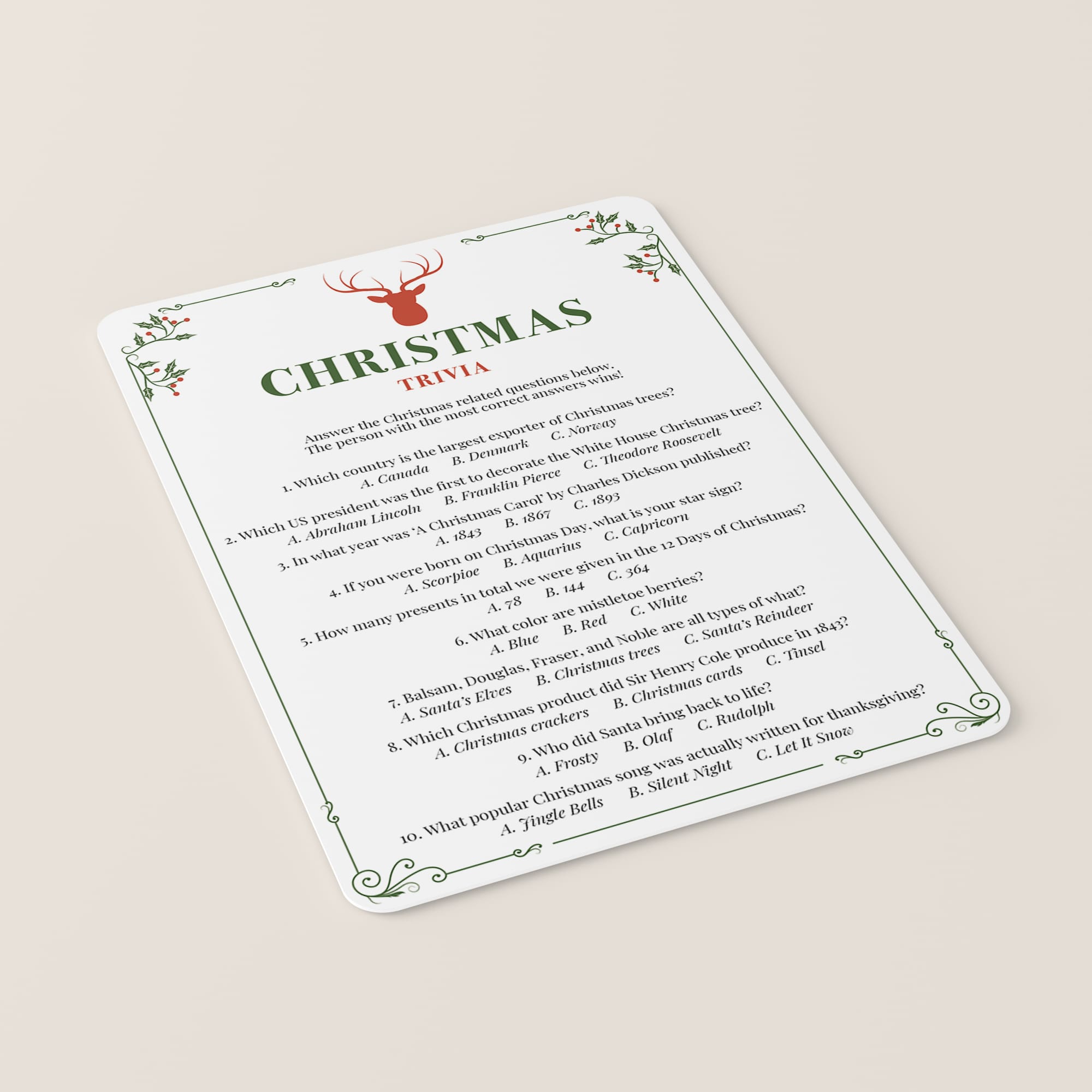 Are you hosting a Christmas party? Use this vintage theme Christmas Trivia Quiz to test your guests Christmas knowledge. Which country is the largest exporter of Christmas trees? And what popular Christmas song was actually written for Thanksgiving? Play this fun Christmas trivia game to find out! It’s a great challenging game to play at your Christmas dinner party.