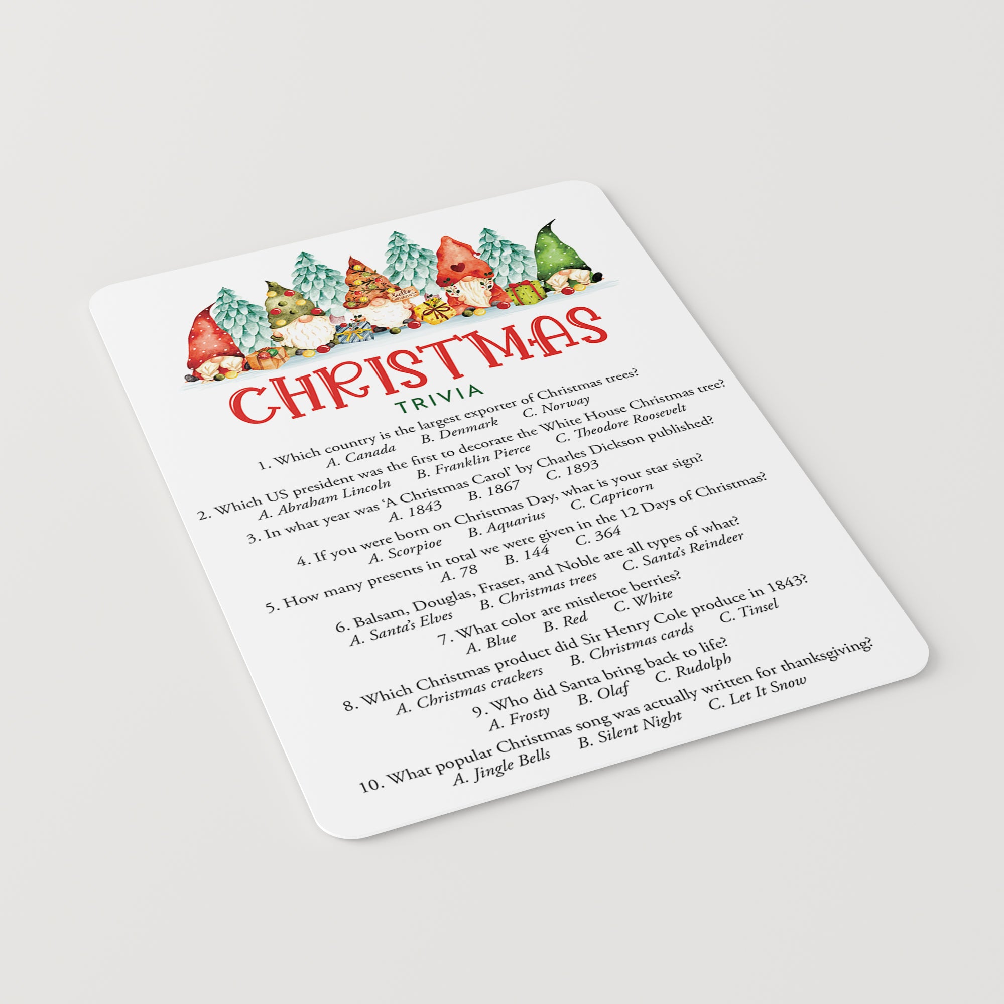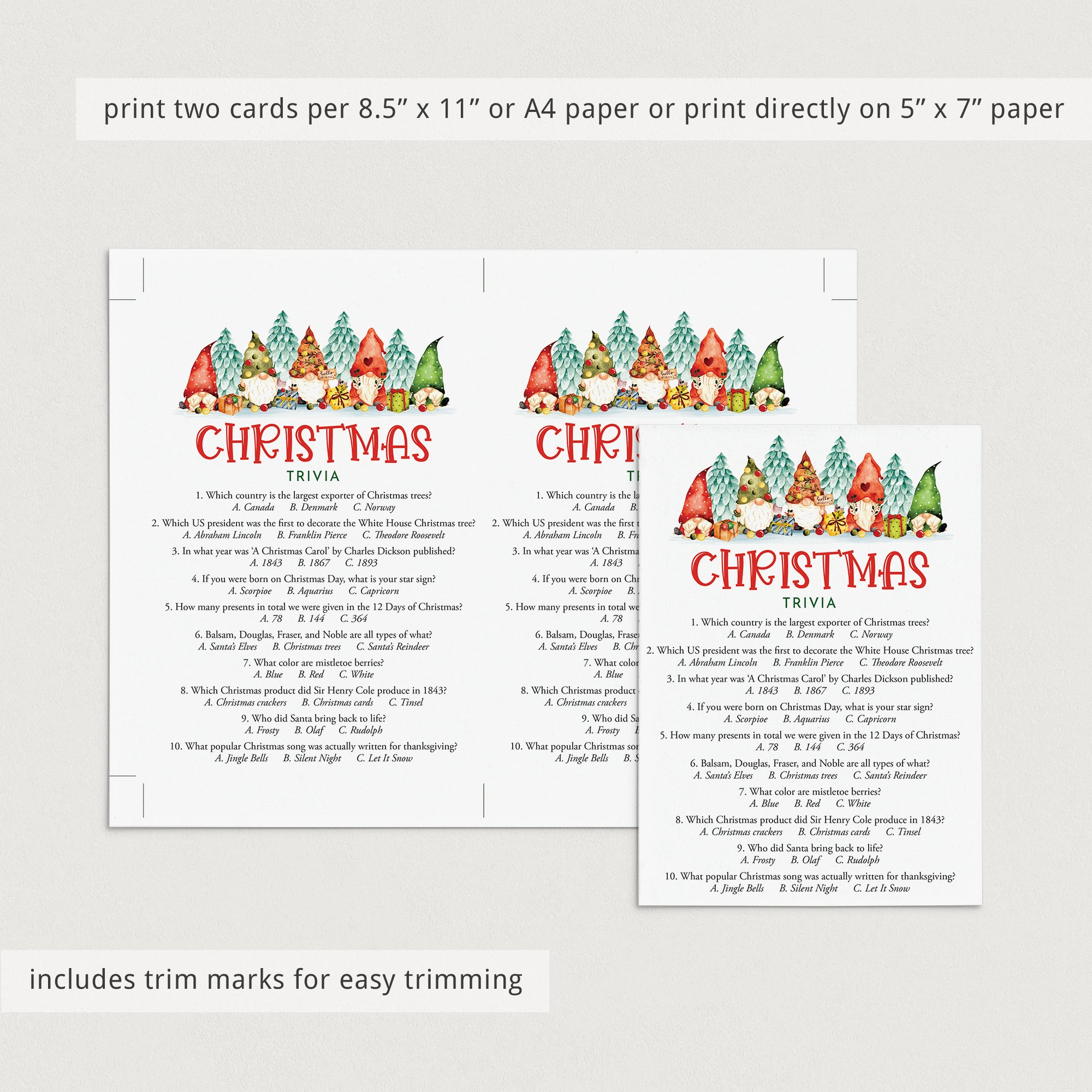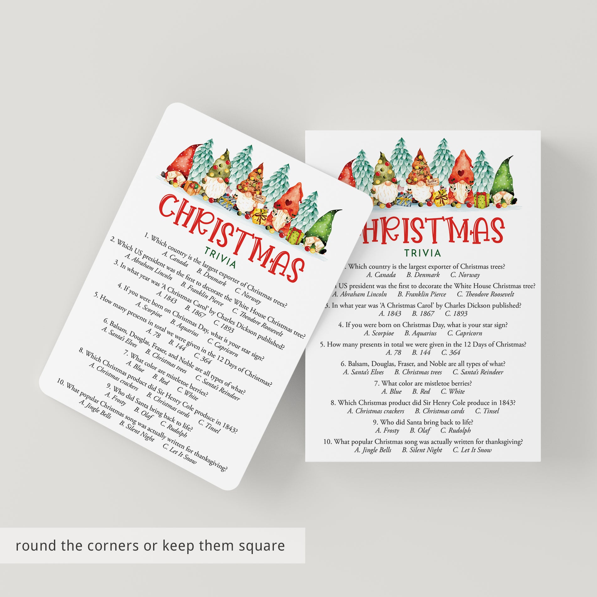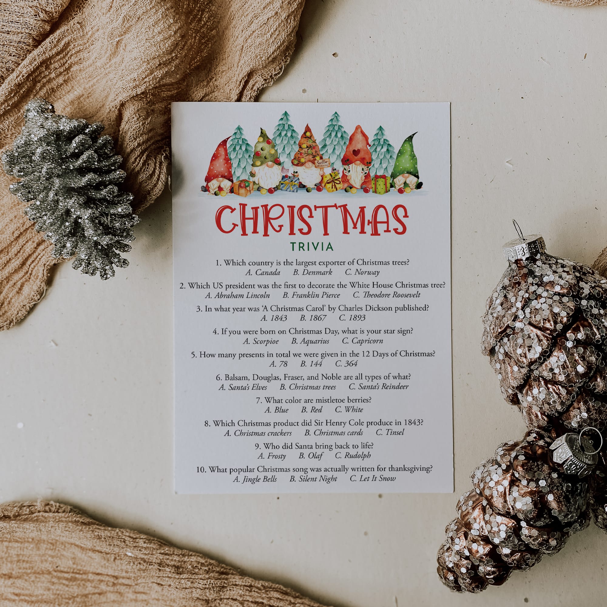 Are you hosting a Christmas party? Use this fun Christmas Trivia Quiz with watercolor Christmas gnomes to test your guests Christmas knowledge. Which country is the largest exporter of Christmas trees? And what popular Christmas song was actually written for Thanksgiving? Play this Christmas trivia game to find out! It’s a great challenging game for kids and adults of all ages.