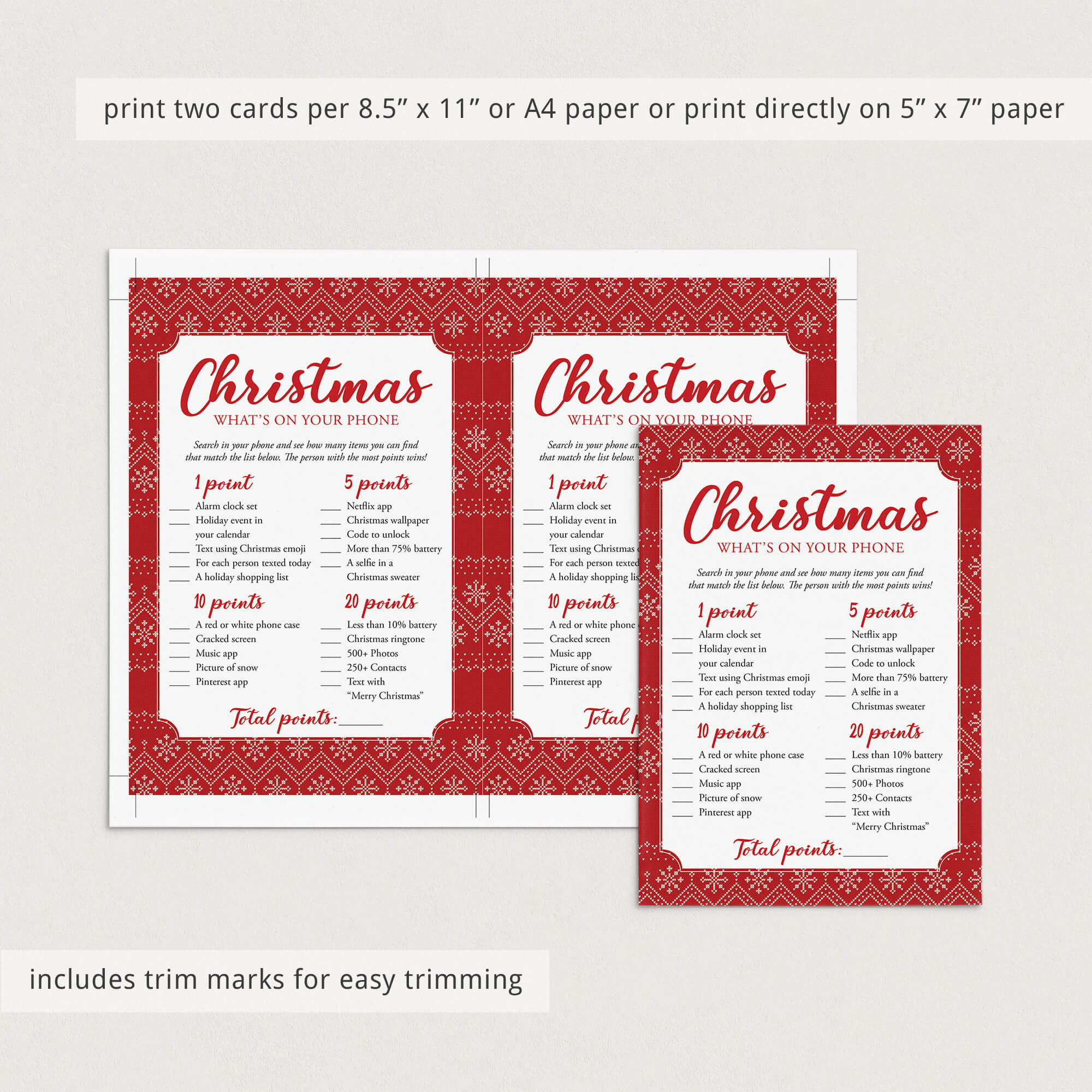 All guests need to play is a smartphone and one of these Christmas What's In Your Phone cards