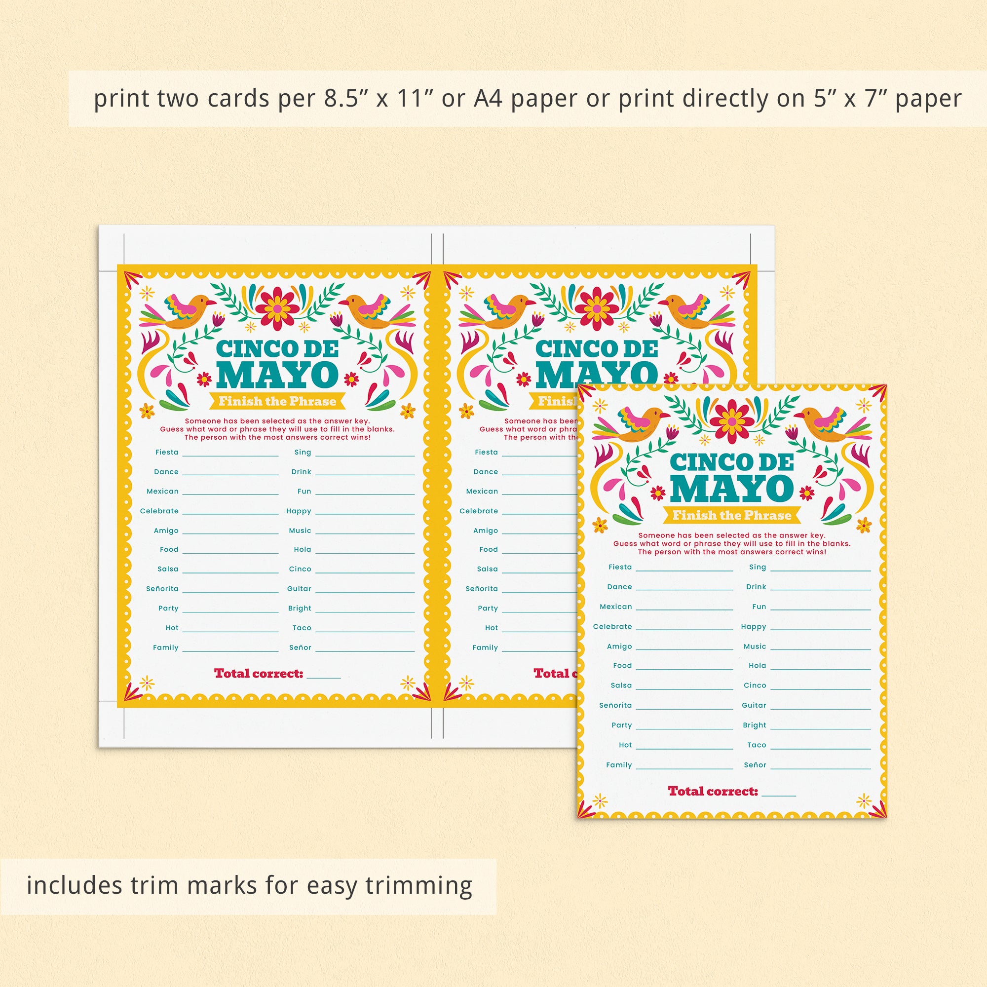 Cinco de Mayo Finish The Phrase is a great party game to play with a group of friends, in classrooms or with co-workers at work. It is a funny game for all ages and very easy to play.