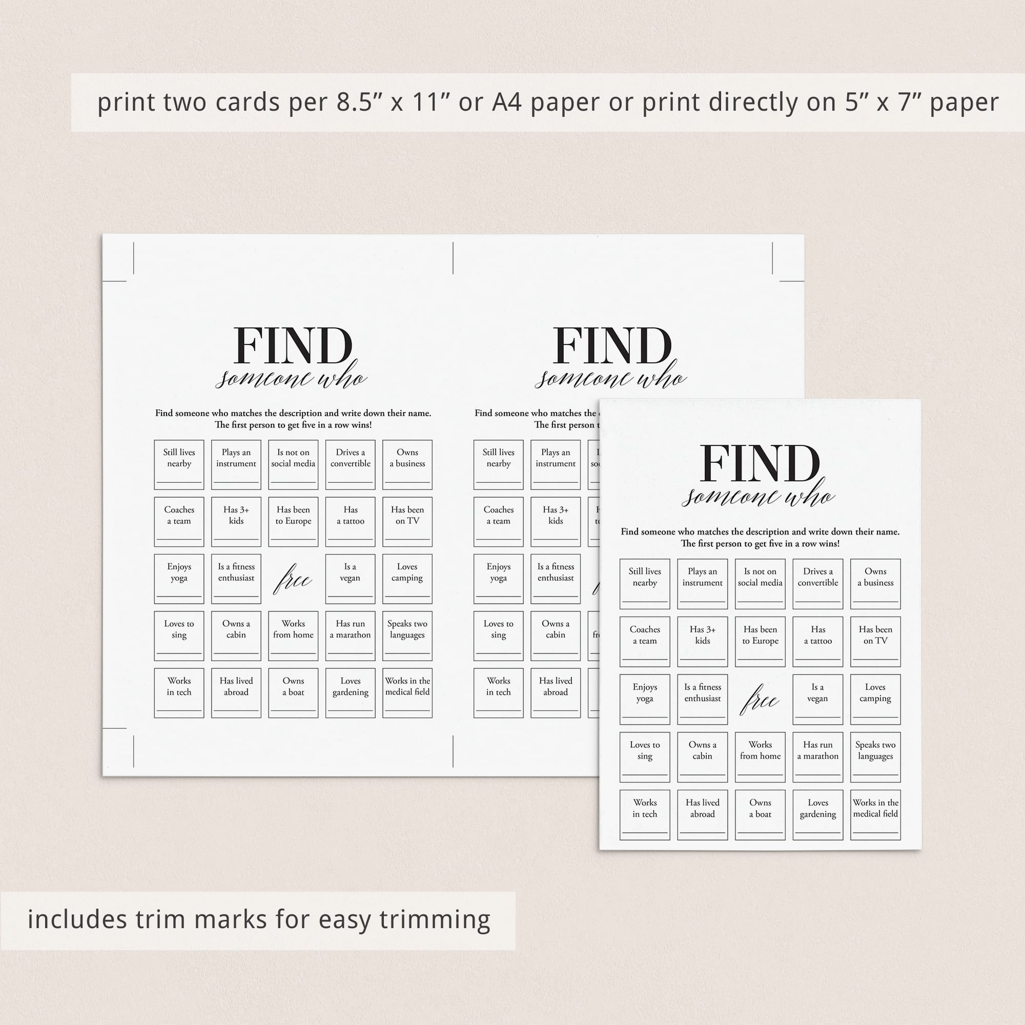 Print the games right from your computer in a matter of minutes or have the cards printed at your favorite print shop. The games have been designed in black and white. You can print on kraft paper to create a rustic look or print on colored cardstock to match your party color palette. We recommend printing on a nice heavy card stock for highest quality feel.