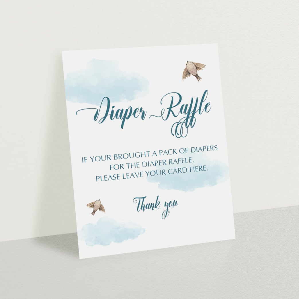 Having a diaper raffle planned for your baby shower? Use this beautiful sign for your Diaper Raffle tickets to show your guests where to leave their tickets and diapers. With it's watercolor blue clouds, this... Read more