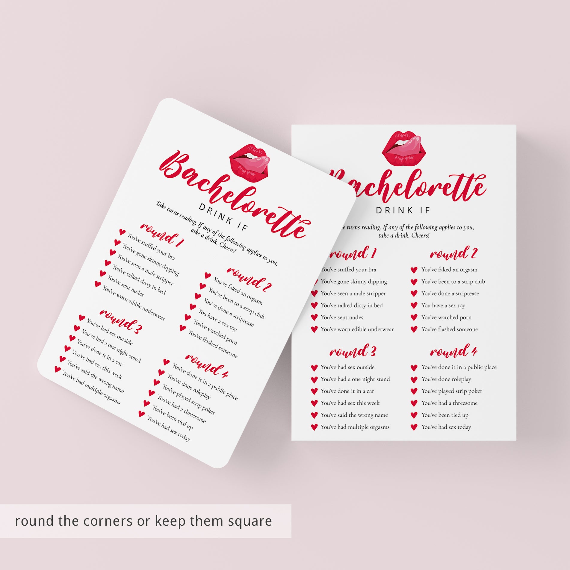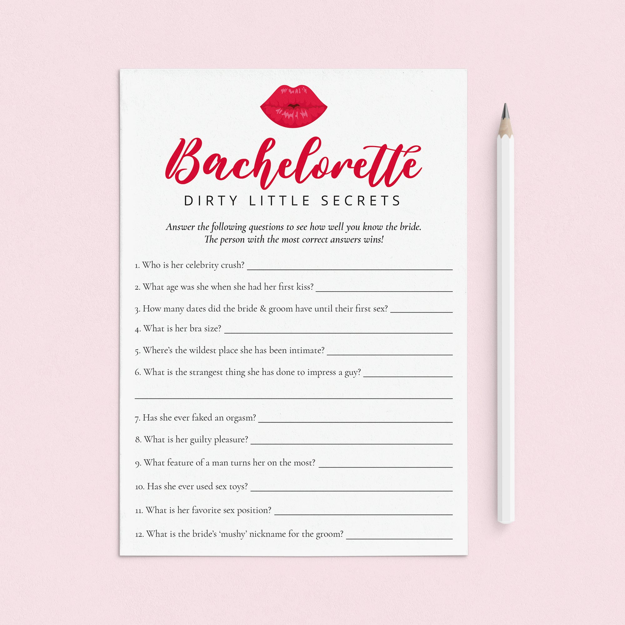 Kick off the fun at your bach party with this printable games bundle with 8 dirty bach party games. The games with red lips are the perfect addition to any hens night or bachelorette party.