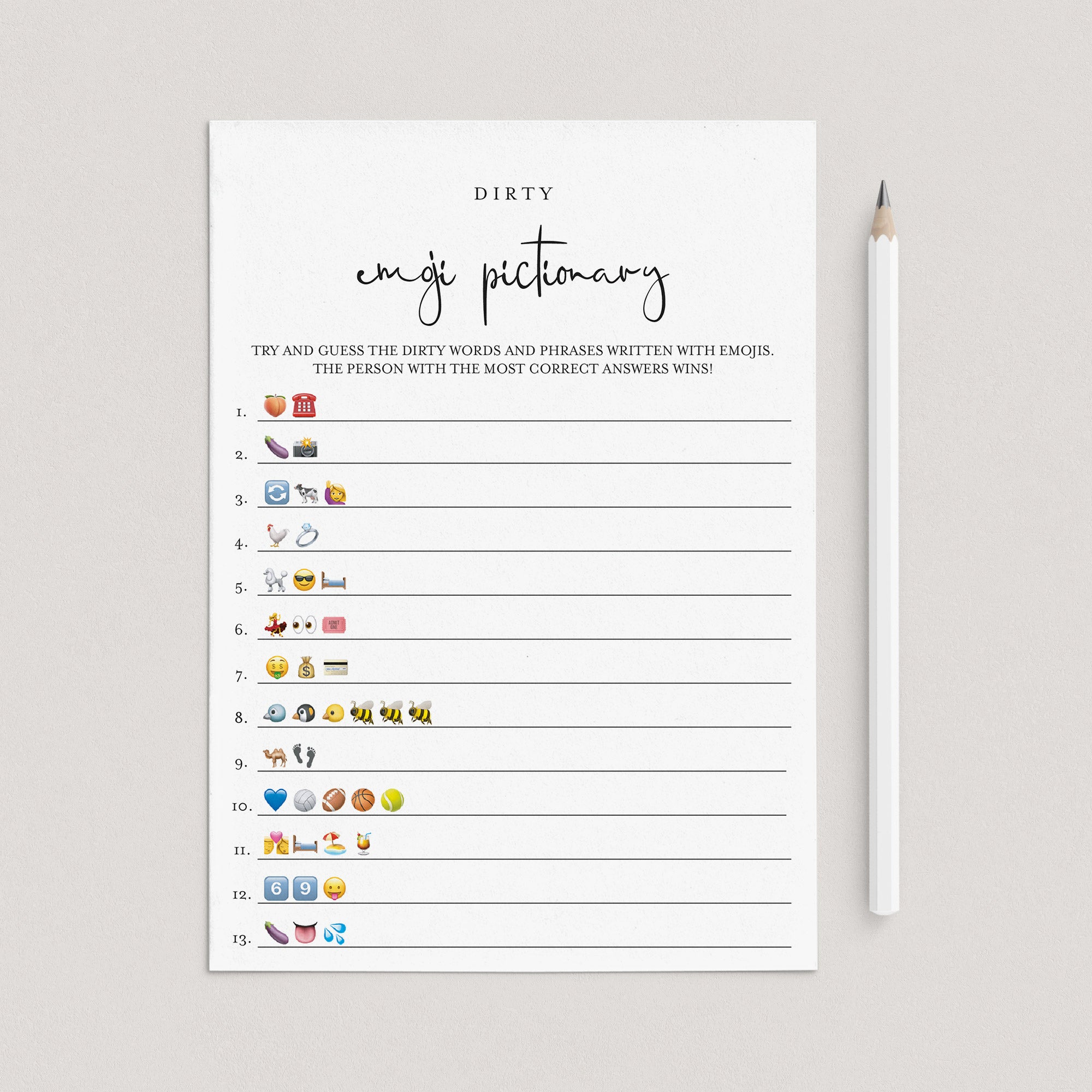 • Dirty Emoji Pictionary (answer key included)