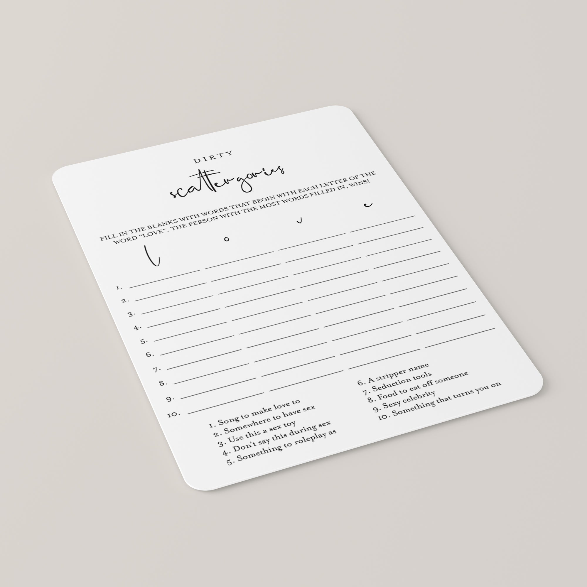 • Dirty Scattergories