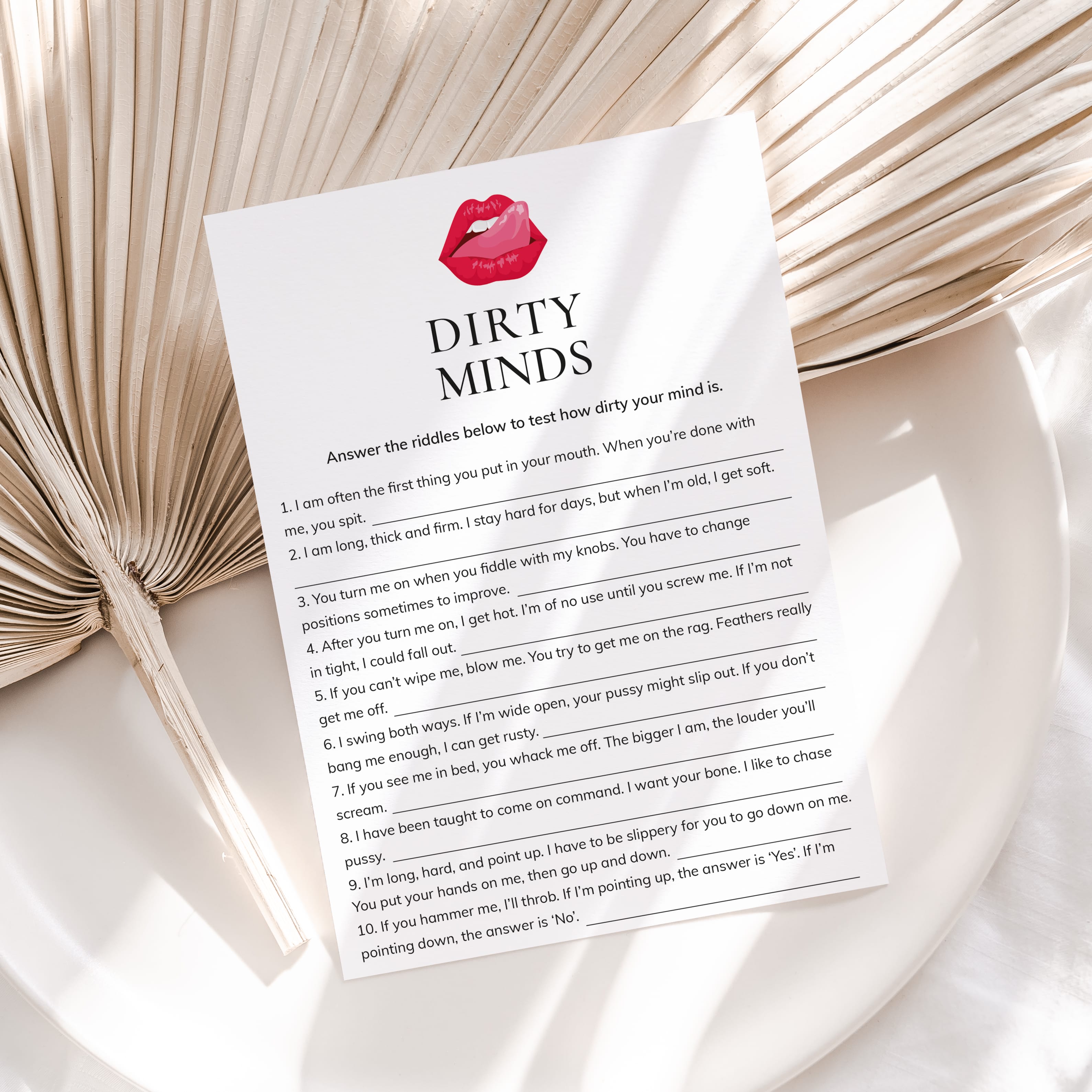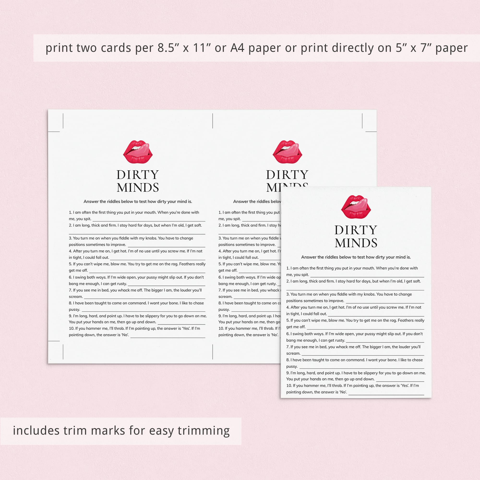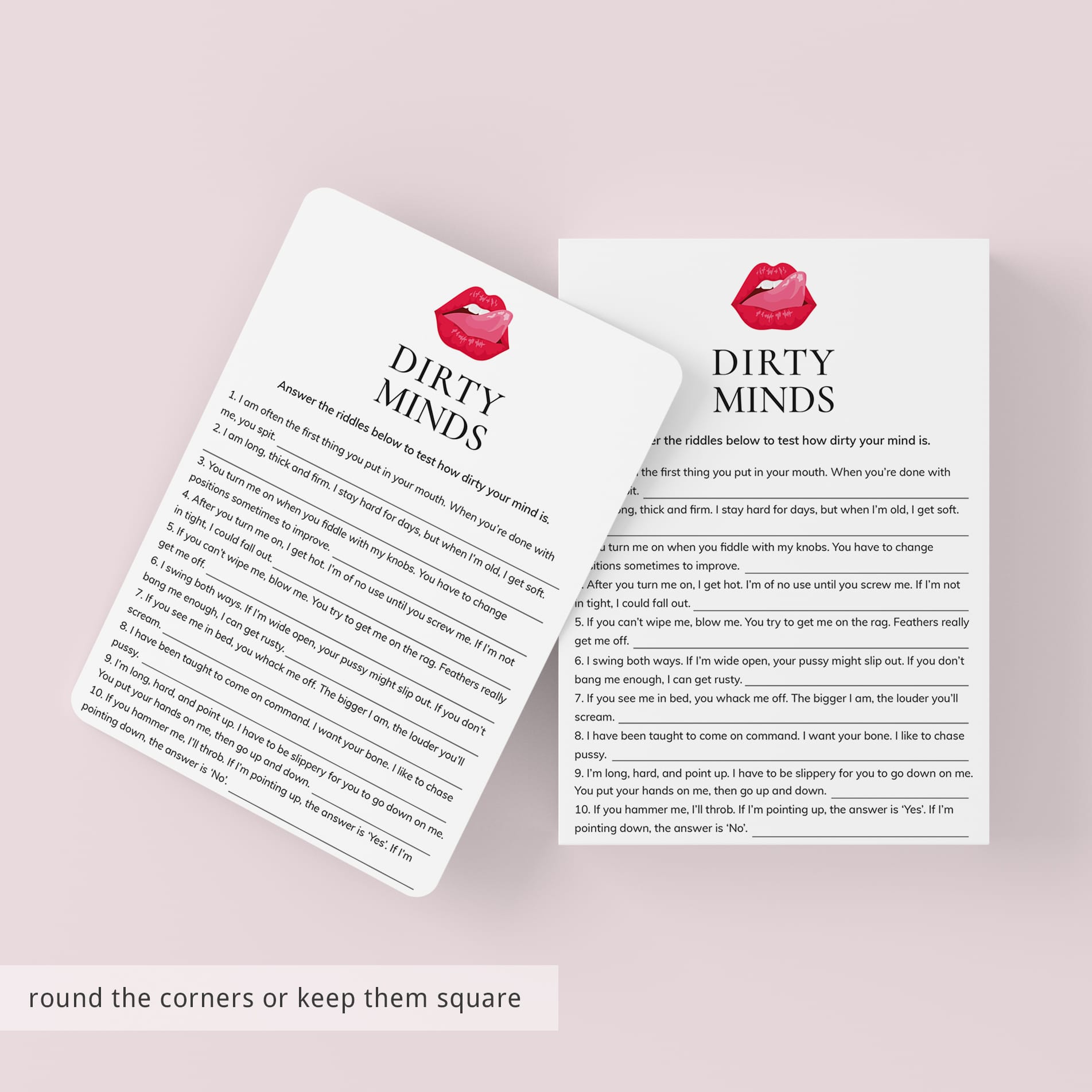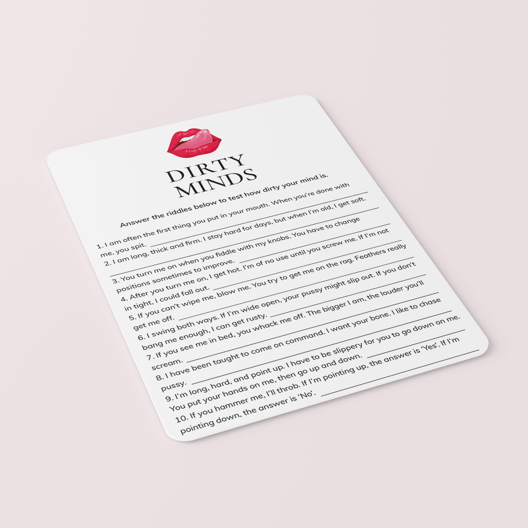 The game will provide you and your girl squad with hours of laughter as seemingly filthy clues point towards the most innocent of answers. The answer key is included.