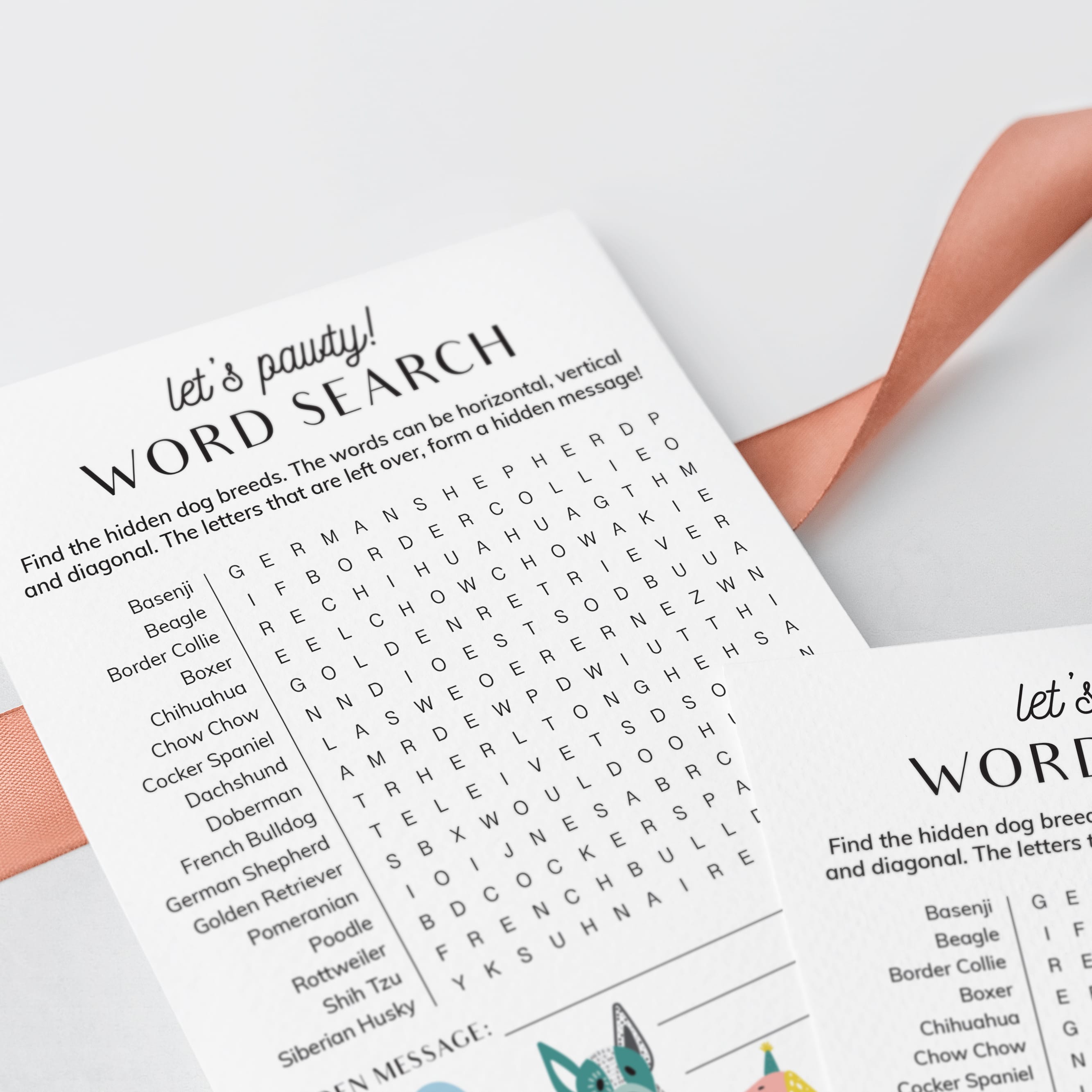 Are you looking for a fun Dog Party game? Play Word Search! It's a great word puzzle for all ages.
