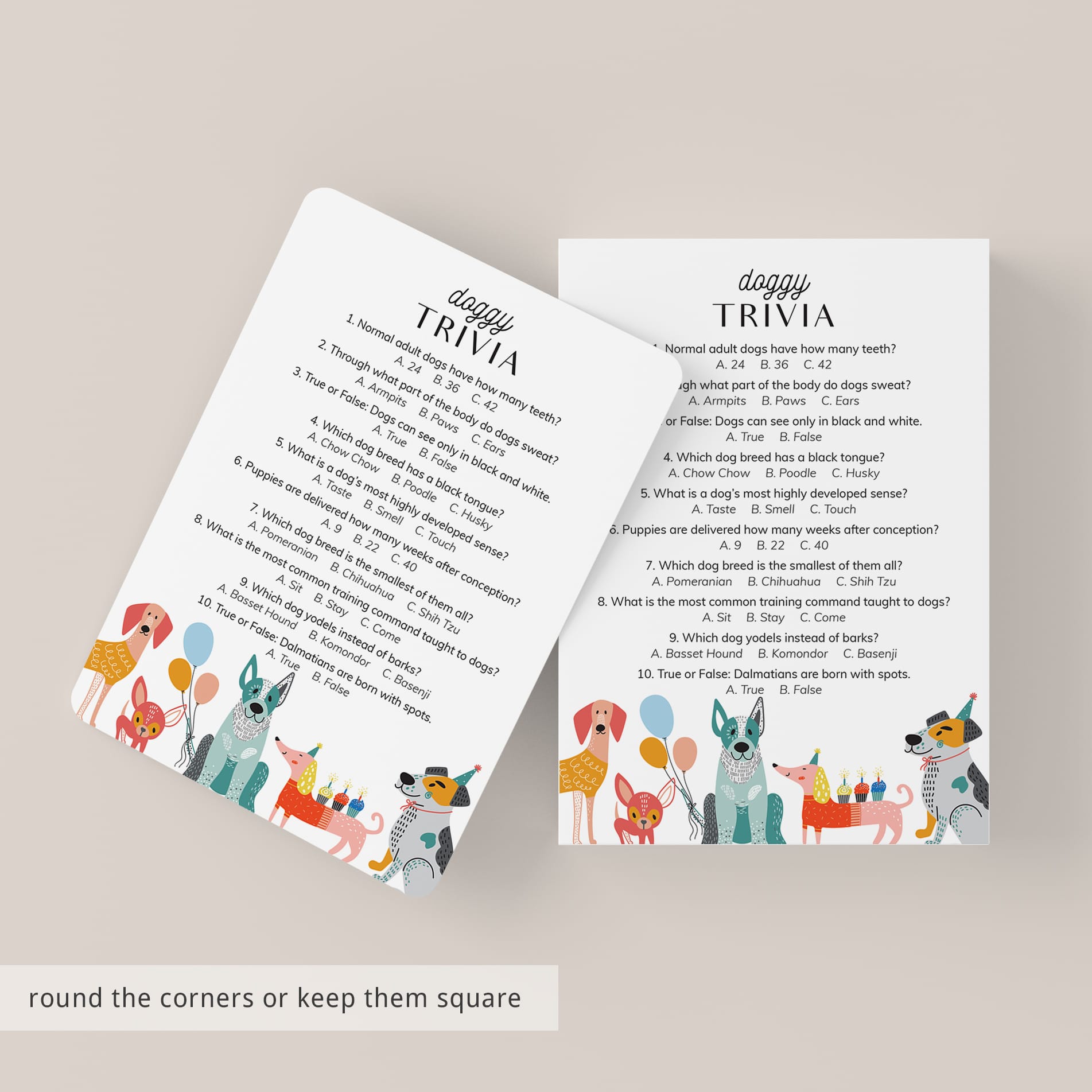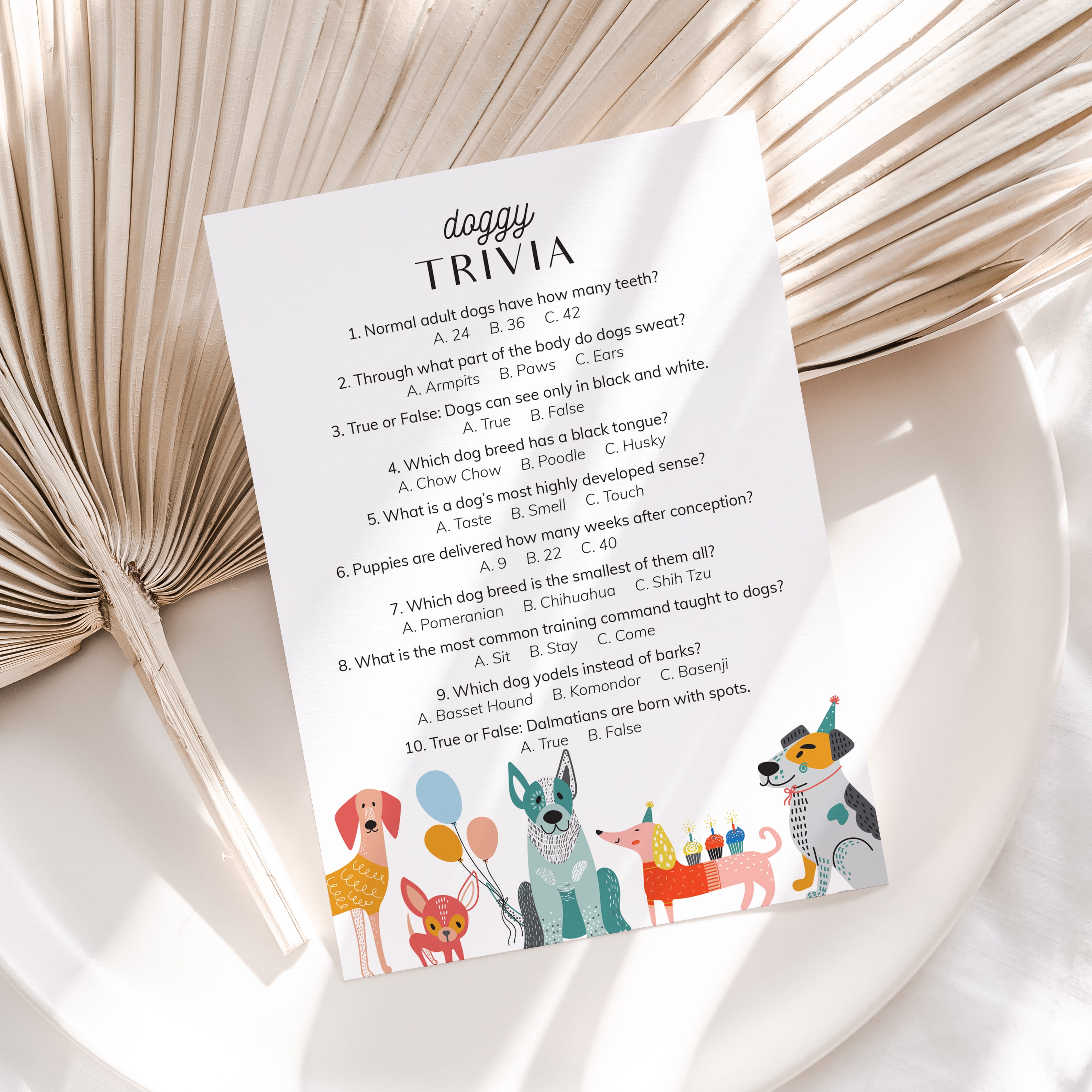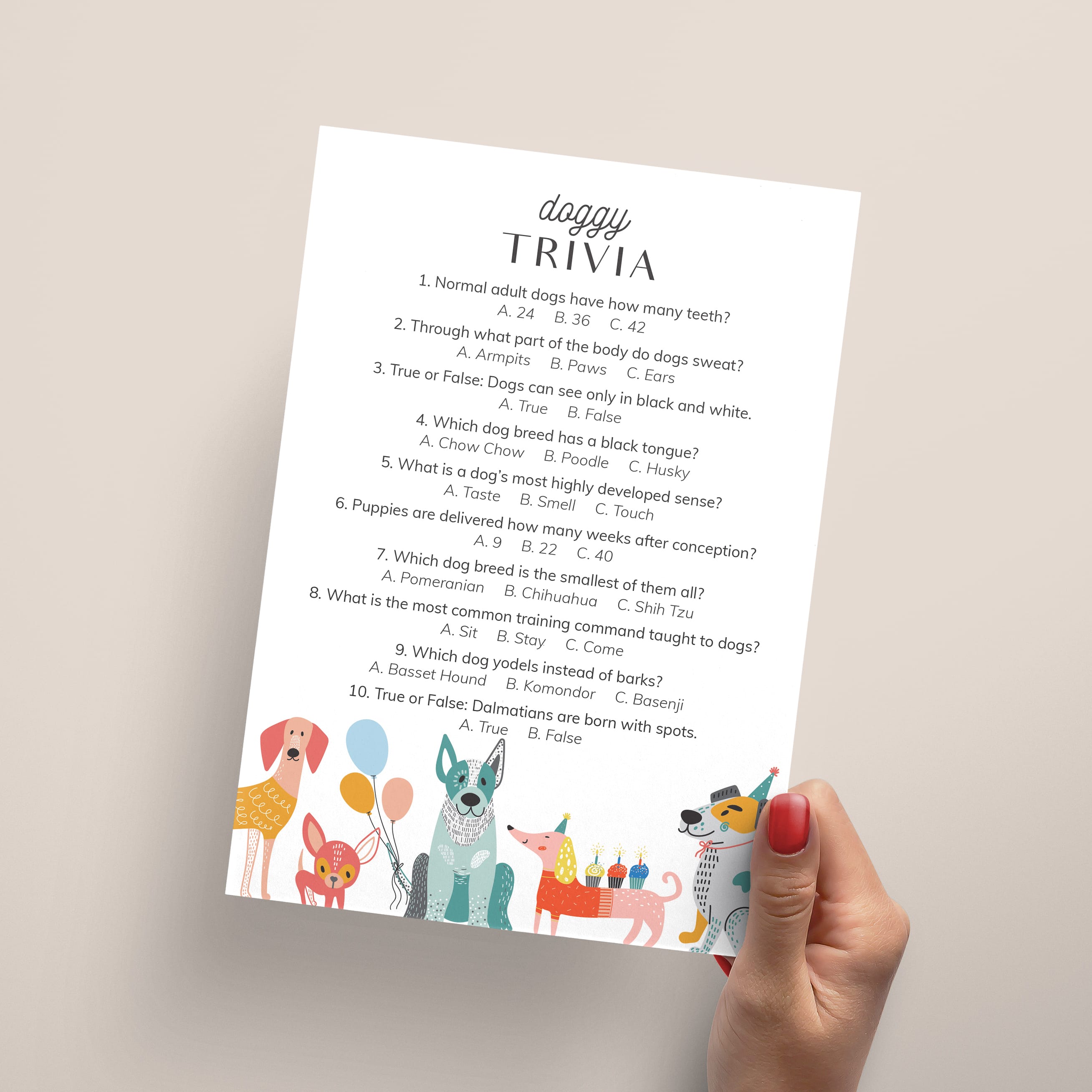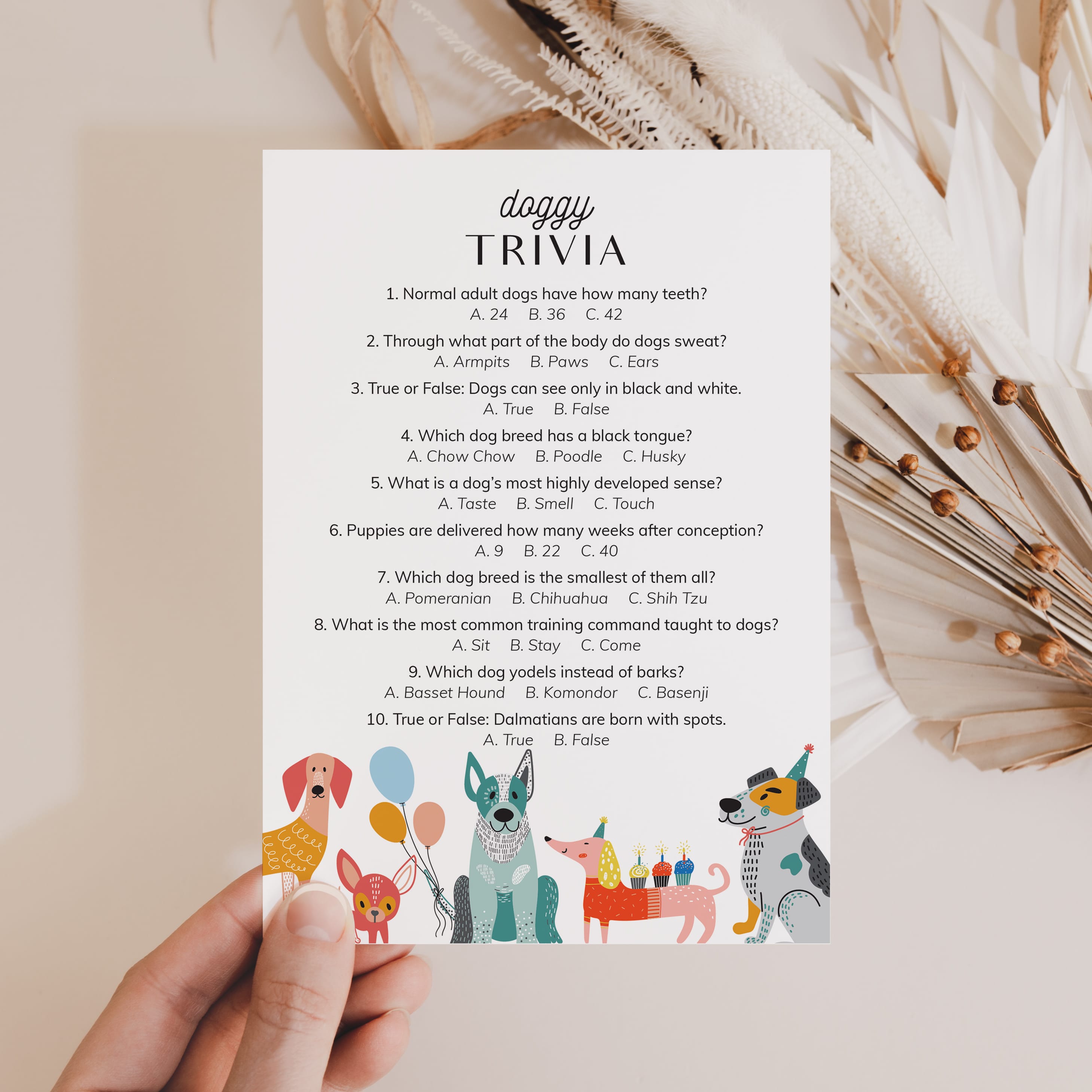 Are you looking for a fun game for a dog birthday party or puppy paw-tee? Look no further! This adorable doggy trivia is such a fun game to play with your friends and family. Test your guests dog knowledge with this fun Dog Trivia game with 10 multiple choice questions.