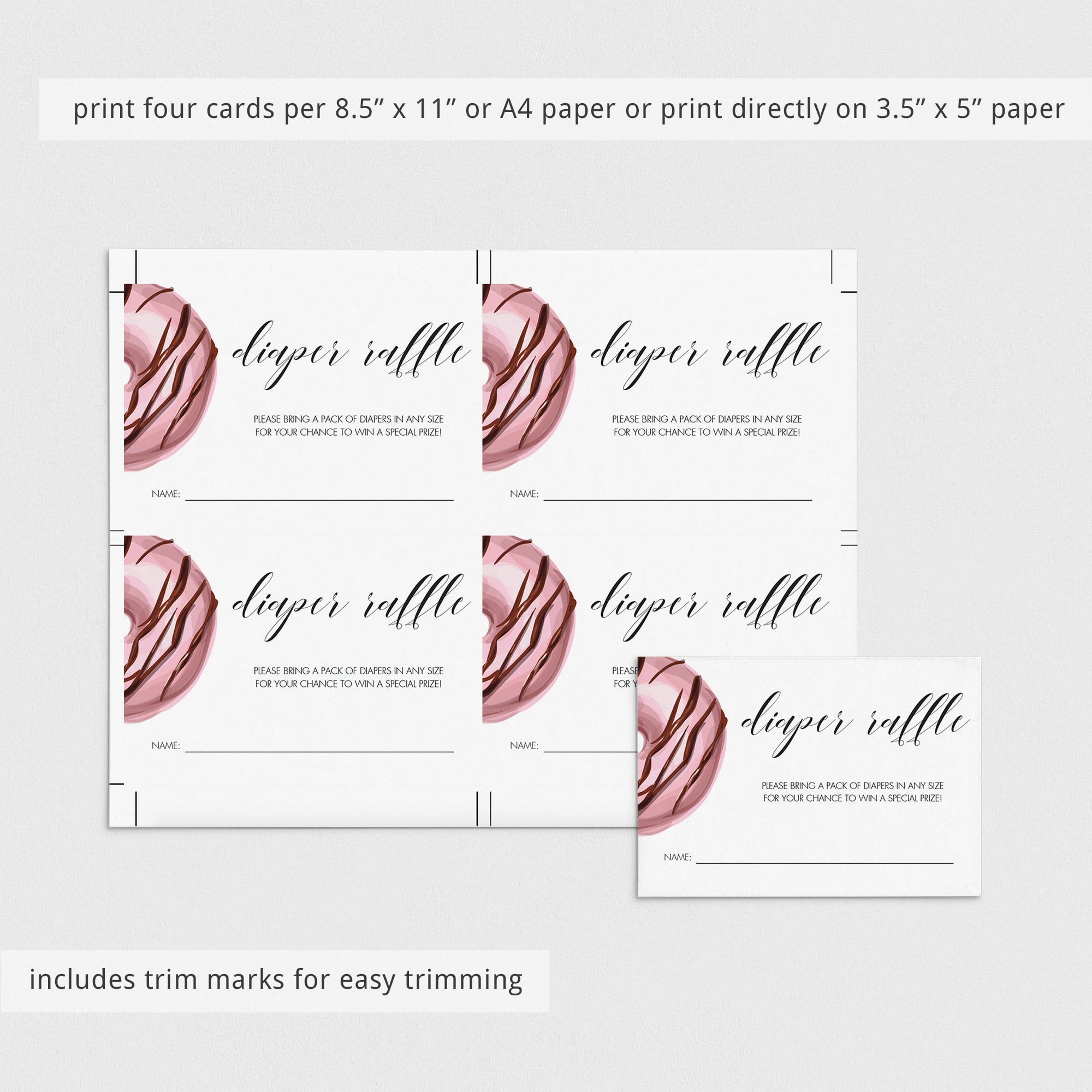 This donut invitation set includes the baby shower Invitation, a Diaper Raffle ticket and a Book Request card.