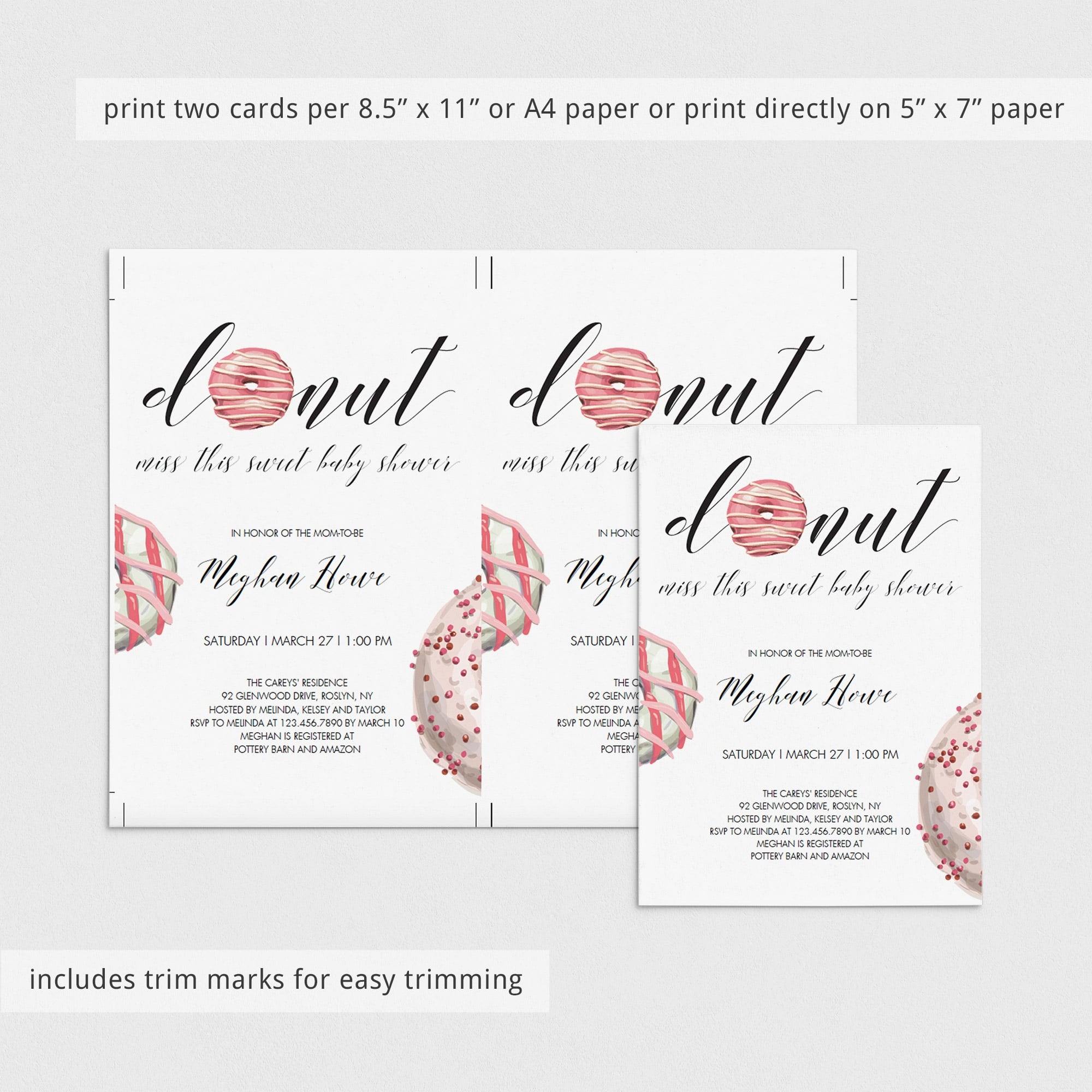 DIY girl shower donut theme invitation set templates instant download by LittleSizzle