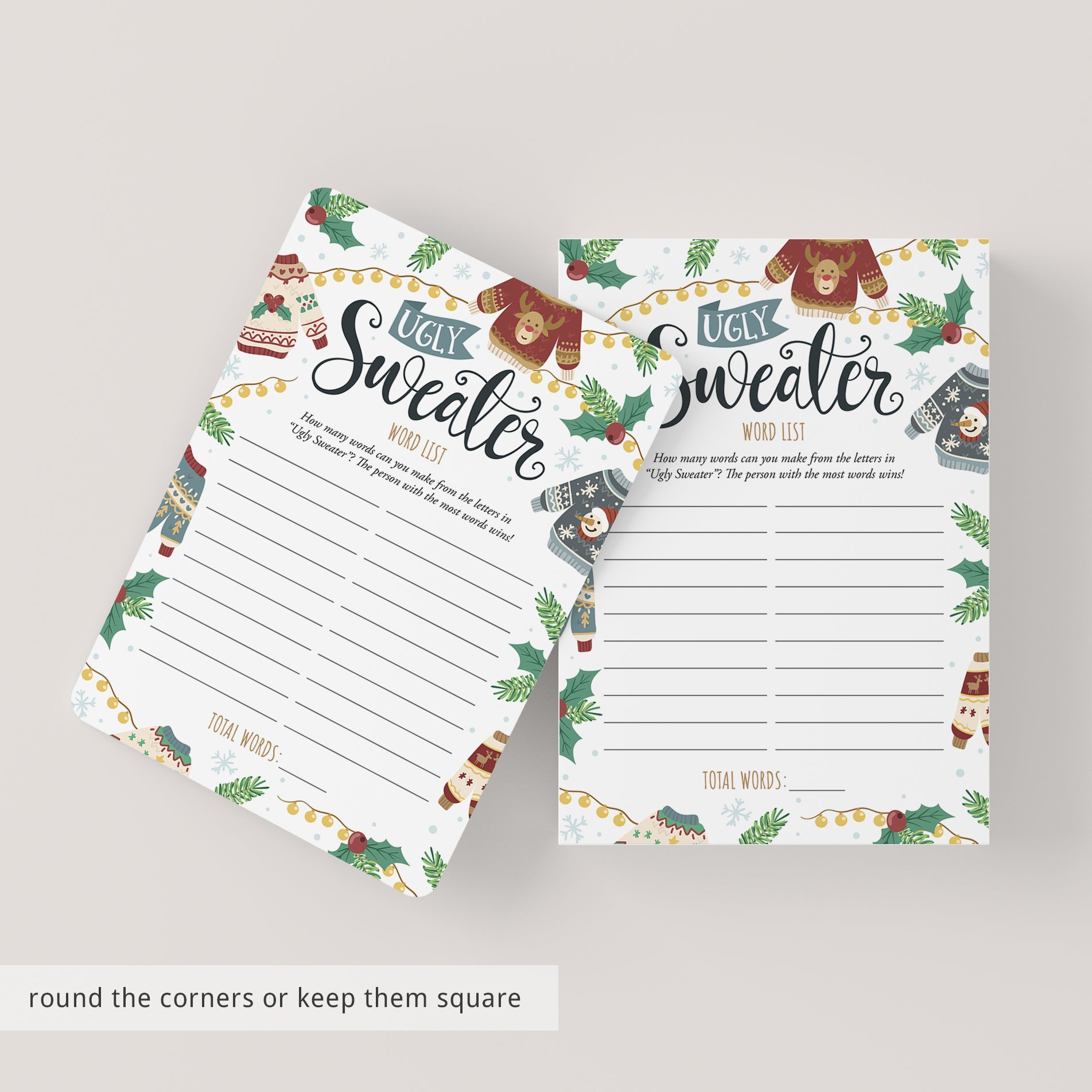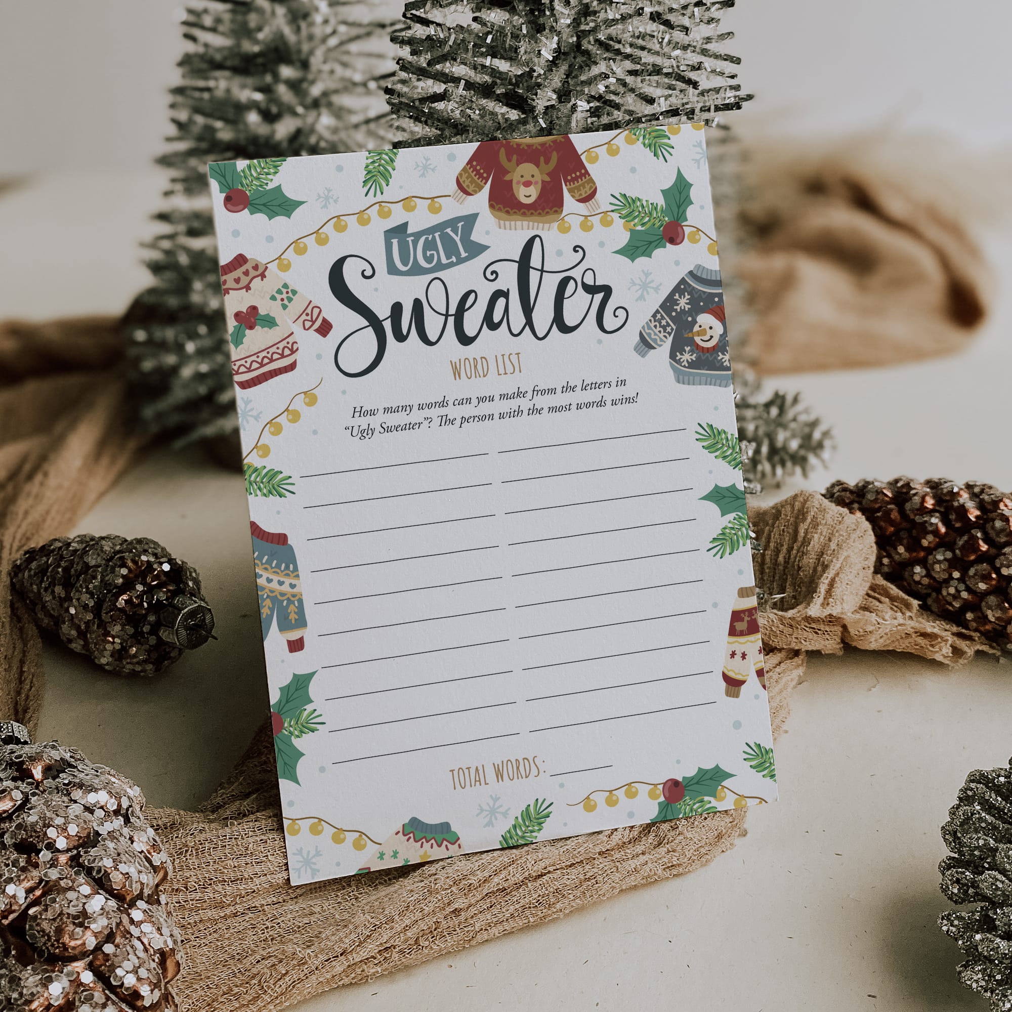 Word games are always a big hit at parties, especially when you are with a large group. They are a great challenging activity that guests of all ages can enjoy. Add some fun to your Ugly Christmas Sweater party and play this fun and easy game: Christmas Word List.