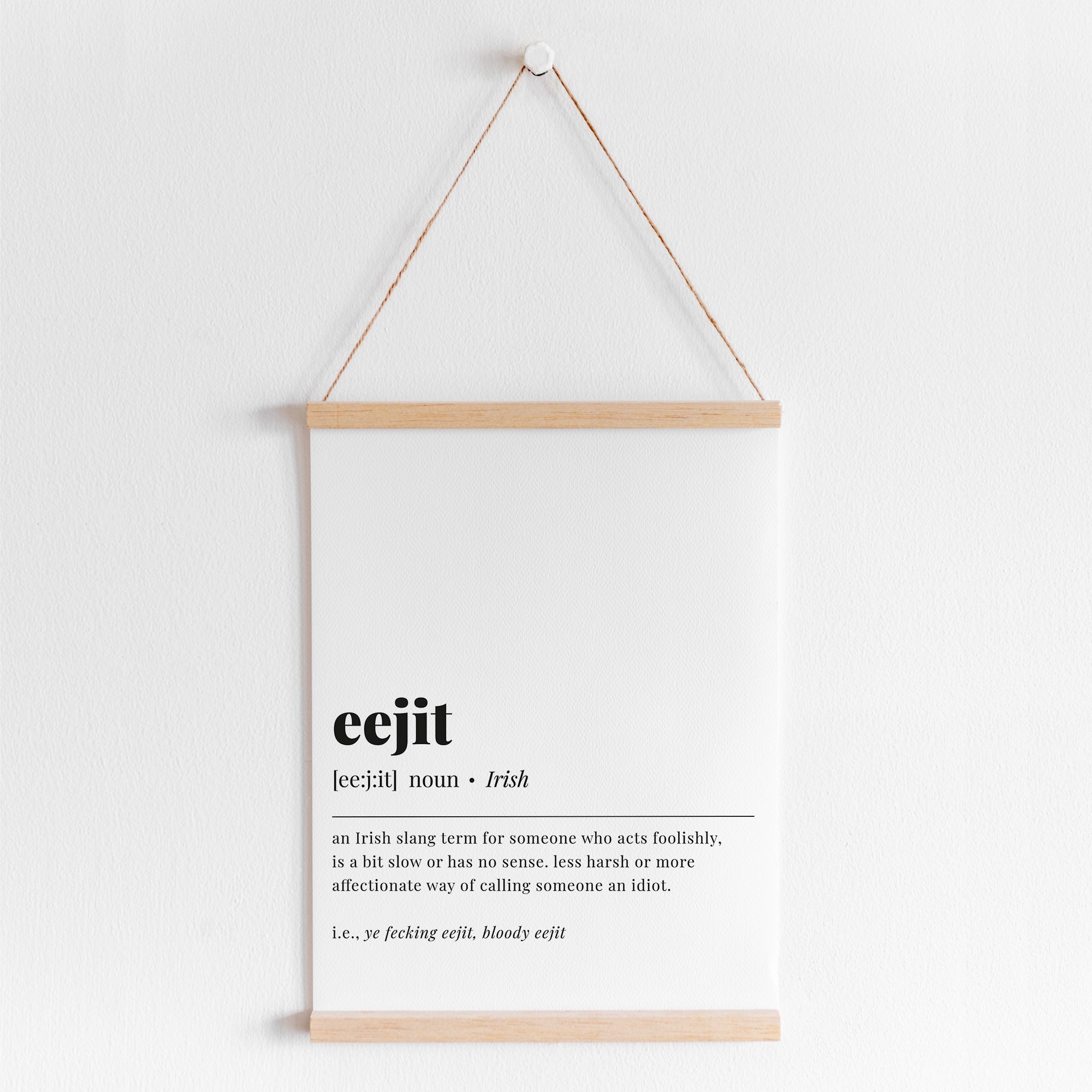 Are you looking for a funny Irish print? Look no further! This modern minimalist eejit definition print is perfect for you.
